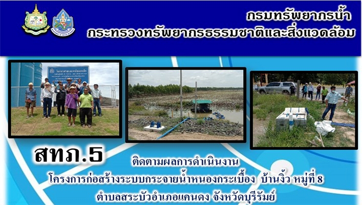 สทภ.5 ติดตามผลการดำเนินงานโครงการก่อสร้างระบบกระจายน้ำหนองกระเบื้อง บ้านงิ้ว หมู่ที่ 8 ต.สระบัว อ.แคนดง จ.บุรีรัมย์