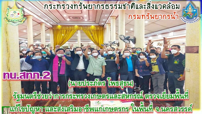 สำนักงานทรัพยากรน้ำภาค 2 เข้าร่วมการลงพื้นที่ของนายประภัตร โพธสุธน รัฐมนตรีช่วยว่าการกระทรวงเกษตรและสหกรณ์ ณ ต.โพธิ์ประสาท อ.ไพศาลี จ.นครสวรรค์ เพื่อมุ่งเน้นการพัฒนาแหล่งน้ำและส่งเสริมอาชีพแก่เกษตรกร