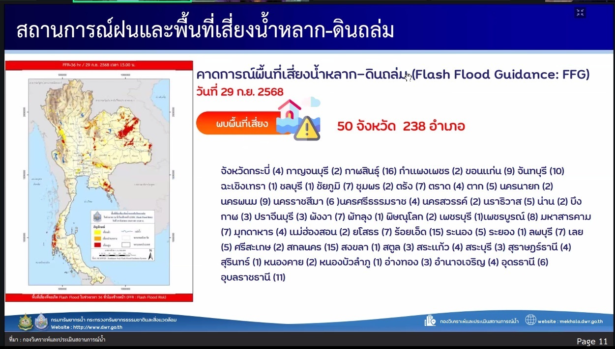 รายงานสถานการณ์พื้นที่เสี่ยงอุทกภัยน้ำหลากในเขตพื้นที่ลาดเชิงเขา