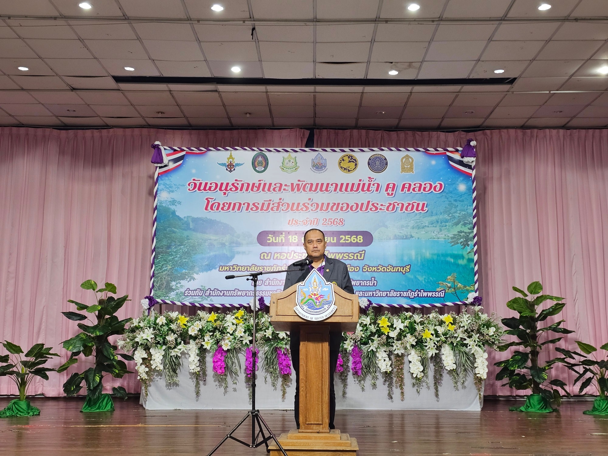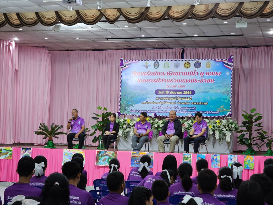 วันที่ 18 กันยายน 2568 นายสิทธิพงษ์ โกวพัฒนกิจ ผู้อำนวยการสำนักงานทรัพยากรน้ำที่ 6 มอบหมายให้ส่วนอนุรักษ์ทรัพยากรน้ำที่ 3 จันทบุรี จัดกิจกรรมโครงการอนุรักษ์และพัฒนาแม่น้ำ คู คลอง โดยการมีส่วนร่วมของประชาชน โดยมีผู้ช่วยศาสตราจารย์ ดร.เอกชัย กิจเกษาเจริญ รองอธิการบดีมหาวิทยาลัยราชภัฎรำไพพรรณี เป็นประธานเปิดงาน ณ หอประชุมรำไพพรรณี มหาวิทยาลัยราชภัฎรำไพพรรณี อำเภอเมือง จังหวัดจันทบุรี