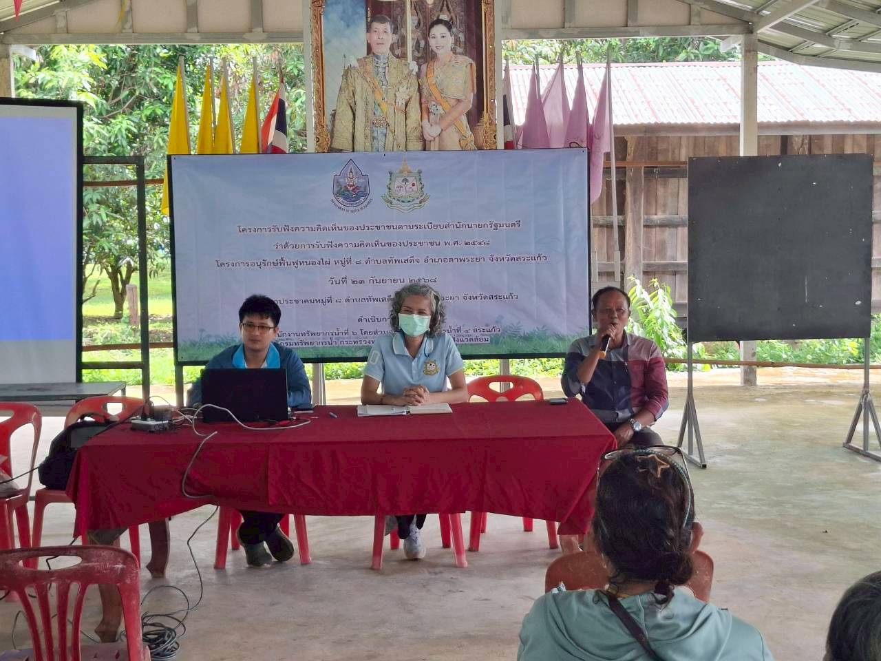วันที่ 23 กันยายน 2568 นายสิทธิพงษ์ โกวพัฒนกิจ ผู้อำนวยการสำนักงานทรัพยากรน้ำที่ 6 มอบหมายให้ส่วนอนุรักษ์ทรัพยากรน้ำที่ 4 สระแก้ว พร้อมเจ้าหน้าที่ส่วนสำรวจและออกแบบ ดำเนินการจัดโครงการรับฟังความคิดเห็นของประชาชนตามระเบียบสำนักนายกรัฐมนตรี ว่าด้วยการรับฟังความคิดเห็นของประชาชน พ.ศ. 2548 ในพื้นที่ตำบลทัพเสด็จ อำเภอตาพระยา จังหวัดสระแก้ว จำนวน 2 โครงการ ได้แก่