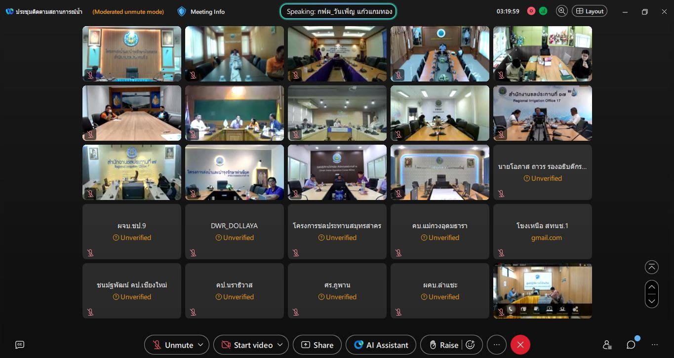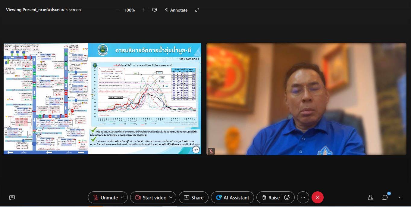 วันนี้ (2 ตุลาคม 2568) นายโอภาส ถาวร รองอธิบดีกรมทรัพยากรน้ำ พร้อมด้วยนายสุประภาพ พัฒน์สิงหเสนีย์ ผู้อำนวยการกองวิเคราะห์และประเมินสถานการณ์น้ำ และเจ้าหน้าที่กรมทรัพยากรน้ำ เข้าร่วมประชุมติดตามสภาพอากาศและสถานการณ์น้ำ ผ่านระบบ Webex Meeting เพื่อประเมินและวิเคราะห์สถานการณ์น้ำจากอิทธิพลของพายุ “บัวลอย” ซึ่งส่งผลให้หลายพื้นที่ของประเทศไทยมีฝนตกหนักในบางแห่ง อาจก่อให้เกิดน้ำท่วมฉับพลัน น้ำป่าไหลหลาก และน้ำล้นตลิ่ง ในบางพื้นที่
