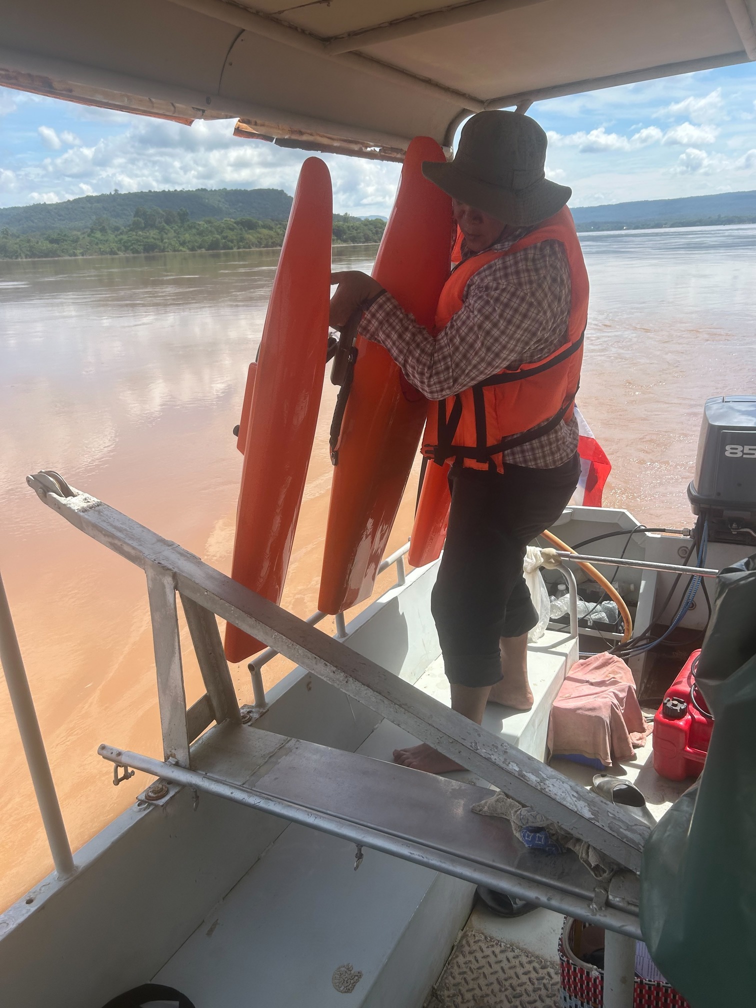วันที่ 9 ตุลาคม 2568 นายโภคิน ช้ำเกตุ ผู้อำนวยการสำนักงานทรัพยากรน้ำที่ 11 มอบหมายให้ เจ้าหน้าที่ศูนย์สำรวจอุทกวิทยาโขงเจียม ส่วนอุทกวิทยา ดำเนินกิจกรรม การสำรวจปริมาณน้ำและการเก็บตัวอย่างตะกอนแขวนลอย ตะกอนท้องน้ำ แม่น้ำโขงร่วมไทยลาว เพื่อติดตามเฝ้าระวังสถานการณ์น้ำแม่น้ำโขง โดยใช้เครื่องมือวัดกระแสน้ำด้วยคลื่นเสียง (ADCP) และเครื่องตักตะกอนขนาดใหญ่ US-D96 ณ สถานีโขงเจียม อำเภอโขงเจียม จังหวัดอุบลราชธานี