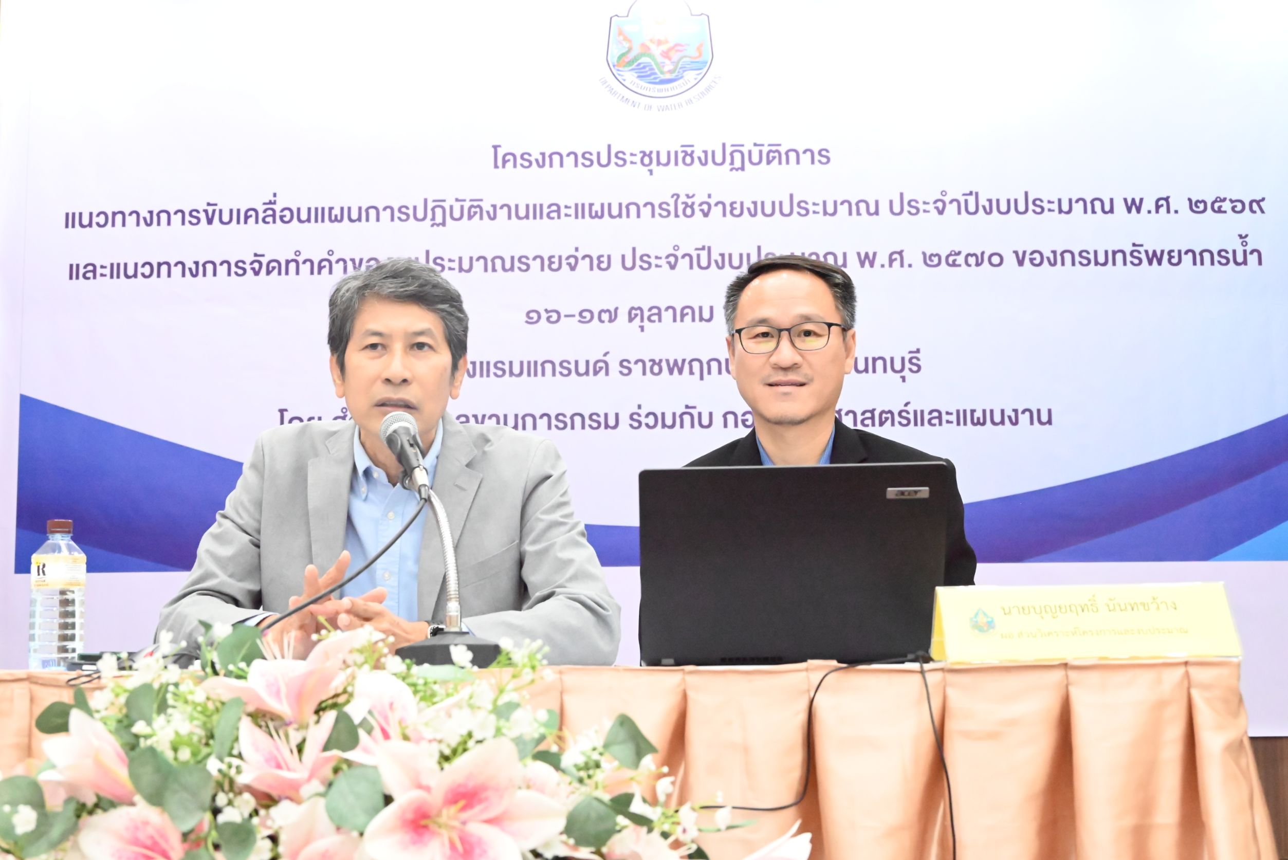 นางสาวสุพัดสอน สีมืด ผู้อำนวยการสำนักงานทรัพยากรน้ำที่ 1 พร้อมด้วยคณะผู้บริหารและเจ้าหน้าที่ในสังกัด เข้าร่วมโครงการประชุมเชิงปฏิบัติการ “แนวทางการขับเคลื่อนแผนการปฏิบัติงานและแผนการใช้จ่ายงบประมาณ ประจำปีงบประมาณ พ.ศ. 2569 และแนวทางการจัดทำคำของบประมาณรายจ่ายประจำปี พ.ศ. 2570” จัดโดยกรมทรัพยากรน้ำ ระหว่างวันที่ 16–17 ตุลาคม 2568 ณ โรงแรมแกรนด์ ราชพฤกษ์ อำเภอปากเกร็ด จังหวัดนนทบุรี มีวัตถุประสงค์เพื่อเสริมสร้างความรู้และความเข้าใจแก่ข้าราชการและเจ้าหน้าที่ เกี่ยวกับแนวทางการจัดทำคำของบประมาณให้สอดคล้องกับนโยบายและเป้าหมายของกรมทรัพยากรน้ำ โดยเชิญ นางสาวโชติกา พงษ์สุระ นิติกรชำนาญการ จากกรมบัญชีกลาง เป็นวิทยากรบรรยาย หัวข้อ "ระเบียบกระทรวงการคลังว่าด้วยการจัดซื้อจัดจ้างและการบริหารพัสดุภาครัฐ" เพื่อให้ความรู้กับผู้บริหาร และเจ้าหน้าที่ พร้อมแลกเปลี่ยนเรียนรู้ ให้ข้อเสนอแนะการดำเนินการตามระเบียบของกรมบัญชีกลางให้ถูกต้องตามหลักเกณฑ์ที่กำหนดไว้ ในโอกาสนี้นายเทียน พิบูลย์สวัสดิ์ ผู้อำนวยการกองยุทธศาสตร์และแผนงาน พร้อมด้วยนายบุญยฤทธิ์ นันทขว้าง ผู้อำนวยการส่วนวิเคราะห์โครงการและงบประมาณ ได้บรรยายหัวข้อ “แนวทางการจัดทำคำของบประมาณรายจ่ายประจำปีงบประมาณ พ.ศ. 2570 ของกรมทรัพยากรน้ำ”และได้เน้นย้ำ Timeline แผนการจัดทำคำของบประมาณ เพื่อบรรจุใน Thai Water Plan: (TWP) ให้ทุกส่วนงานดำเนินการให้ถูกต้อง ครบถ้วน พร้อมระบุแหล่งงบประมาณให้ชัดเจน