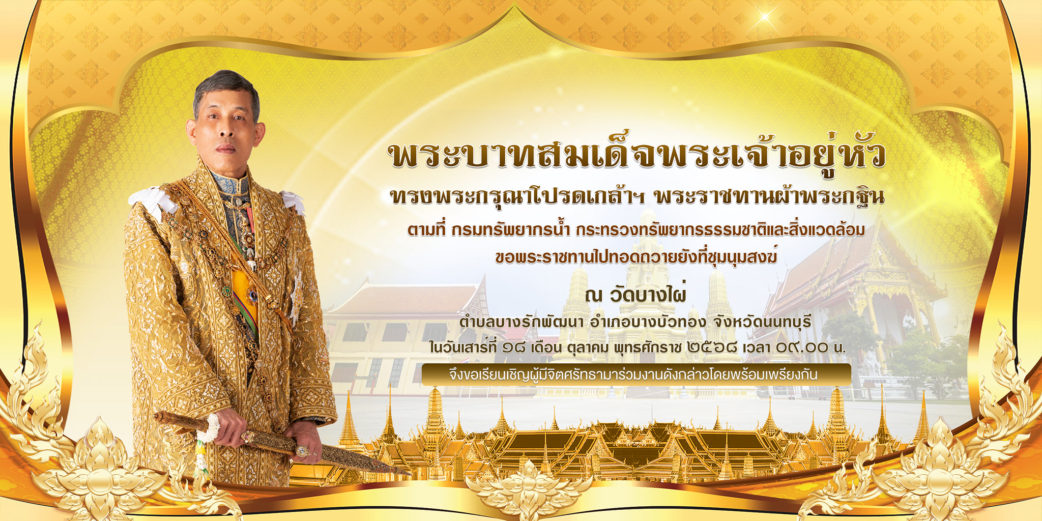 ทั้งนี้ พระบาทสมเด็จพระเจ้าอยู่หัว ทรงพระกรุณาโปรดเกล้าโปรดกระหม่อมพระราชทานผ้าพระกฐินพร้อมเครื่องบริวารพระกฐิน ตามที่กรมทรัพยากรน้ำ ได้ขอรับพระราชทาน เพื่อน้อมนำไปทอดถวายยังที่ชุมนุมสงฆ์ ณ วัดบางไผ่ ตำบลบางรักพัฒนา อำเภอบางบัวทอง จังหวัดนนทบุรี