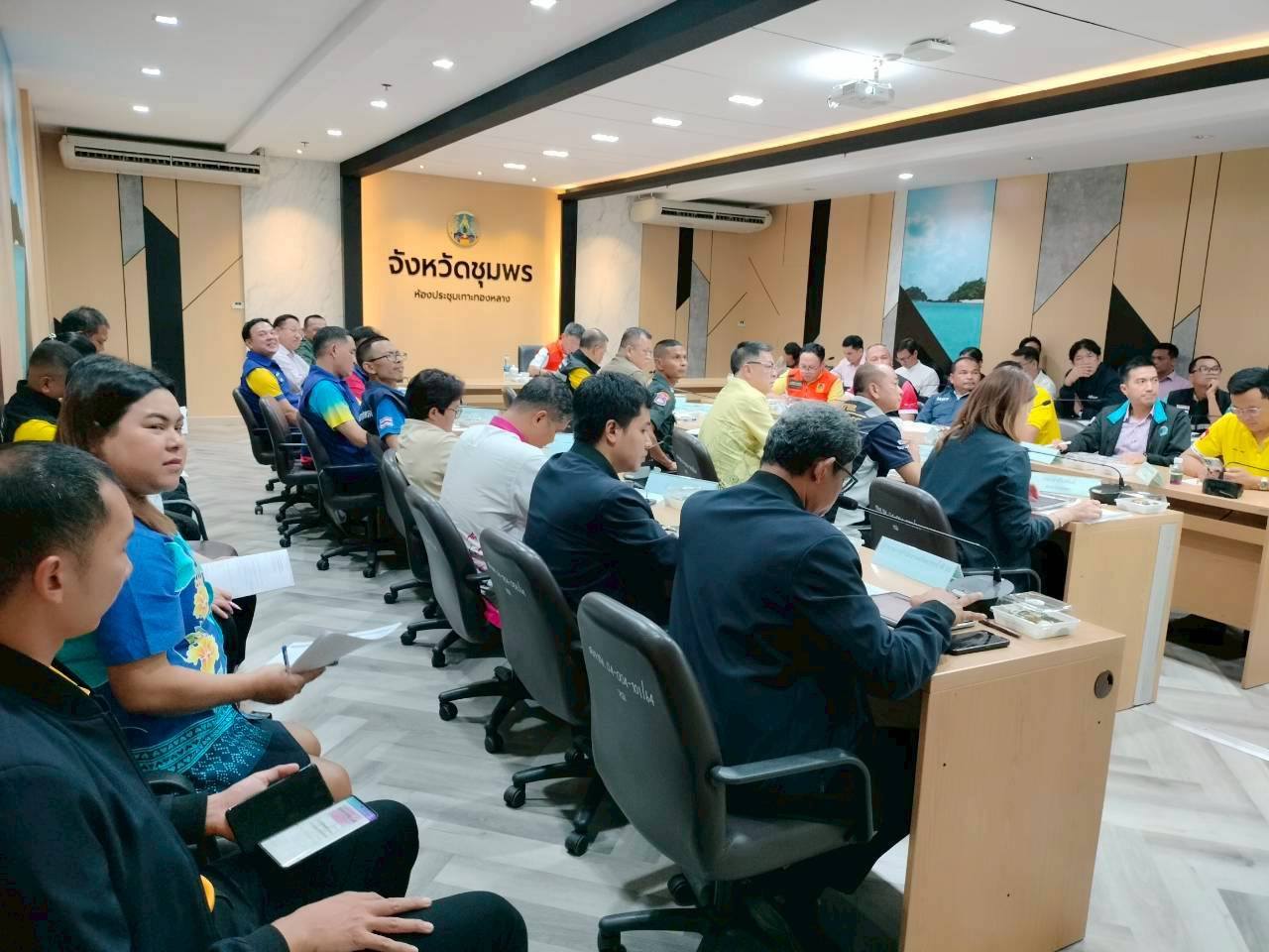 สทน.10 ประชุมกองอำนวยการป้องกันและบรรเทาสาธารณภัยจังหวัดชุมพร เพื่อเตรียมความพร้อมรับสถานการณ์อุทกภัยจังหวัดชุมพร ปี 2568