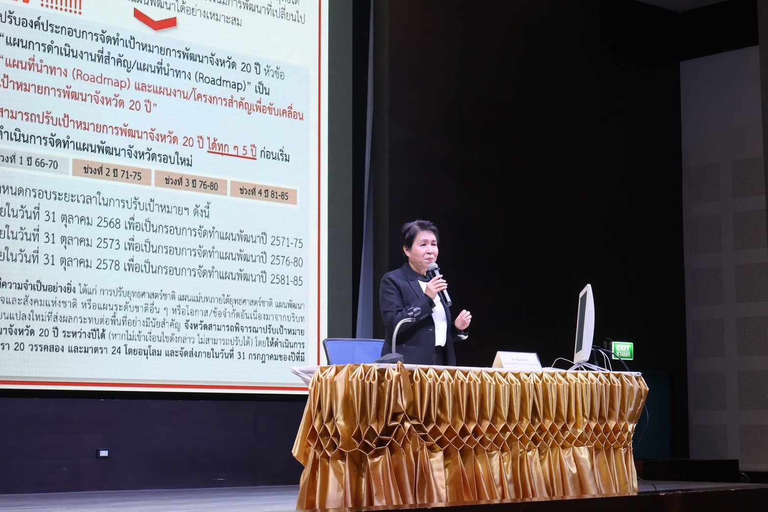 นางสาวสุพัดสอน สีมืด ผู้อำนวยการสำนักงานทรัพยากรน้ำที่ 1 มอบหมายให้ส่วนยุทธศาสตร์และแผนงานเข้าร่วมประชุมปรึกษหารือร่วมกัน เพื่อรับฟังความคิดเห็นเกี่ยวกับร่างเป้าหมายการพัฒนาจังหวัดลำปาง 20 ปี (พ.ศ. 2566 – 2585) ฉบับปรับปรุง ณ ห้องประชุมใหญ่ ชั้น 7 อาคารประถมศึกษา โรงเรียนสาธิตละอออุทิศ มหาวิทยาลัยสวนดุสิตศูนย์การศึกษาลำปาง โดยมี นายกฤษณะ พินิจ รองผู้ว่าราชการจังหวัดลำปาง เป็นประธาน ผู้เข้าร่วมประชุมประกอบด้วย ผู้แทนจากภาครัฐ ภาคเอกชน และภาคประชาสังคม ในที่ประชุมมีประเด็นสำคัญ ได้แก่ นำเสนอ (ร่าง) เป้าหมายการพัฒนาจังหวัดลำปาง 20 ปี (พ.ศ. 2566 – 2585) ฉบับปรับปรุงประจำปีงบประมาณ พ.ศ. 2570 โดย ดร.ขวัญนภา สุขคร ผู้อำนวยการศูนย์การศึกษาลำปาง มหาวิทยาลัยสวนดุสิต เป็นวิทยากร ในที่ประชุมได้ร่วมกันปรึกษาหารือและรับฟังความคิดเห็นต่อทิศทางการพัฒนาจังหวัดลำปาง เพื่อให้การจัดทำเป้าหมายการพัฒนาจังหวัดลำปาง 20 ปี สามารถบรรลุผลสัมฤทธิ์ได้อย่างมีประสิทธิภาพ