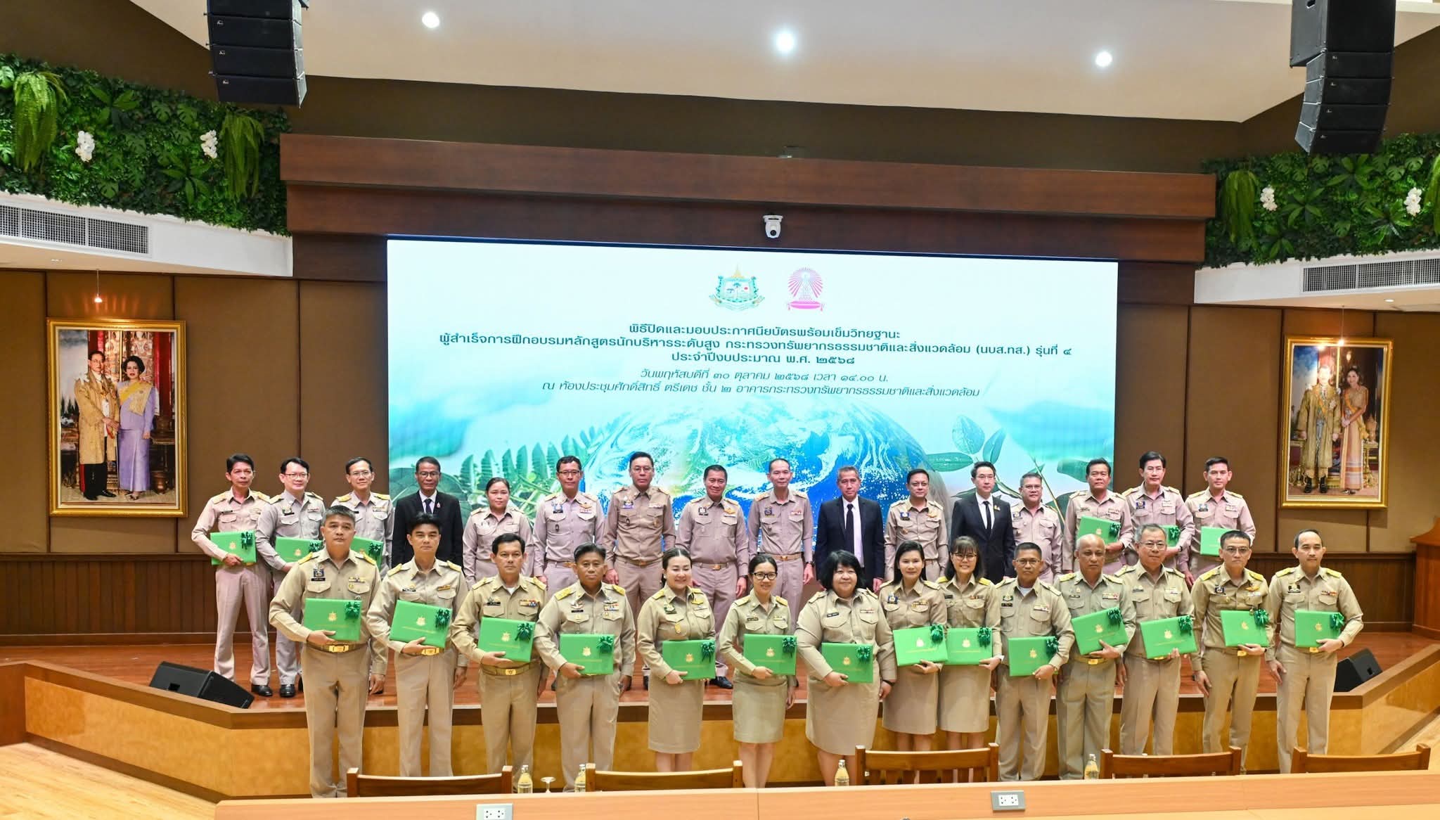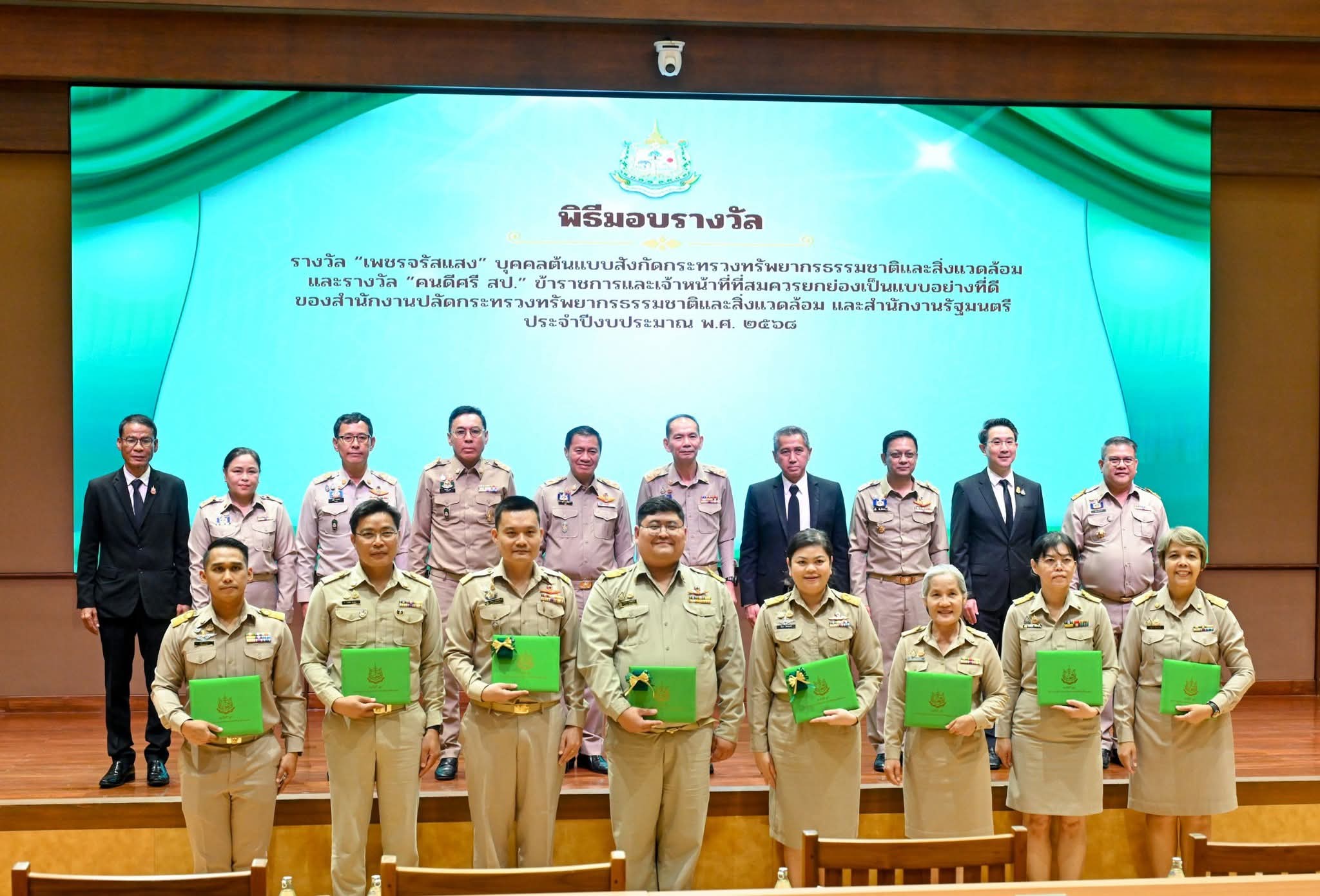 วันนี้ (30 ตุลาคม 2568) นายนิพนธ์ จำนงสิริศักดิ์ รองปลัดกระทรวงทรัพยากรธรรมชาติและสิ่งแวดล้อม เป็นประธานในพิธี โดยมีผู้บริหารในสังกัดกระทรวงฯ และนายโอภาส ถาวร รองอธิบดีกรมทรัพยากรน้ำ ร่วมเป็นสักขีพยานในพิธีมอบประกาศนียบัตรพร้อมเข็มวิทยฐานะให้แก่ผู้สำเร็จการฝึกอบรมหลักสูตรนักบริหารระดับสูง กระทรวงทรัพยากรธรรมชาติและสิ่งแวดล้อม (นบส.ทส.) รุ่นที่ 4 จำนวน 22 ราย พร้อมมอบรางวัลเพชรจรัสแสง 4 ราย รางวัลผู้มีผลงานดีเด่น 27 ราย และรางวัลคนดีศรี สป. 3 ราย รางวัลผู้มีผลงานดี 5 ราย ให้แก่ข้าราชการและเจ้าหน้าที่ที่สมควรยกย่องให้เป็นบุคคลต้นแบบสังกัดกระทรวงทรัพยากรธรรมชาติและสิ่งแวดล้อม ประจำปีงบประมาณ พ.ศ. 2568 ณ ห้องประชุมศักดิ์สิทธิ์ ตรีเดช ชั้น 2 อาคารกระทรวงทรัพยากรธรรมชาติและสิ่งแวดล้อม ในการนี้ นายธีระชุณ บุญสิทธิ์ อธิบดีกรมทรัพยากรน้ำ และผู้บริหารกรมฯ ได้ให้โอวาทและแสดงความยินดีแก่ผู้ได้รับมอบรางวัลเพชรจรัสแสงของกรมทรัพยากรน้ำ เพื่อเป็นแนวทางการปฏิบัติงานและกำลังใจในการทำงานต่อไป