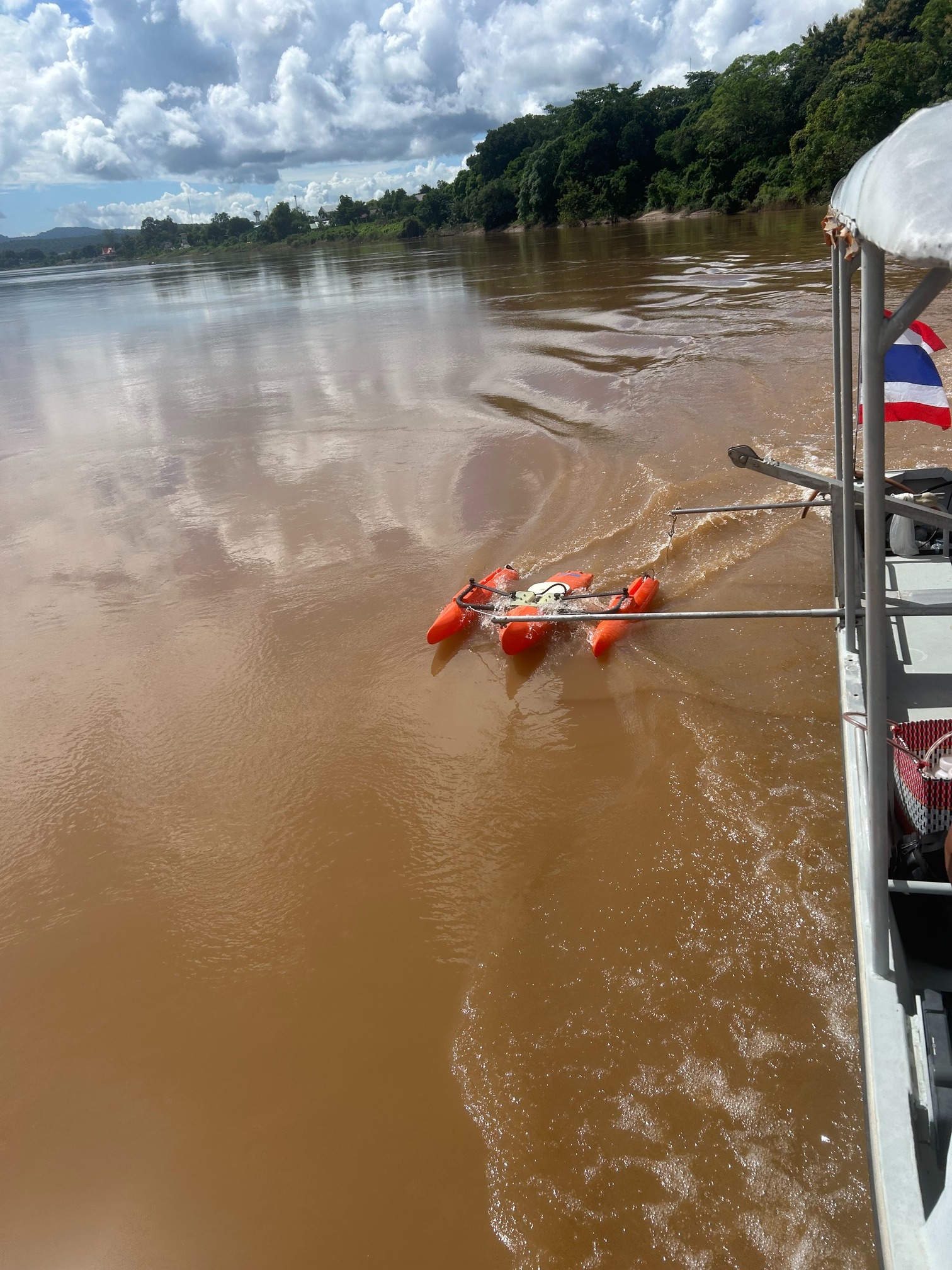 วันที่ 30 ตุลาคม 2568 นายโภคิน ช้ำเกตุ ผู้อำนวยการสำนักงานทรัพยากรน้ำที่ 11 มอบหมายให้ เจ้าหน้าที่ศูนย์สำรวจอุทกวิทยาโขงเจียม ส่วนอุทกวิทยา ดำเนินกิจกรรม การสำรวจปริมาณน้ำและการเก็บตัวอย่างตะกอนแขวนลอย ตะกอนท้องน้ำ แม่น้ำโขงร่วมไทยลาว เพื่อติดตามเฝ้าระวังสถานการณ์น้ำแม่น้ำโขง โดยใช้เครื่องมือวัดกระแสน้ำด้วยคลื่นเสียง (ADCP) และเครื่องตักตะกอนขนาดใหญ่ US-D96 ณ สถานีโขงเจียม อำเภอโขงเจียม จังหวัดอุบลราชธานี