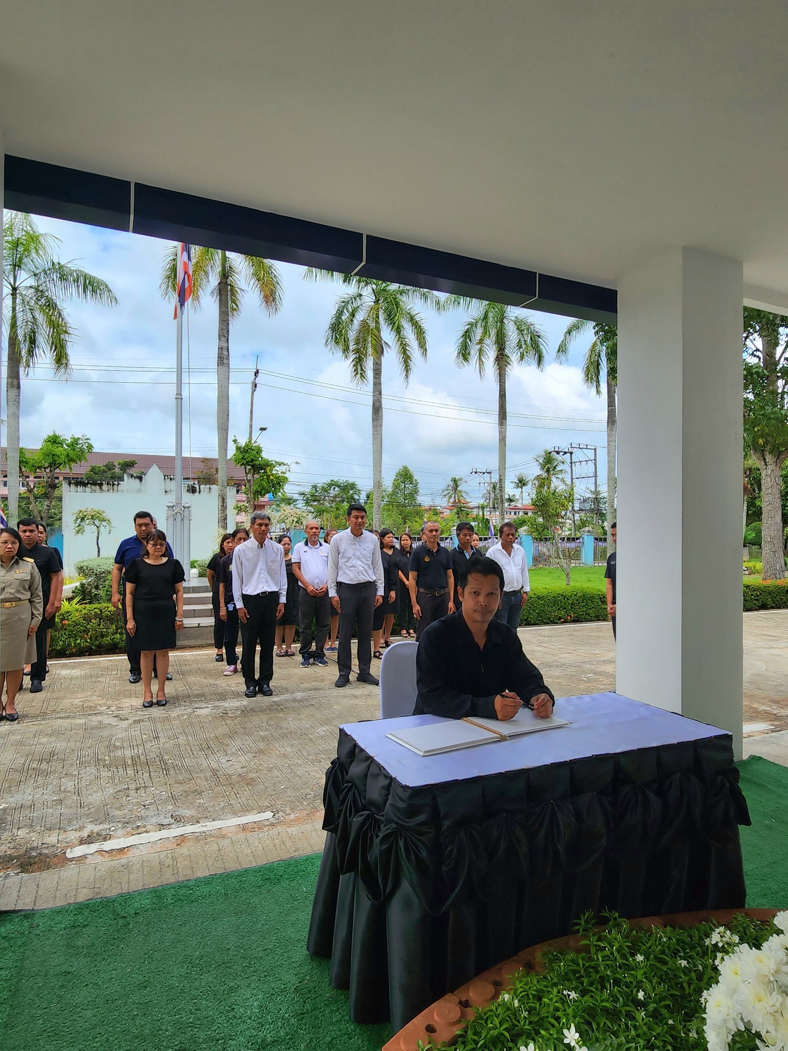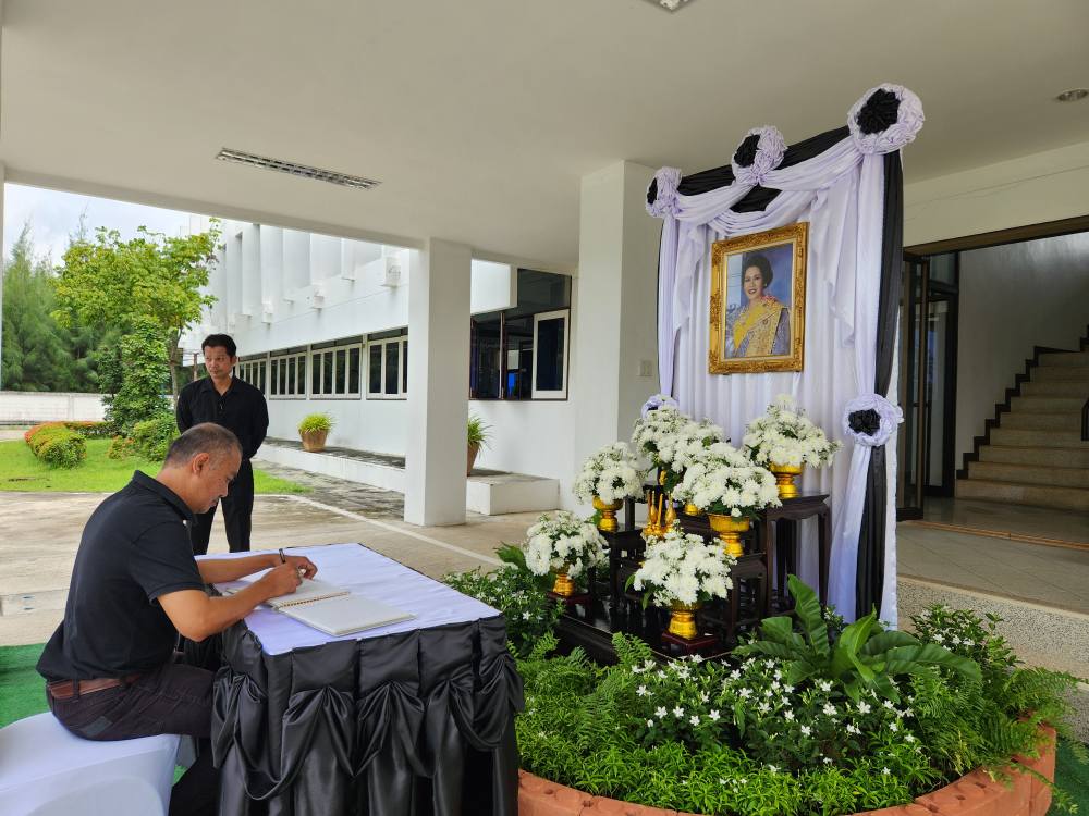 ข้าราชการและเจ้าหน้าที่ในสังกัดสำนักงานทรัพยากรน้ำที่ 10 ร่วมลงนามถวายอาลัยสมเด็จพระนางเจ้าสิริกิติ์ พระบรมราชินีนาถ พระบรมราชชนนีพันปีหลวงเบื้องหน้าพระฉายาลักษณ์ ณ หน้าอาคารสำนักงานทรัพยากรน้ำที่ 10 ตำบลมะขามเตี้ย อำเภอเมือง จังหวัดสุราษฎร์ธานี เพื่อแสดงออกถึงความจงรักภักดี และน้อมสำนึกในพระมหากรุณาธิคุณอย่างหาที่สุดมิได้