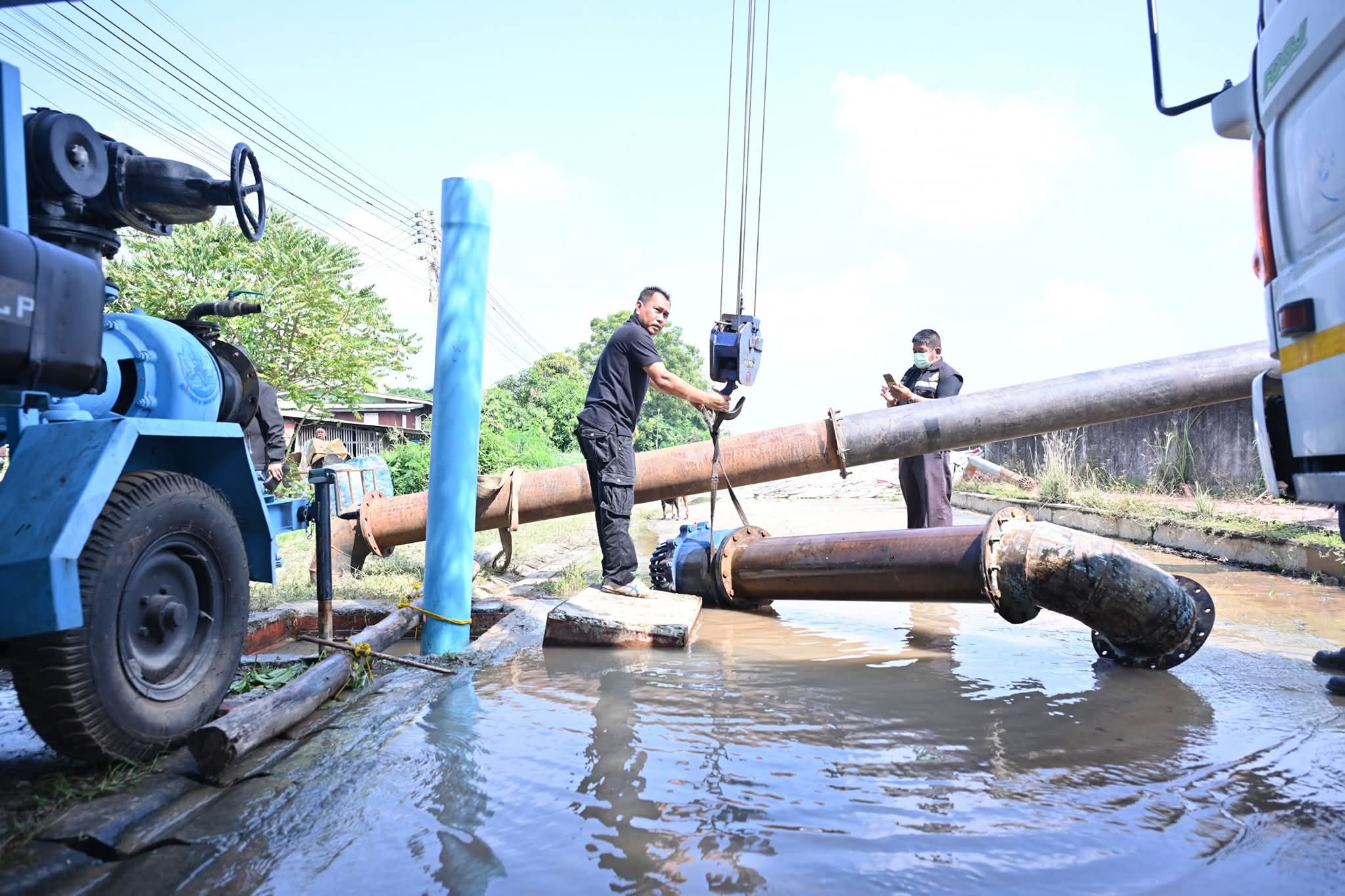 วันที่ 9 พฤศจิกายน 2568 — กรมทรัพยากรน้ำเร่งเครื่อง! เดินหน้าระบายน้ำท่วมขังในพื้นที่จังหวัดอ่างทองและจังหวัดสิงห์บุรี หลังแม่น้ำเจ้าพระยาเพิ่มระดับสูงจากฝนตกต่อเนื่อง โดย นายธีระชุณ บุญสิทธิ์ อธิบดีกรมทรัพยากรน้ำ ได้สั่งการให้ สำนักงานทรัพยากรน้ำที่ 2 (สทน.2) ลงพื้นที่เร่งติดตั้งเครื่องสูบน้ำ พร้อมมอบหมายให้ นายโอภาส ถาวร รองอธิบดีกรมทรัพยากรน้ำ ลงพื้นที่ติดตามการปฏิบัติงานและให้กำลังใจเจ้าหน้าที่ในจุดปฏิบัติการ โดย นายโอภาส ถาวร รองอธิบดีกรมทรัพยากรน้ำ ได้เน้นย้ำให้เจ้าหน้าที่ทำงานแข่งกับเวลา เพื่อเร่งระบายน้ำให้เร็วที่สุด และดูแลความปลอดภัยของประชาชนอย่างใกล้ชิด พร้อมเปิดเผยว่า “เมื่อวันที่ 8 พฤศจิกายน 2568 กรมทรัพยากรน้ำ โดยสำนักงานทรัพยากรน้ำที่ 2 ลงพื้นที่ตั้งเครื่องสูบน้ำ จำนวน 2 จุด ได้แก่