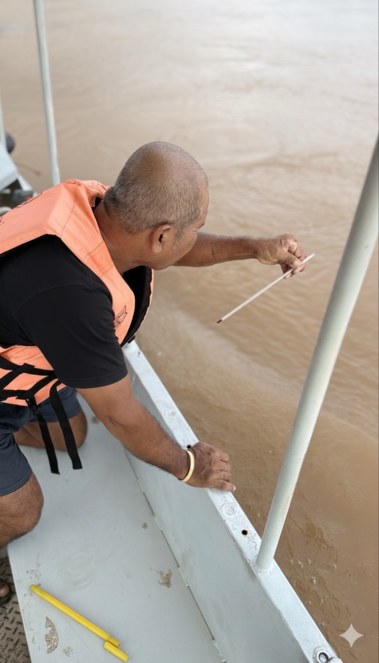 วันที่ 6 พฤศจิกายน 2568 นายโภคิน ช้ำเกตุ ผู้อำนวยการสำนักงานทรัพยากรน้ำที่ 11 มอบหมายให้ เจ้าหน้าที่ศูนย์สำรวจอุทกวิทยาโขงเจียม ส่วนอุทกวิทยา ดำเนินกิจกรรม การสำรวจปริมาณน้ำและการเก็บตัวอย่างตะกอนแขวนลอย ตะกอนท้องน้ำ แม่น้ำโขงร่วมไทยลาว เพื่อติดตามเฝ้าระวังสถานการณ์น้ำแม่น้ำโขง โดยใช้เครื่องมือวัดกระแสน้ำด้วย คลื่นเสียง (ADCP) และเครื่องตักตะกอนขนาดใหญ่ US-D96 ณ สถานีโขงเจียม อำเภอโขงเจียม จังหวัดอุบลราชธานี