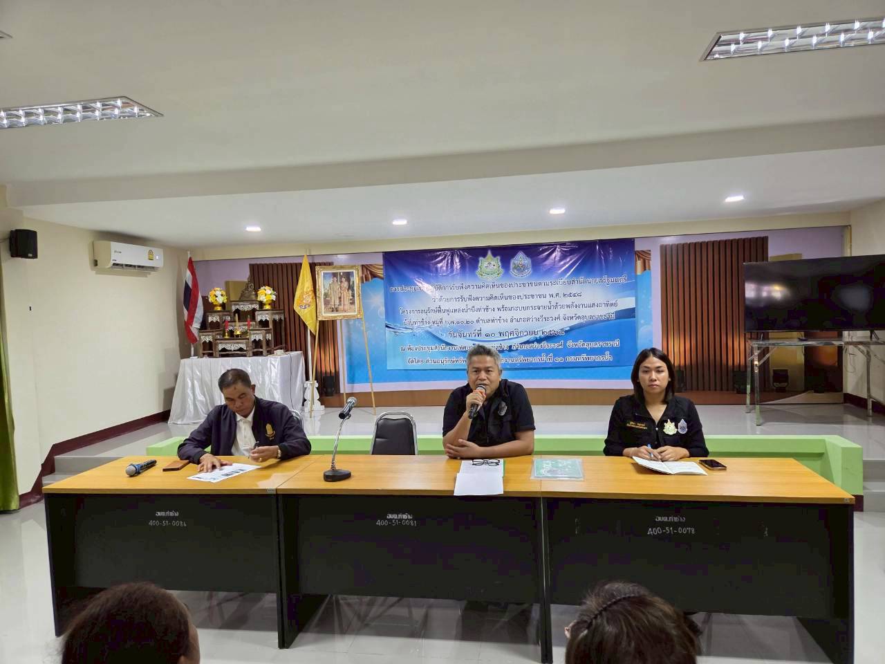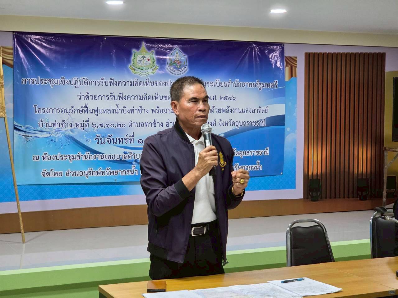 วันที่ 10 พฤศจิกายน 2568 นายโภคิน ช้ำเกตุ ผู้อำนวยการสำนักงานทรัพยากรน้ำที่ 11 มอบหมายให้เจ้าหน้าที่ส่วนอนุรักษ์ทรัพยากรน้ำลงพื้นที่เพื่อจัดประชุมเชิงปฏิบัติการ รับฟังความคิดเห็นของประชาชนตามระเบียบสำนักนายกรัฐมนตรีว่าด้วยการรับฟัง ความคิดเห็นของประชาชน พ.ศ. 2548 “โครงการโครงการอนุรักษ์ฟื้นฟูแหล่งน้ำบึงท่าช้าง พร้อมระบบกระจายน้ำด้วยพลังงานแสงอาทิตย์” บ้านท่าช้าง หมู่ที่ 6, 7, 10, 20 ตำบลท่าช้าง อำเภอสว่างวีระวงศ์ จังหวัดอุบลราชธานี ณ ห้องประชุมสำนักงาน เทศบาลตำบลท่าช้าง มีประชาชนในพื้นที่เข้ารับฟังโครงการฯ จำนวน 74 ราย ทั้งนี้ ได้มีการชี้แจงรายละเอียดเกี่ยวกับโครงการของกรมทรัพยากรน้ำที่จะเข้ามาดำเนินการ ในพื้นที่ ซึ่งที่ประชุมฯ มีมติเห็นชอบ ให้ดำเนินโครงการฯและให้ข้อคิดเห็นข้อเสนอแนะ ที่เป็นประโยชน์โดยสำนักงานทรัพยากรน้ำที่ 11 จะนำข้อเสนอแนะและความต้องการ ของที่ประชุมไปพิจารณาดำเนินการเพื่อขอรับการสนับสนุนงบประมาณการก่อสร้างโครงการต่อไป