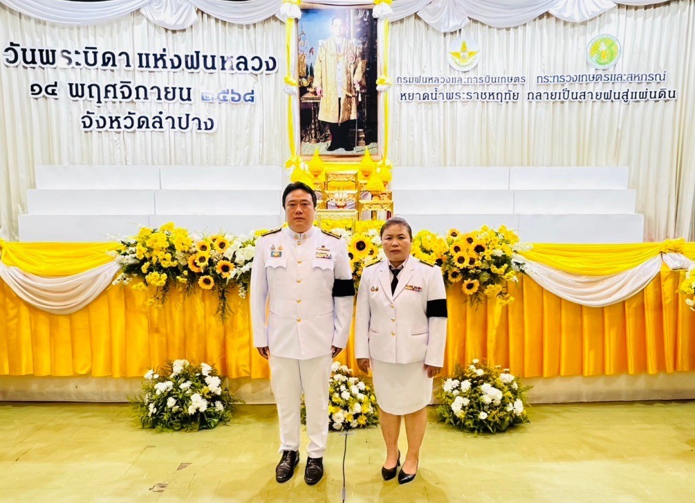 นางสาวสุพัดสอน สีมืด ผู้อำนวยการสำนักงานทรัพยากรน้ำที่ 1 มอบหมายให้ นายวรรธนาพันธุ์ วรรธนะศักดิ์ ผู้อำนวยการส่วนอนุรักษ์ทรัพยากรน้ำที่ 1 ลำปาง พร้อมด้วย ข้าราชการ พนักงานราชการ และเจ้าหน้าที่ส่วนอนุรักษ์ทรัพยากรน้ำที่ 1 ลำปาง เข้าร่วมพิธีวางพานพุ่มดอกไม้สดเนื่องใน “วันพระบิดาแห่งฝนหลวง” ณ หอประชุมจังหวัดลำปาง ศาลากลางจังหวัดลำปาง โดยมี นายวิวัฒน์ อินทร์ไทยวงศ์ ผู้ว่าราชการจังหวัดลำปาง เป็นประธานในพิธีวางพานพุ่มดอกไม้สดถวายราชสักการะน้อมรำลึกในพระมหากรุณาธิคุณ พระบาทสมเด็จพระบรมชนกาธิเบศร มหาภูมิพลอดุลยเดชมหาราช บรมนาถบพิตร เนื่องใน “วันพระบิดาแห่งฝนหลวง” ประจำปี 2568 โดยมีคณะผู้บริหาร หัวหน้าส่วนราชการ หน่วยงานองค์กรภาครัฐ รัฐวิสาหกิจ ภาคเอกชน องค์กรปกครองส่วนท้องถิ่น ข้าราชการจากสังกัดหน่วยงานต่างๆ และประชาชนชาวลำปางทุกหมู่เหล่า ร่วมประกอบพิธีฯ เมื่อผู้ว่าราชการจังหวัดลำปางเดินทางมาถึง ได้นำผู้เข้าร่วมทำพิธีถวายอาลัย สมเด็จพระนางเจ้าสิริกิติ์ พระบรมราชินีนาถ พระบรมราชชนนีพันปีหลวง ด้วยการยืนสงบนิ่งถวายความอาลัยเป็นเวลา 93 วินาที