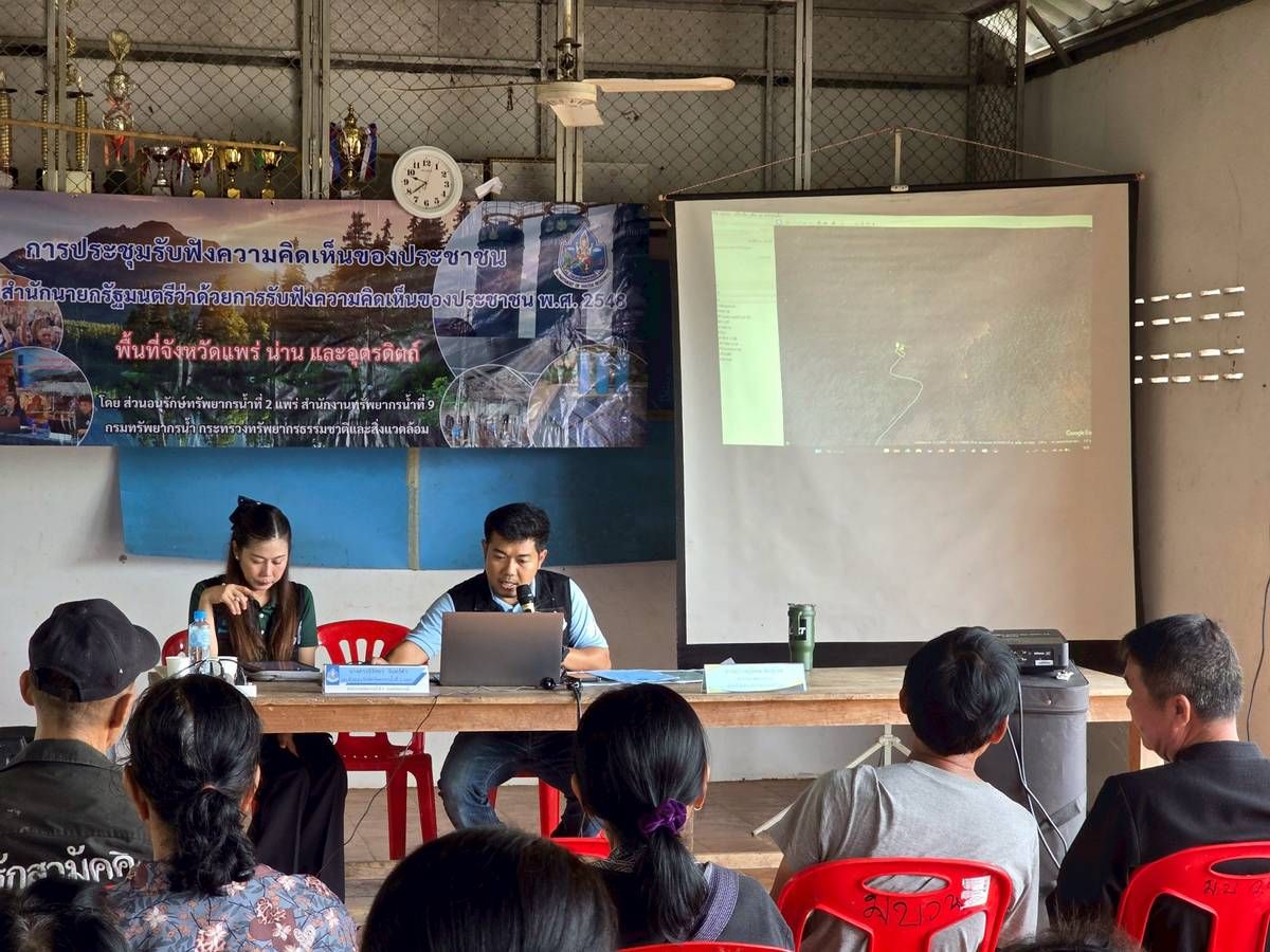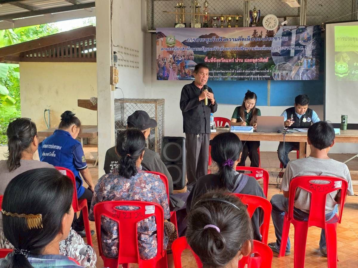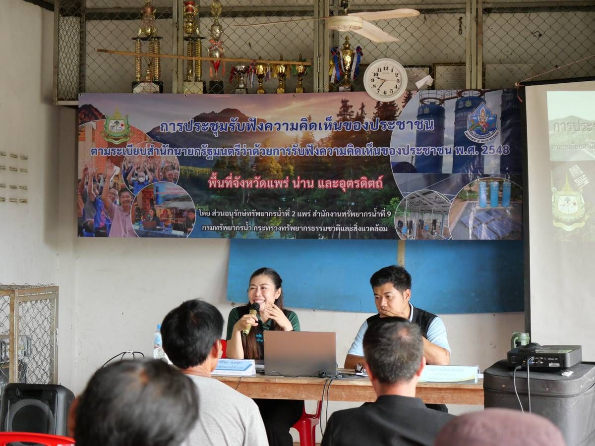 นายนิมิตร โคตรบัว ผู้อำนวยการสำนักงานทรัพยากรน้ำที่ 9 มอบหมายให้ส่วนอนุรักษ์ทรัพยากรน้ำที่ 2 แพร่ พร้อมด้วยส่วนสำรวจและออกแบบ จัดประชุมรับฟังความคิดเห็นของประชาชนฯ โครงการอนุรักษ์ฟื้นฟูอ่างเก็บน้ำห้วยต้นหนุนพร้อมระบบส่งน้ำ ม.5 บ.วังแฟน ต.วังชิ้น อ.วังชิ้น จ.แพร่ ณ ศาลาเอนกประสงค์บ้านวังแฟน หมู่ที่ 5