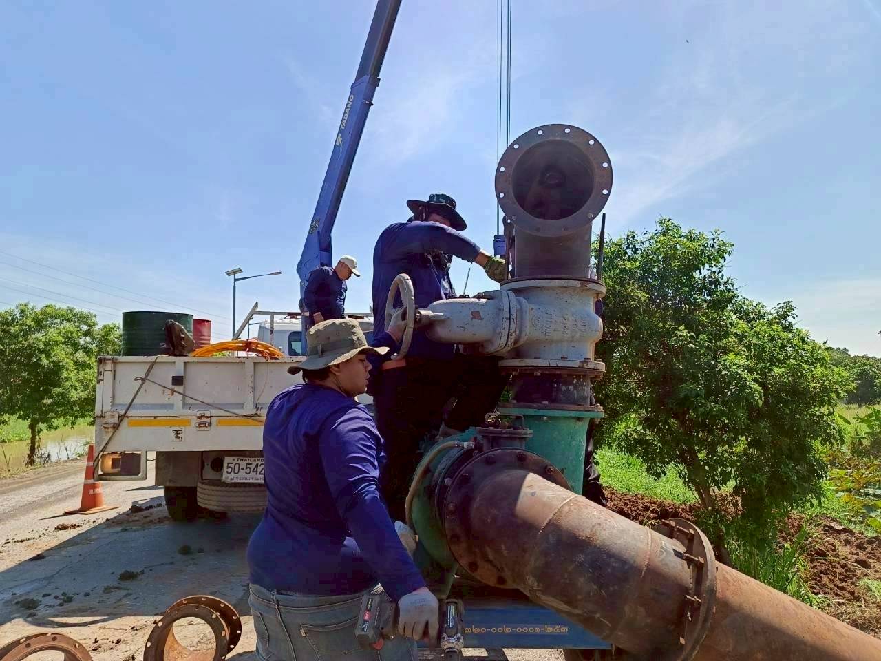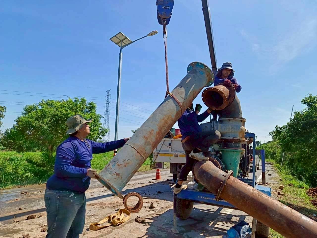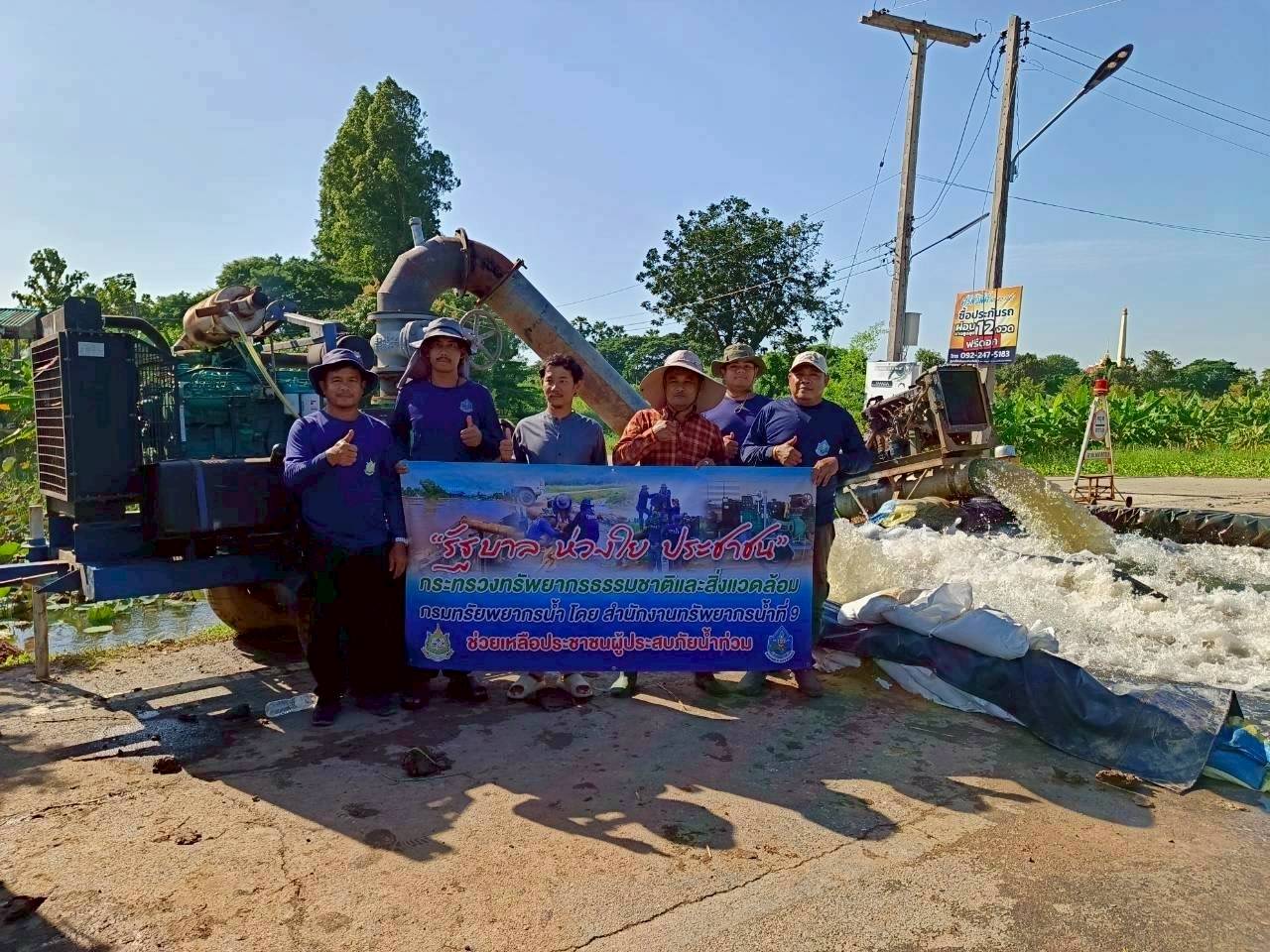 สทน.2 ร่วมกับ สทน.9 สูบระบายน้ำช่วยเหลือแก้ไขปัญหาน้ำท่วมขังบริเวณหมู่ที่ 1 บ้านบางแก้ว ตำบลตลาดกรวด อำเภอเมืองอ่างทอง จังหวัดอ่างทอง