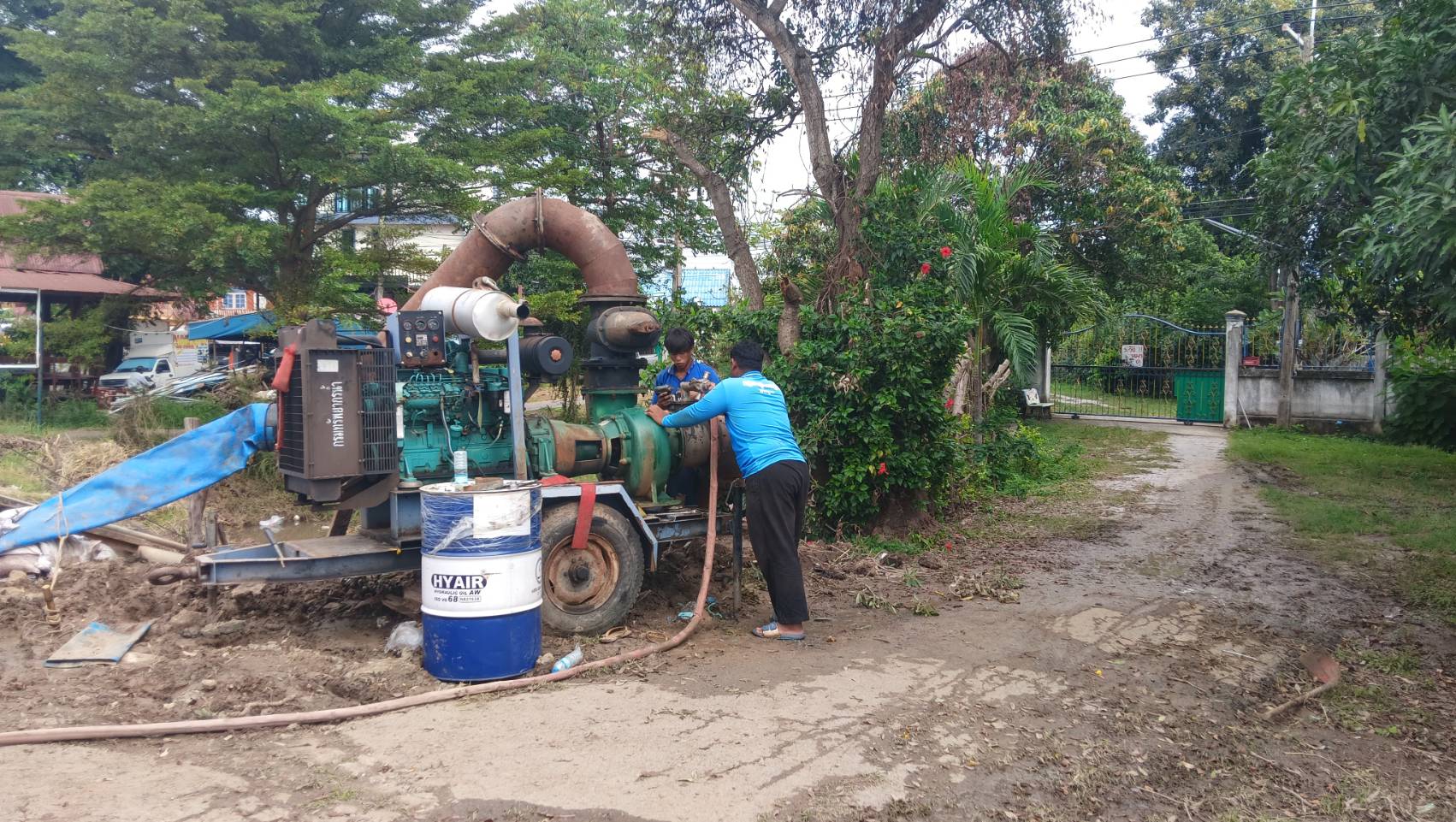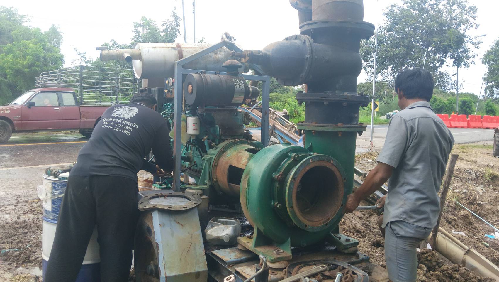 นายสุมิต สีสา ผู้อำนวยการสำนักงานทรัพยากรน้ำที่ 5 และนายสิทธิชัย ปริญญาขจร ผู้อำนวยการสำนักงานทรัพยากรน้ำที่ 2 มอบหมายให้เจ้าหน้าที่ส่วนเครื่องกล สทน.5 ร่วมกับ สทน.2 ดำเนินการติดตั้งเครื่องสูบน้ำ แบบหอยโข่ง ขนาด 12 นิ้ว จำนวน 3 เครื่อง เพื่อช่วยเหลือประชาชนที่ได้รับผลกระทบเหตุอุทกภัย ได้แก่