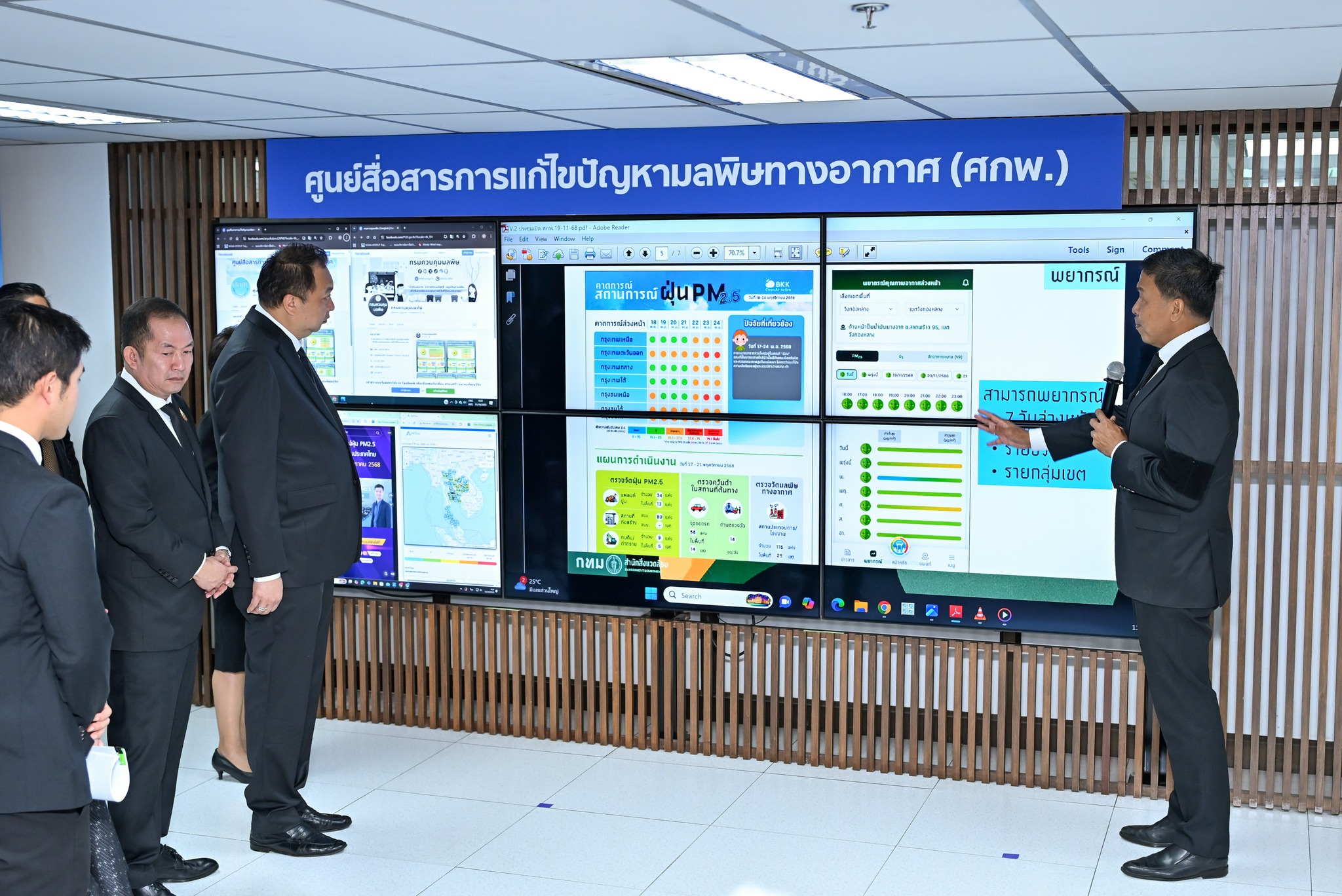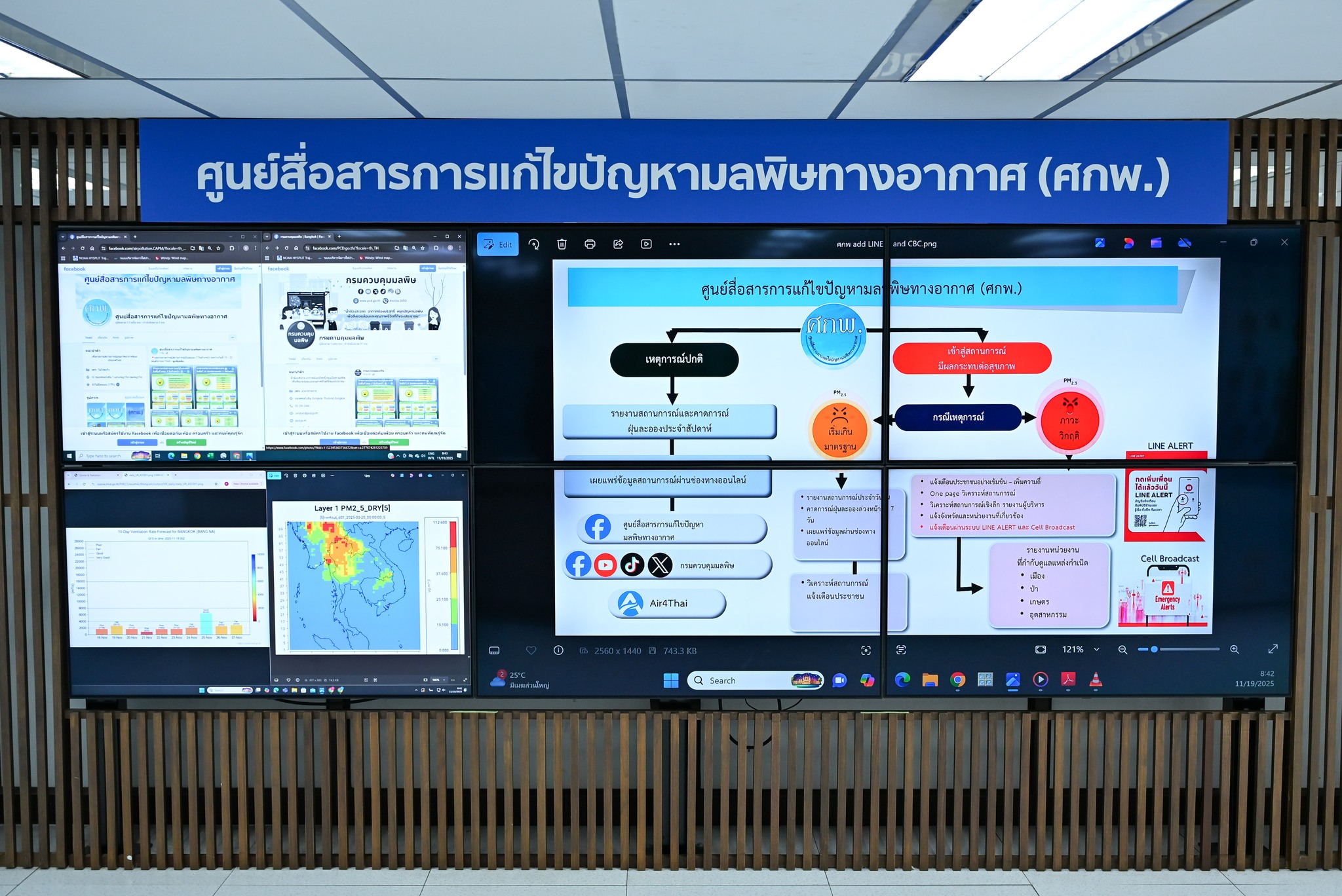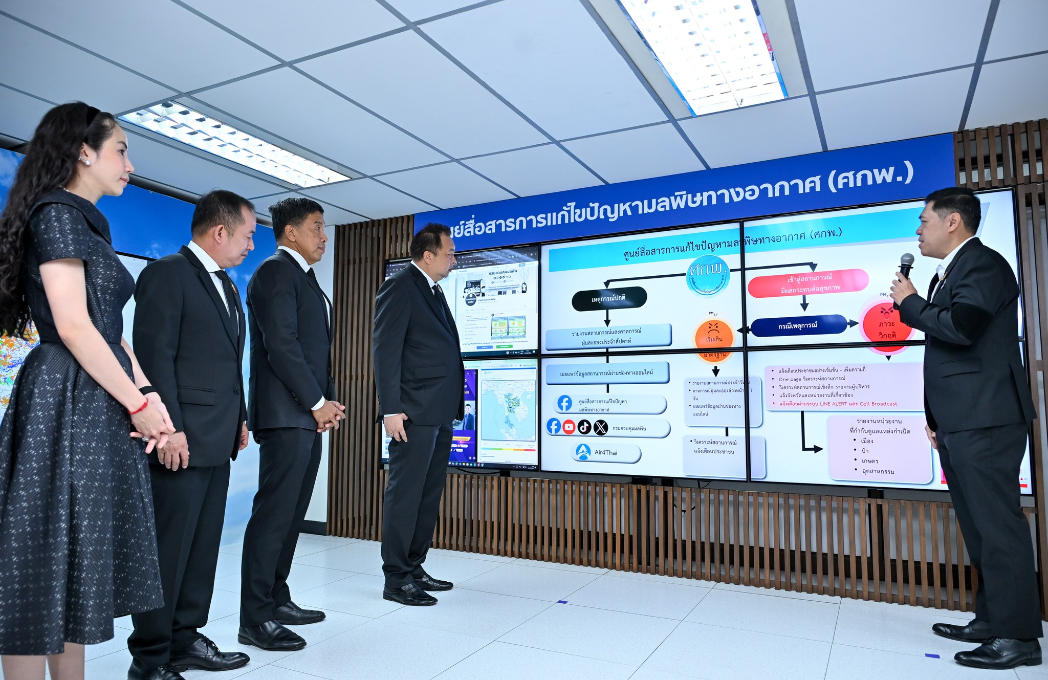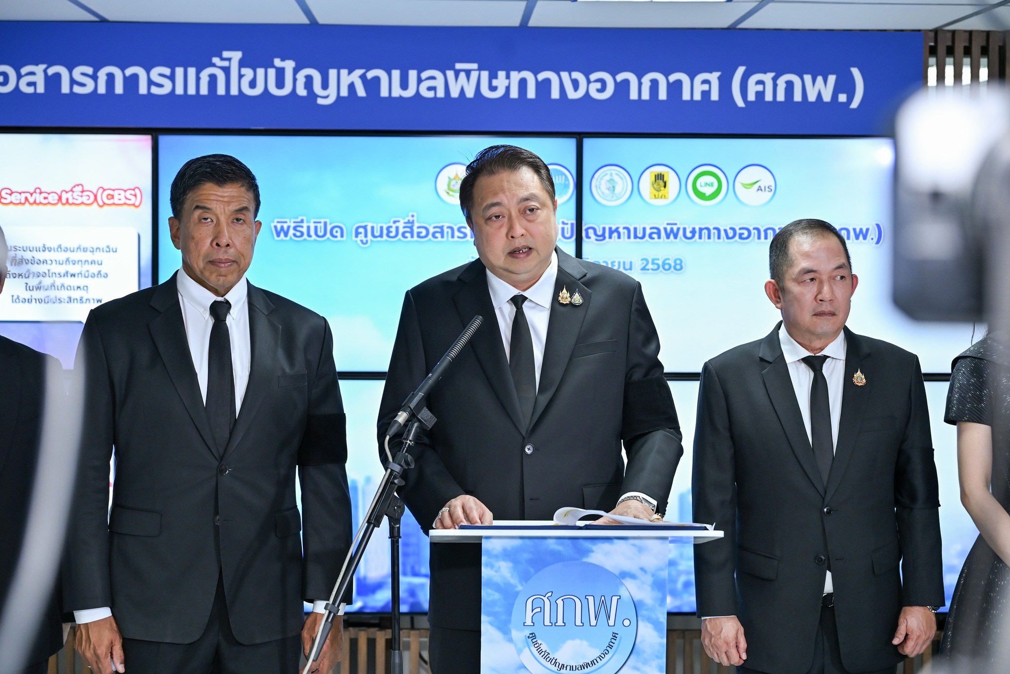 วันนี้ (19 พฤศจิกายน 2568) นายสุชาติ ชมกลิ่น รองนายกรัฐมนตรีและรัฐมนตรีว่าการกระทรวงทรัพยากรธรรมชาติและสิ่งแวดล้อม เป็นประธานเปิดศูนย์สื่อสารการแก้ไขปัญหามลพิษทางอากาศ (ศกพ.) ซึ่งเป็นศูนย์กลางด้านการสื่อสารสถานการณ์ฝุ่นละอองเพียงแห่งเดียวของประเทศ มุ่งบูรณาการข้อมูลสำคัญจากหลายหน่วยงานทั้งภาครัฐและเอกชน อาทิ กรมอุตุนิยมวิทยา GISTDA กระทรวงมหาดไทย กรุงเทพมหานคร บริษัท ไลน์ คอมพานี (ประเทศไทย) จำกัด และบริษัท แอดวานซ์ อินโฟร์ เซอร์วิส จำกัด (มหาชน) เพื่อสนับสนุนการเฝ้าระวังและแจ้งเตือนสถานการณ์ PM2.5 อย่างมีประสิทธิภาพ พร้อมมอบแนวทางการปฏิบัติงานให้แก่เจ้าหน้าที่ในทุกภาคส่วน