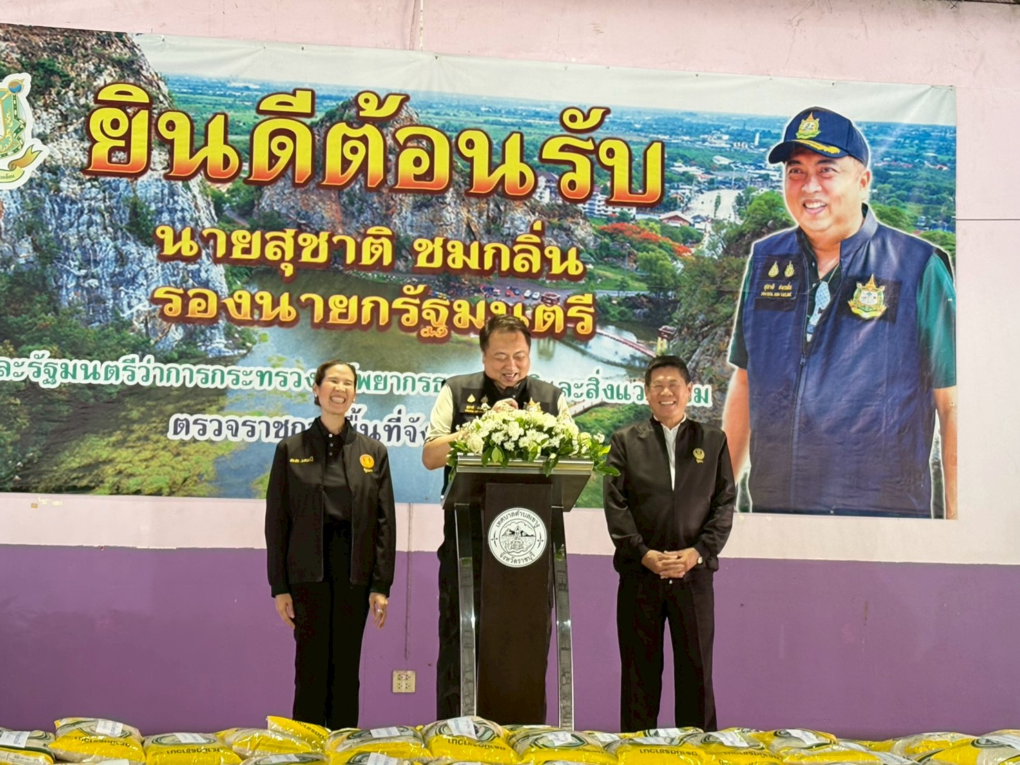 วันที่ 20 พฤศจิกายน 2568 นายสุชาติ ชมกลิ่น รองนายกรัฐมนตรี และรัฐมนตรีว่าการกระทรวงทรัพยากรธรรมชาติและสิ่งแวดล้อม พร้อมด้วยคณะผู้บริหารสังกัดกระทรวงฯ และนายเวสารัช โสภณดิเรกรัตน์ รองอธิบดีกรมทรัพยากรน้ำ ลงพื้นที่ตรวจราชการในจังหวัดราชบุรี เพื่อติดตามภารกิจการดำเนินงาน และมอบนโยบายให้แก่ข้าราชการในสังกัดกระทรวงทรัพยากรธรรมชาติและสิ่งแวดล้อม พร้อมทั้งเยี่ยมชมพื้นที่ขุดเจาะน้ำบาดาลของสำนักทรัพยากรน้ำบาดาล เขต 8 เยี่ยมชมโครงการพัฒนาพื้นที่ป่าเพื่อการเรียนรู้ อุทยานหินเขางู และศูนย์ช่วยเหลือสัตว์ป่าที่ 3 (ประทับช้าง) เพื่อดูพื้นที่ในการพัฒนาเป็นสวนสัตว์ขนาดเล็ก
