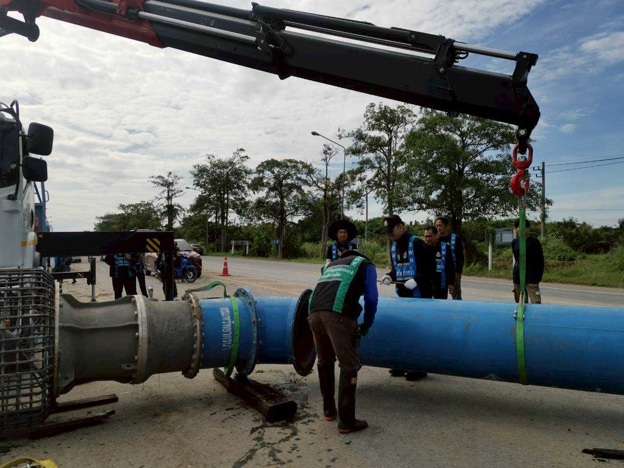 สทน.2 ร่วมกับ สทน.1 ติดตั้งเครื่องสูบน้ำไฮดรอลิค บริเวณหมู่ที่ 2 บ้านสวนหลวง ตำบลอินทร์บุรี อำเภออินทร์บุรี จังหวัดสิงห์บุรี