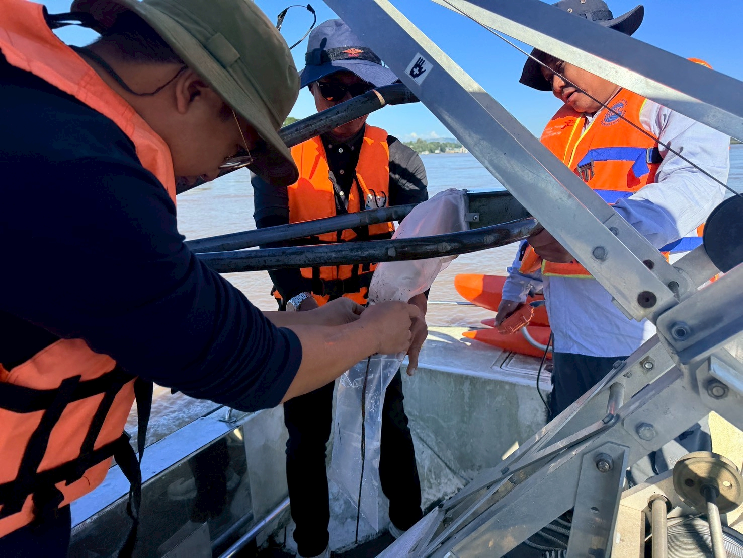นางสาวสุพัดสอน สีมืด ผู้อำนวยการสำนักงานทรัพยากรน้ำที่ 1 มอบหมายให้เจ้าหน้าที่ส่วนอุทกวิทยา ที่ 4 เชียงแสน ปฏิบัติหน้าที่เกี่ยวกับการสำรวจวัดปริมาณน้ำแม่น้ำโขงด้วยเครื่อง Acoustic Doppler Current Profiler(ADCP) วิ่ง Loop test , Moving Bed สำรวจการเปลี่ยนแปลงสภาพของท้องน้ำ, เก็บตัวอย่างตะกอนแขวนลอย(USD 49) และเก็บตัวอย่างตะกอนท้องน้ำ(US BL-48) เพื่อการวิเคราะห์ ตรวจสอบการเปลี่ยนแปลงสภาพท้องน้ำและส่งผลการวิเคราะห์ไปยังคณะกรรมาธิการแม่น้ำโขง(MRC)และกองวิจัย พัฒนาและอุทกวิทยา กรมทรัพยากรน้ำ ณ สถานีสำรวจวัดปริมาณน้ำแม่น้ำโขง อำเภอเชียงแสน จังหวัดเชียงราย