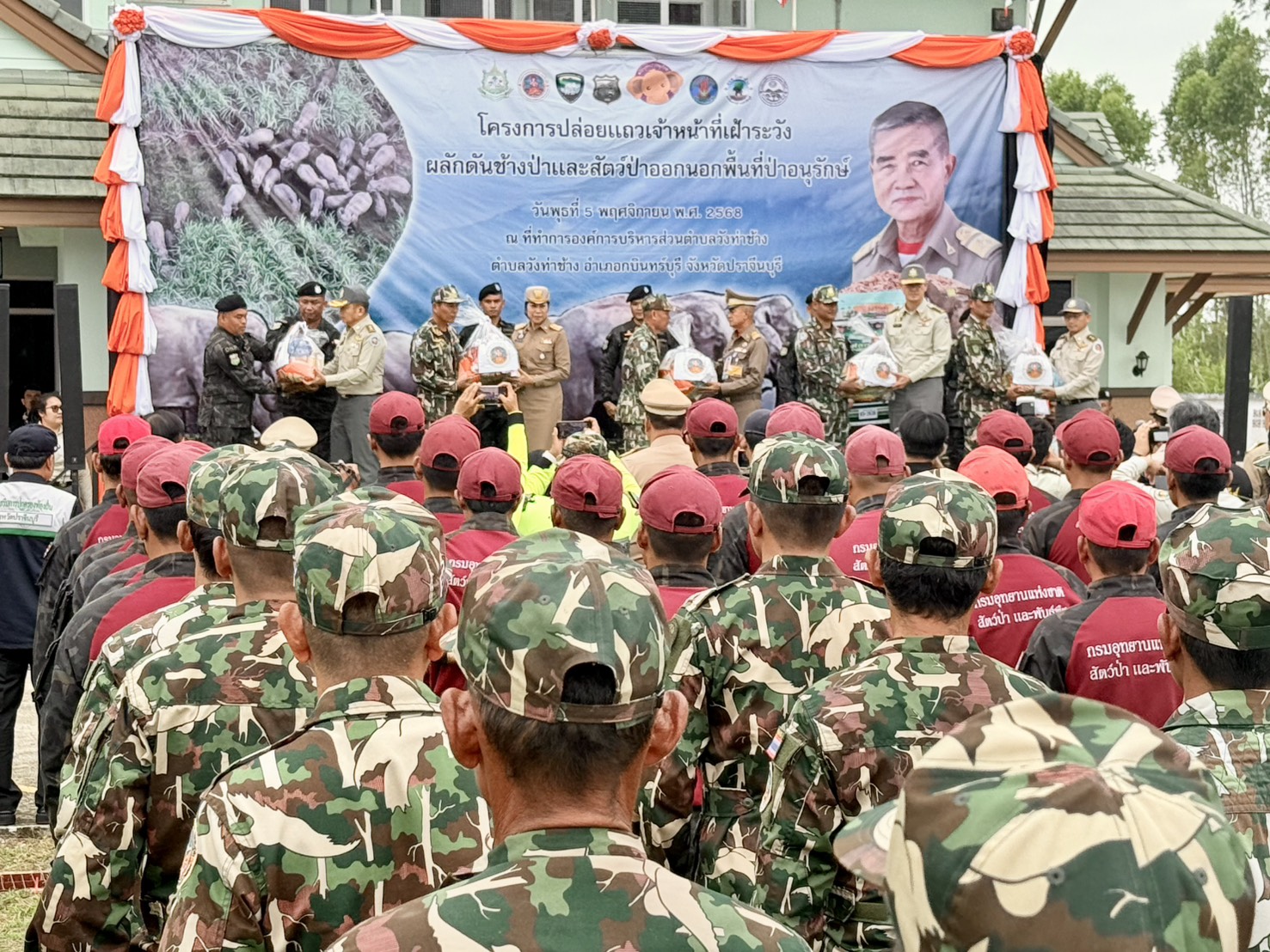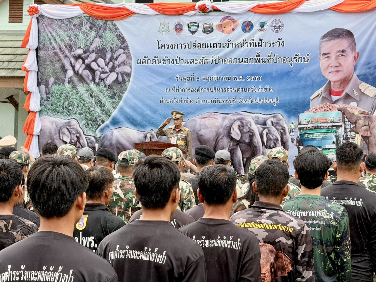 วันพุธที่ 5 พฤศจิกายน 2568 เวลา 09.00 น. พลเอกเฉลิมชัย สิทธิสาท องคมนตรี ประธานกรรมการบริหารมูลนิธิพัชรสุธาคชานุรักษ์ ในพระบรมราชูปถัมภ์ เป็นประธานเปิดโครงการปล่อยแถวเจ้าหน้าที่เฝ้าระวัง ผลักดันช้างป่าและสัตว์ป่าออกนอกพื้นที่ป่าอนุรักษ์ โดยมีนายอรรถพล เจริญชันษา อธิบดีกรมอุทยานแห่งชาติ สัตว์ป่า และพันธุ์พืช นางจารุณี กาวิล รองผู้ว่าราชการจังหวัดปราจีนบุรี เข้าร่วมโครงการ ณ ที่ทำการองค์การบริหารส่วนตำบลวังท่าช้าง ตำบลวังท่าช้าง อำเภอกบินทร์บุรี จังหวัดปราจีนบุรี