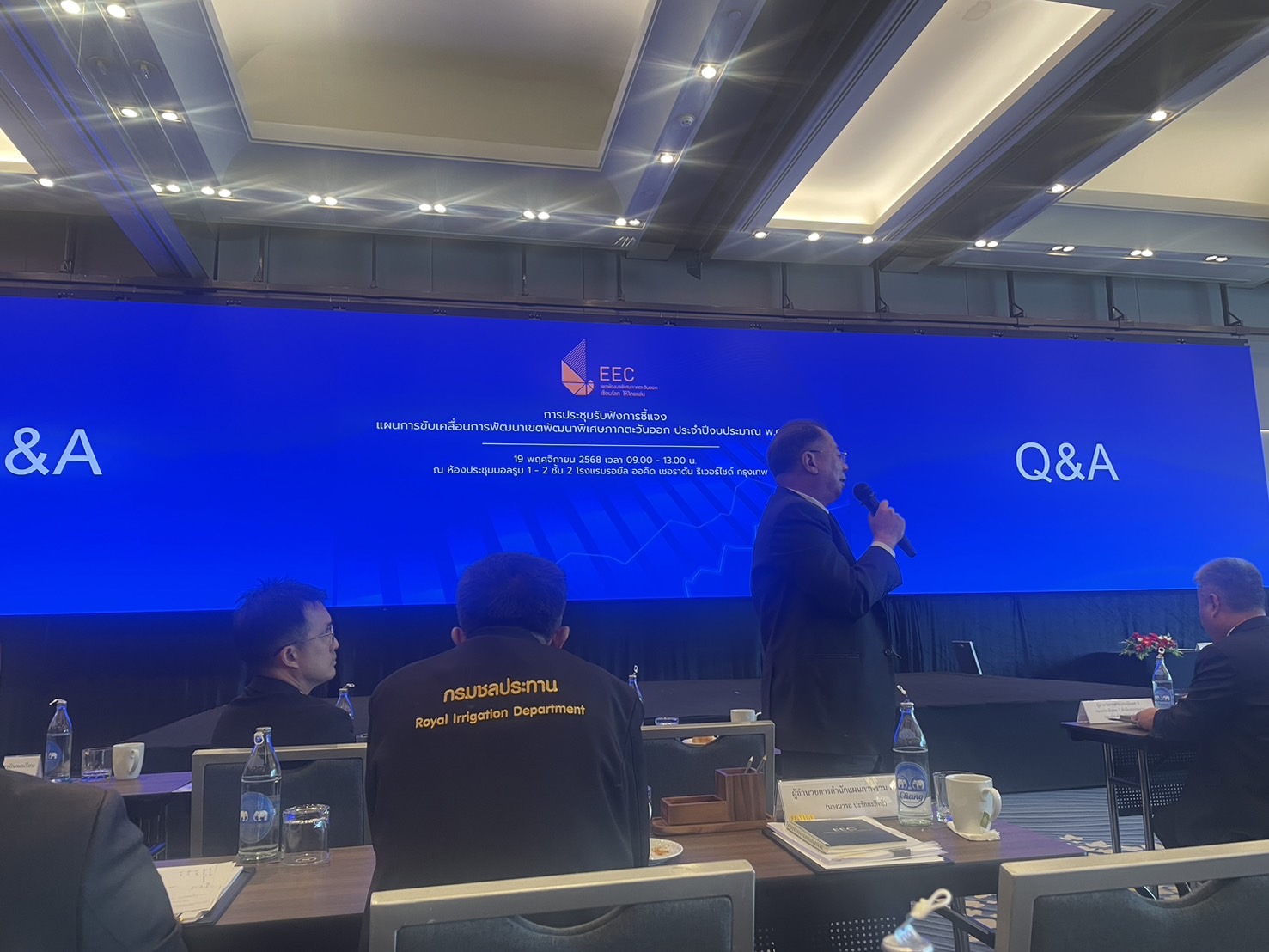 วันที่ 19 พฤศจิกายน 2568 สำนักงานทรัพยากรน้ำที่ 6 โดยส่วนพัฒนาและฟื้นฟูแหล่งน้ำ นำโดยนายพิเชฐ เตียรวัฒนศิริ วิศวกรโยธาชำนาญการ รักษาการในตำแหน่งผู้อำนวยการส่วนพัฒนาและฟื้นฟูแหล่งน้ำ เข้าร่วมประชุมรับฟังการชี้แจงแผนการขับเคลื่อนการพัฒนาเขตพื้นที่พิเศษภาคตะวันออก ประจำปีงบประมาณ 2570 เพื่อเตรียมความพร้อมในการจัดทำโครงการและงบประมาณสำหรับขับเคลื่อนการพัฒนาพื้นที่EEC ตามแผนภาพรวมเพื่อพัฒนาเขตพัฒนาพิเศษภาคตะวันออก เพื่อให้เกิดผลสัมฤทธิ์ที่เป็นรูปธรรมอย่างต่อเนื่อง ณ ห้องประชุมบอลรูม 1-2 ชั้น 2 โรงแรมรอยัล ออคิด เซอราตัน ริเวอร์ไซด์ กรุงเทพ