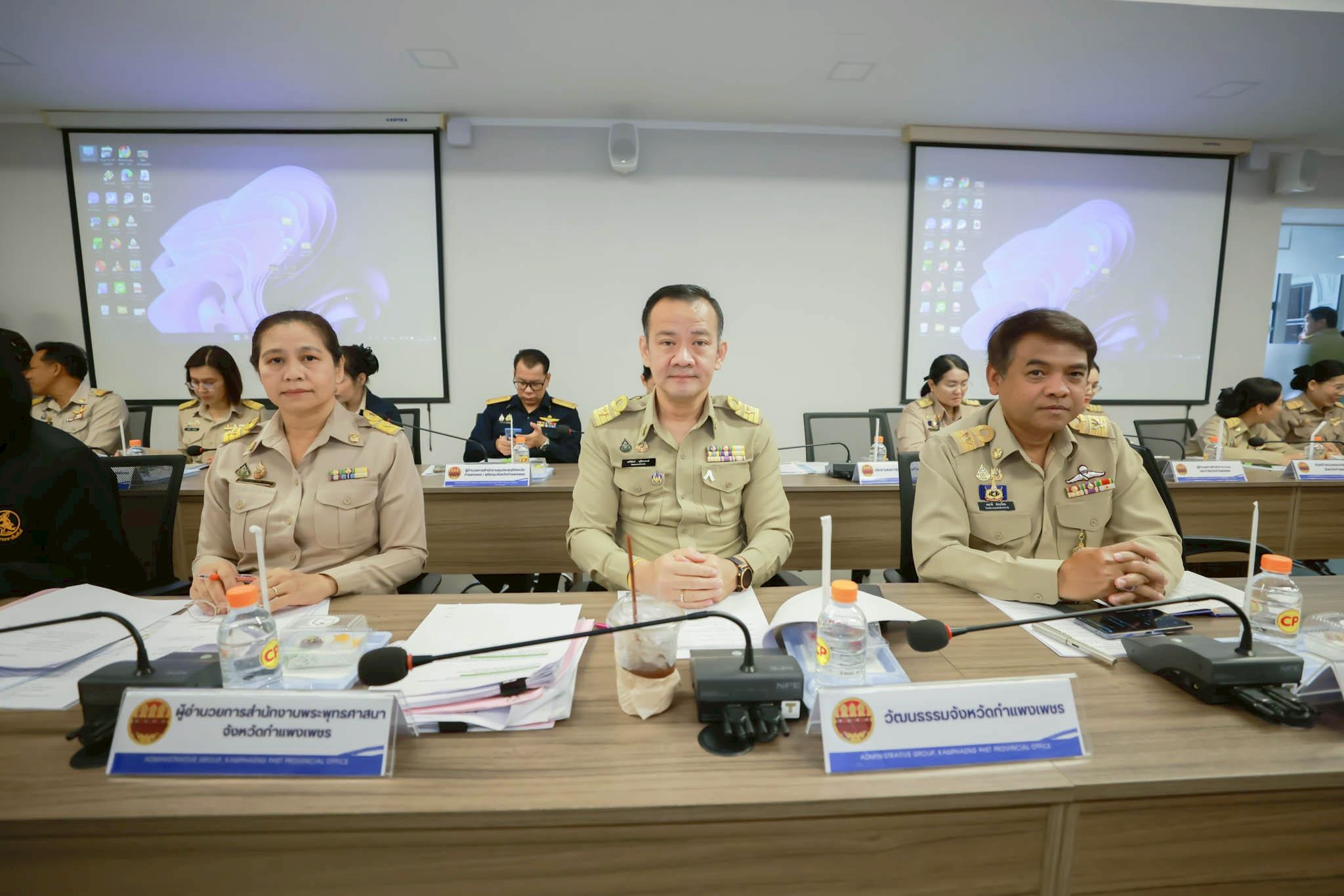 ในที่ประชุม ก่อนเข้าสู่วาระการประชุม ผู้ว่าราชการจังหวัดกำแพงเพชร (ประธานในที่ประชุม) อ่านสารนายกรัฐมนตรี เนื่องใน “วันโลกรำลึก ถึงผู้สูญเสียจากอุบัติเหตุทางถนน” ประจำปี 2568 นำผู้เข้าร่วมประชุมร่วมกิจกรรมเชิงสัญลักษณ์ โดยการติดเข็มกลัดริบบิ้นขาว (สัญลักษณ์ต่อต้านความรุนแรง) และมอบให้กับหัวหน้าส่วนราชการ ก่อนจะมอบโล่รางวัลเชิดชูสถานประกอบการที่ผ่านหลักเกณฑ์การประเมินตามหลักธรรมาภิบาลสิ่งแวดล้อม ประจำปีงบประมาณ พ.ศ. 2568 จำนวน 2 โรงงาน และมอบใบประกาศเกียรติคุณให้บุคลากรฝ่ายปกครองที่ปฏิบัติหน้าที่จนได้รับการรับรองมาตรฐานการให้บริการของศูนย์ราชการสะดวก (GECC) ประจำปีพ.ศ.2568 จำนวน 11 ราย ก่อนจะนำผู้บริหารพร้อมด้วยหัวหน้าส่วนราชการ เข้าสู่ระเบียบวาระการประชุมตามลำดับต่อไป