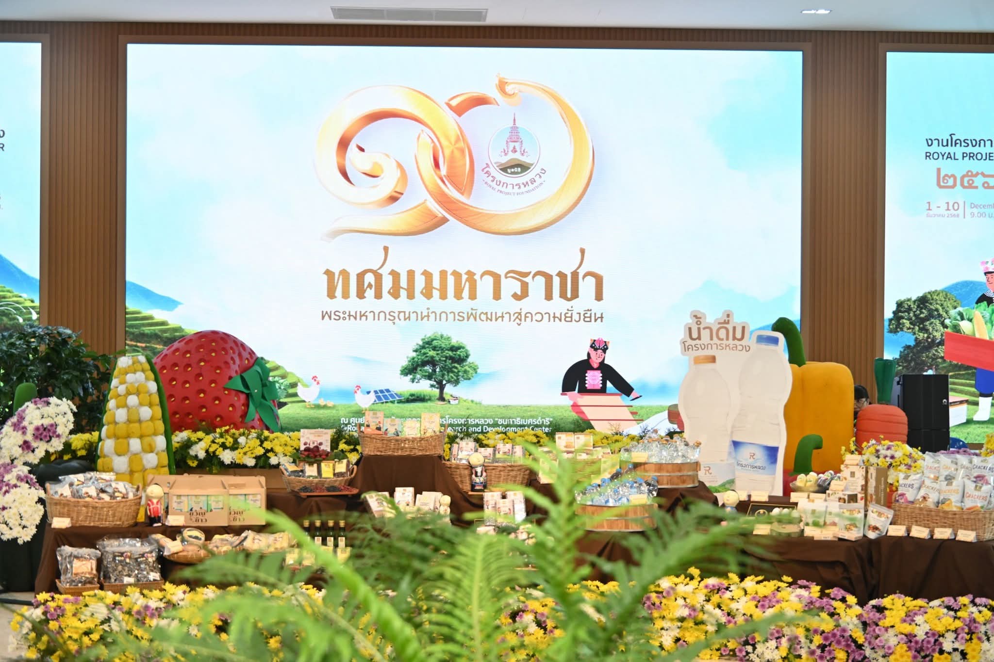 วันนี้ (๑ ธันวาคม ๒๕๖๘) เวลา ๑๘.๓๐ น. พระบาทสมเด็จพระเจ้าอยู่หัว และสมเด็จพระนางเจ้าฯ พระบรมราชินี เสด็จพระราชดำเนินทรงเปิด “อาคารเรียนรู้เฉลิมพระเกียรติ ๗๒ พรรษา” และงาน “โครงการหลวง ๒๕๖๘” เพื่อเฉลิมพระเกียรติพระบาทสมเด็จพระเจ้าอยู่หัว เนื่องในโอกาสพระราชพิธีมหามงคลเฉลิมพระชนมพรรษา ๖ รอบ ๒๘ กรกฎาคม ๒๕๖๗ และสนองพระราชปณิธาน สืบสาน รักษา และต่อยอด พระราชปณิธานของพระบาทสมเด็จพระบรมชนกาธิเบศร มหาภูมิพลอดุลยเดชมหาราช บรมนาถบพิตร ที่ทรงก่อตั้งมูลนิธิโครงการหลวง โดยพระบาทสมเด็จพระเจ้าอยู่หัวทรงพระกรุณาโปรดเกล้าฯ พระราชทานชื่ออาคารสถาบันการเรียนรู้มูลนิธิโครงการหลวงแห่งนี้ ภายในพิธีเปิดงานฯ พระบาทสมเด็จพระเจ้าอยู่หัว และสมเด็จพระนางเจ้าฯ พระบรมราชินี ทรงทอดพระเนตรการแสดงประกอบดนตรี จากนั้นเสด็จไปยังอาคารเรียนรู้เฉลิมพระเกียรติ ๗๒ พรรษา ทรงทอดพระเนตรนิทรรศการ, ซูเปอร์มาร์เก็ตผลิตผลจากโครงการหลวง จากนั้นเสด็จไปยังห้องประทับรับรอง (ห้องราชภักดิ์) เพื่อทรงลงพระปรมาภิไธย และพระนามาภิไธย ในสมุดที่ระลึก โดยมี ดร. ชญานันทร์ ภักดีจิตต์ ปลัดกระทรวงทรัพยากรธรรมชาติและสิ่งแวดล้อม พร้อมด้วยคณะผู้บริหารกระทรวง และนายธีระชุณ บุญสิทธิ์ อธิบดีกรมทรัพยากรน้ำ ร่วมเฝ้ารับเสด็จฯ ณ ศูนย์วิจัยและพัฒนาการเกษตรโครงการหลวง ชนกาธิเบศรดำริ อ.เมืองเชียงใหม่ จ.เชียงใหม่ ซึ่งมีกำหนดจัดงาน "โครงการหลวง ๒๕๖๘" ระหว่างวันที่ ๑ - ๑๐ ธ.ค. ๒๕๖๘ เพื่อเฉลิมพระเกียรติพระบาทสมเด็จพระเจ้าอยู่หัว องค์นายกกิตติมศักดิ์มูลนิธิโครงการหลวงเฉลิมพระเกียรติพระนางเจ้าฯ พระบรมราชินี น้อมรำลึกในพระมหากรุณาธิคุณของพระบาทสมเด็จพระบรมชนกาธิเบศร มหาภูมิพลอดุลยเดชมหาราช บรมนาถบพิตร และสมเด็จพระนางเจ้าสิริกิติ์ พระบรมราชินีนาถ พระบรมราชชนนีพันปีหลวง ตลอดจนเผยแพร่ผลการดำเนินงานและความสำเร็จของมูลนิธิโครงการหลวง และส่งเสริมการจำหน่ายผลิตผลและผลิตภัณฑ์ของโครงการหลวง โครงการส่วนพระองค์ และหน่วยงานสนับสนุนภายใน