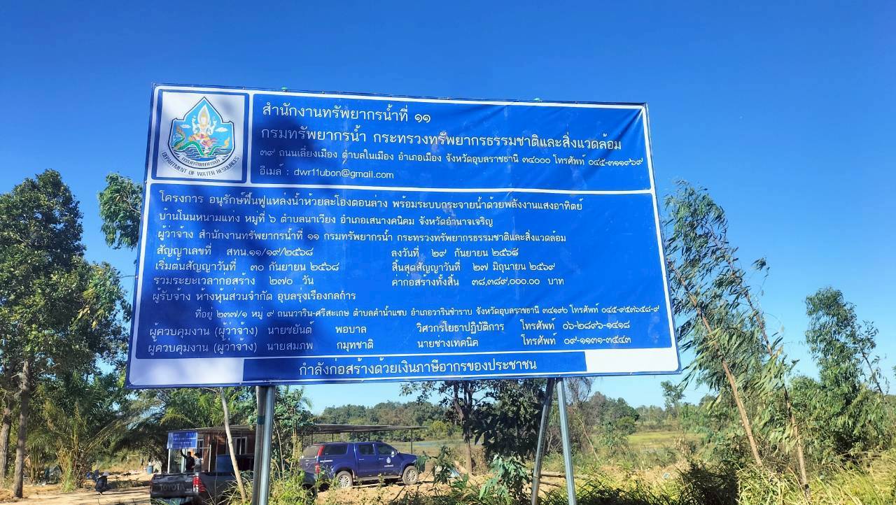 วันที่ 1 ธันวาคม 2568 นายโภคิน ช้ำเกตุ ผู้อำนวยการสำนักงานทรัพยากรน้ำที่ 11 มอบหมายให้ นายปกรณ์ พงษ์เพ็ง ผู้อำนวยการส่วนพัฒนาและฟื้นฟูแหล่งน้ำ และเจ้าหน้าที่ ร่วมลงพื้นที่เฝ้าระวังการดำเนินโครงการ ภายใต้แผนการขับเคลื่อนเศรษฐกิจภายใต้กรอบวงเงิน 157,000 ล้านบาท ภายใต้งบประมาณรายจ่าย ประจำปีงบประมาณ พ.ศ.2568 งบกลาง รายการค่าใช้จ่ายเพื่อการกระตุ้นเศรษฐกิจและ สร้างความเข้มแข็งของระบบเศรษฐกิจ ดำเนินการสังเกตการณ์และเฝ้าระวัง พร้อมทั้ง รายงานผลการดำเนินการติดตามและเฝ้าระวัง เพื่อประโยชน์ในการป้องปรามการทุจริต ในเขตพื้นที่ “โครงการอนุรักษ์ฟื้นฟูแหล่งน้ำห้วยละโองตอนล่าง พร้อมระบบกระจายน้ำ ด้วยพลังงานแสงอาทิตย์ หมู่ที่ 6 บ้านโนนหนามแท่ง ตำบลนาเวียง อำเภอเสนางคนิคม จังหวัดอำนาจเจริญ”