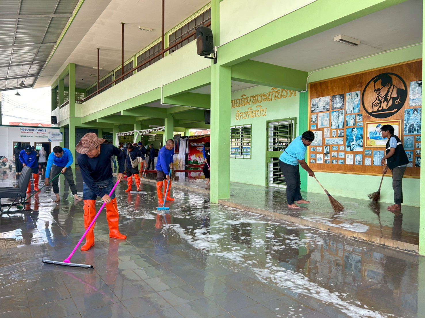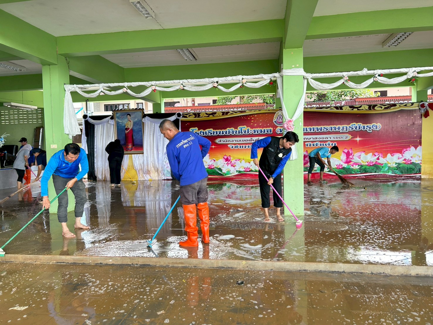 และได้ร่วมกับ สำนักงานทรัพยากรน้ำที่ 11 นำรถบรรทุกน้ำ 1 คัน ดำเนินการทำความสะอาดโรงอาหาร ณ โรงเรียนบ้านโปะหมอ (พรหมเทพราษฎร์บำรุง) ตำบลบ้านพรุ อำเภอหาดใหญ่ จังหวัดสงขลา มีผู้ได้รับประโยชน์จำนวน 608 คน ทั้งนี้เป็นการปฏิบัติงานตามข้อสั่งการของ นายสุชาติ ชมกลิ่น รองนายกฯ และรัฐมนตรีว่าการกระทรวงทรัพยากรธรรมชาติและสิ่งแวดล้อม