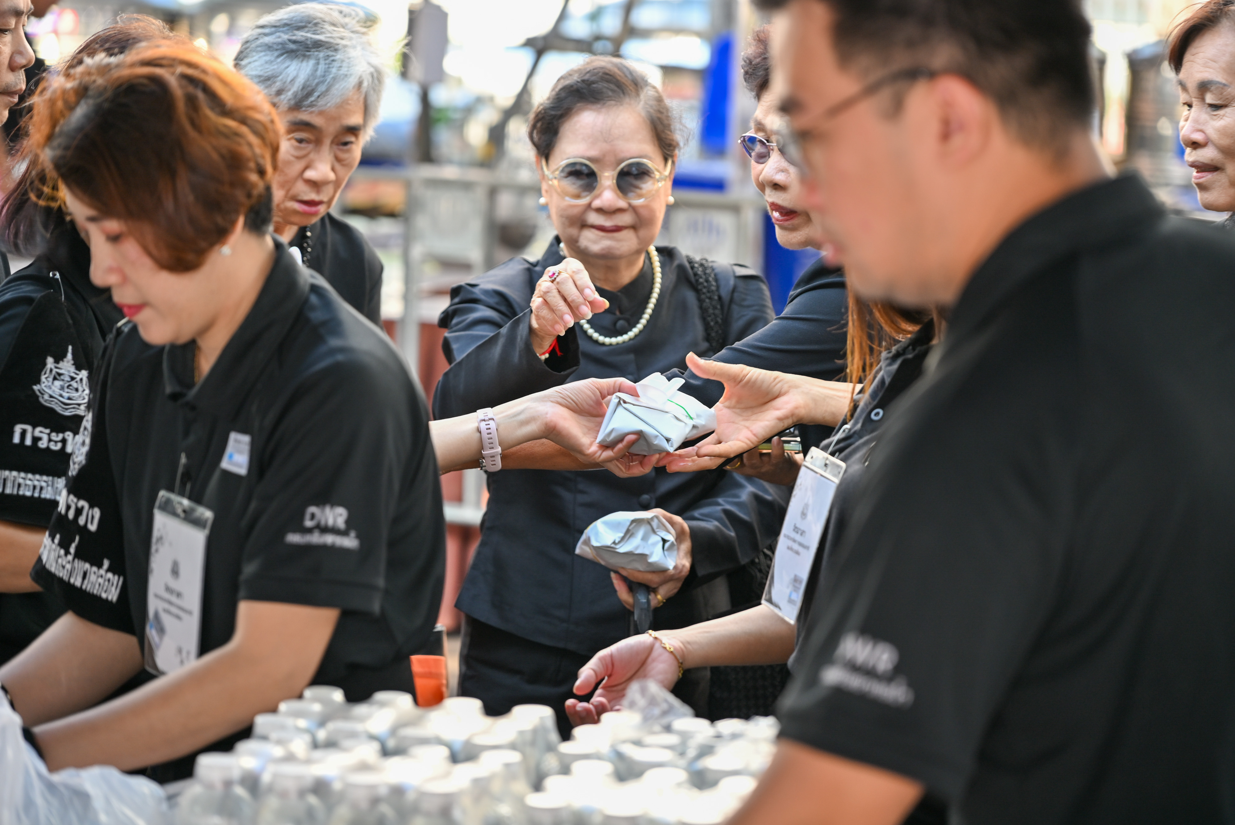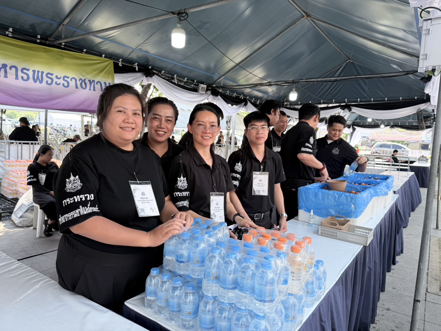 วันนี้ (2 ธันวาคม 68) กระทรวงทรัพยากรธรรมชาติและสิ่งแวดล้อมมอบหมาย กรมทรัพยากรน้ำ ร่วมดำเนินกิจกรรมจิตอาสา ทส. “ร่วมแจกน้ำและอาหารกับโรงครัวพระราชทาน" ณ บริเวณท้องสนามหลวง โดยแบ่งเป็น 3 ช่วงเวลา รอบที่ 1 เวลา 08.00-11.00 น. โดยนายกิตติ จันทร์ส่อง เลขานุการกรม และนายวรวิทย์ ชัยวิมลกุล ผู้อำนวยการศูนย์เทคโนโลยีสารสนเทศและการสื่อสาร และเจ้าหน้าที่ รอบที่ 2 12.00-15.00 น. เจ้าหน้าที่กองวิจัย พัฒนาและอุทกวิทยา และรอบที่ 3 เจ้าหน้าที่กองพัฒนาแหล่งน้ำ 2 ทั้งนี้กรมทรัพยากรน้ำได้มอบน้ำดื่มบรรจุขวดไว้ใช้ในกิจกรรมจิตอาสา และในวันนี้มีประชาชนจากทั่วสารทิศหลั่งไหลเดินทางเข้าถวายสักการะพระบรมศพ สมเด็จพระนางเจ้าสิริกิติ์ พระบรมราชินีนาถ พระบรมราชชนนีพันปีหลวง ณ พระที่นั่งดุสิตมหาปราสาท ในพระบรมมหาราชวัง ด้วยความอาลัยรักและสำนึกในพระมหากรุณาธิคุณอันหาที่สุดมิได้ โดย ตลอดเส้นทางเข้าสู่พระบรมมหาราชวัง เต็มไปด้วยประชาชนที่อยู่ในชุดไว้ทุกข์สีดำ ท่ามกลางบรรยากาศที่เปี่ยมด้วยความอาลัย ซึ่ง เจ้าหน้าที่กรมทรัพยากรน้ำเข้าร่วมปฏิบัติงานจิตอาสาด้วยความเข้มแข็ง ทั้งนี้ กรมทรัพยากรน้ำได้นำริบบิ้นสีดำที่ได้จัดทำไว้ แจกจ่ายแก่ประชาชนที่เดินทางเเข้าถวายสักการะพระบรมศพฯ ในครั้งนี้ด้วย