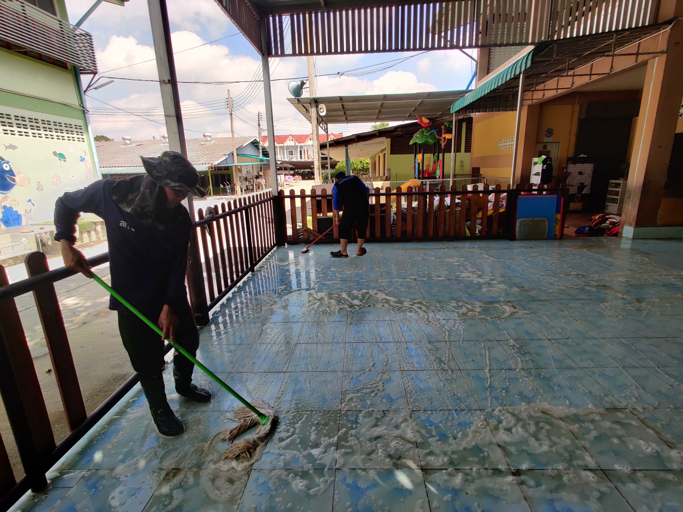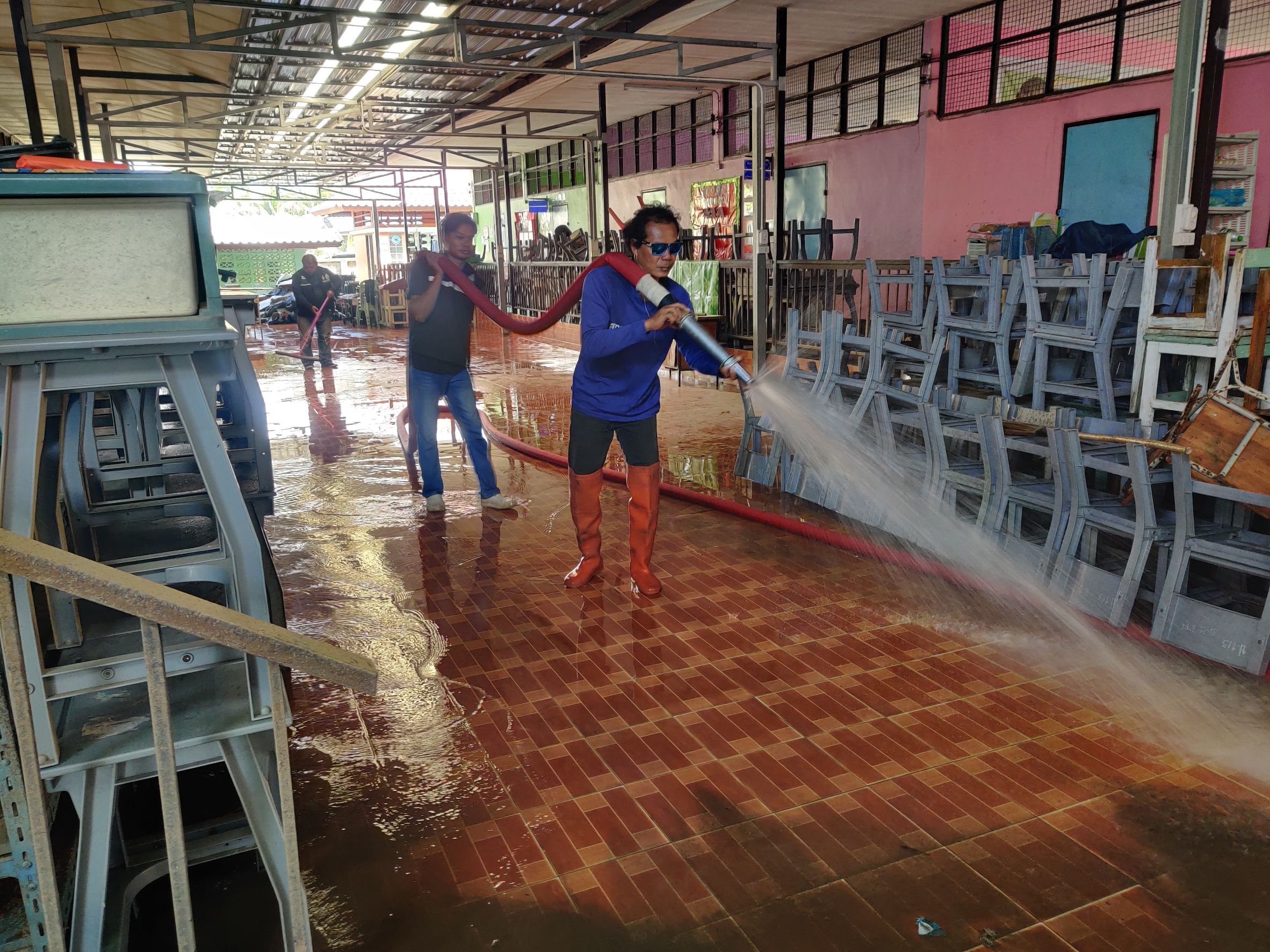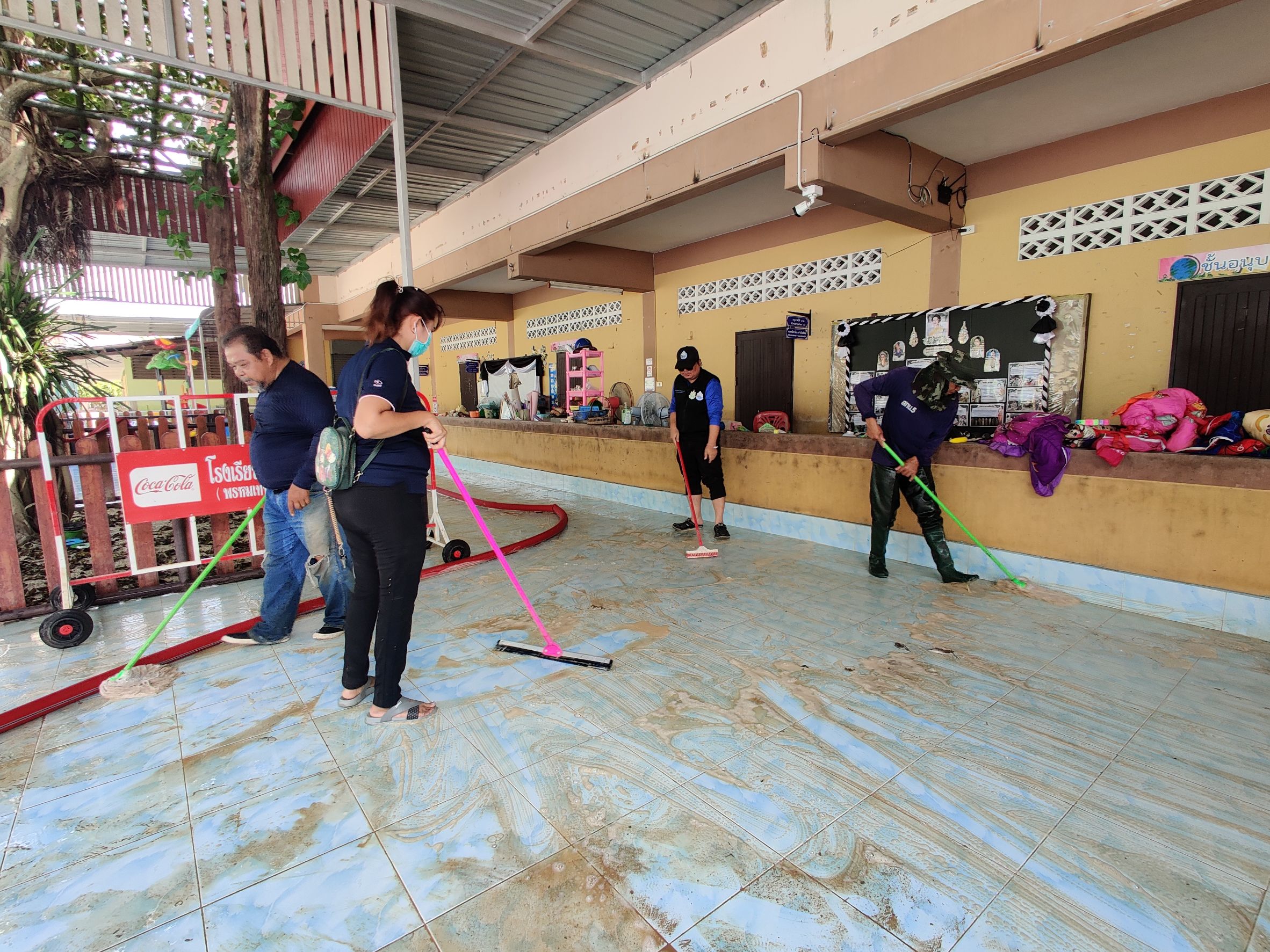 และได้ร่วมกับ สำนักงานทรัพยากรน้ำที่ 8 นำรถบรรทุกน้ำ 6000 ลิตร จำนวน 1 คัน ดำเนินการฉีดล้างทำความสะอาดพื้นที่อาคาร ณ โรงเรียนบ้านโปะหมอ (พรหมเทพราษฎร์บำรุง) ตำบลบ้านพรุ อำเภอหาดใหญ่ จังหวัดสงขลา มีผู้ได้รับประโยชน์จำนวน 608 คน ทั้งนี้เป็นการปฏิบัติงานตามข้อสั่งการของ นายสุชาติ ชมกลิ่น รองนายกฯ และรัฐมนตรีว่าการกระทรวงทรัพยากรธรรมชาติและสิ่งแวดล้อม