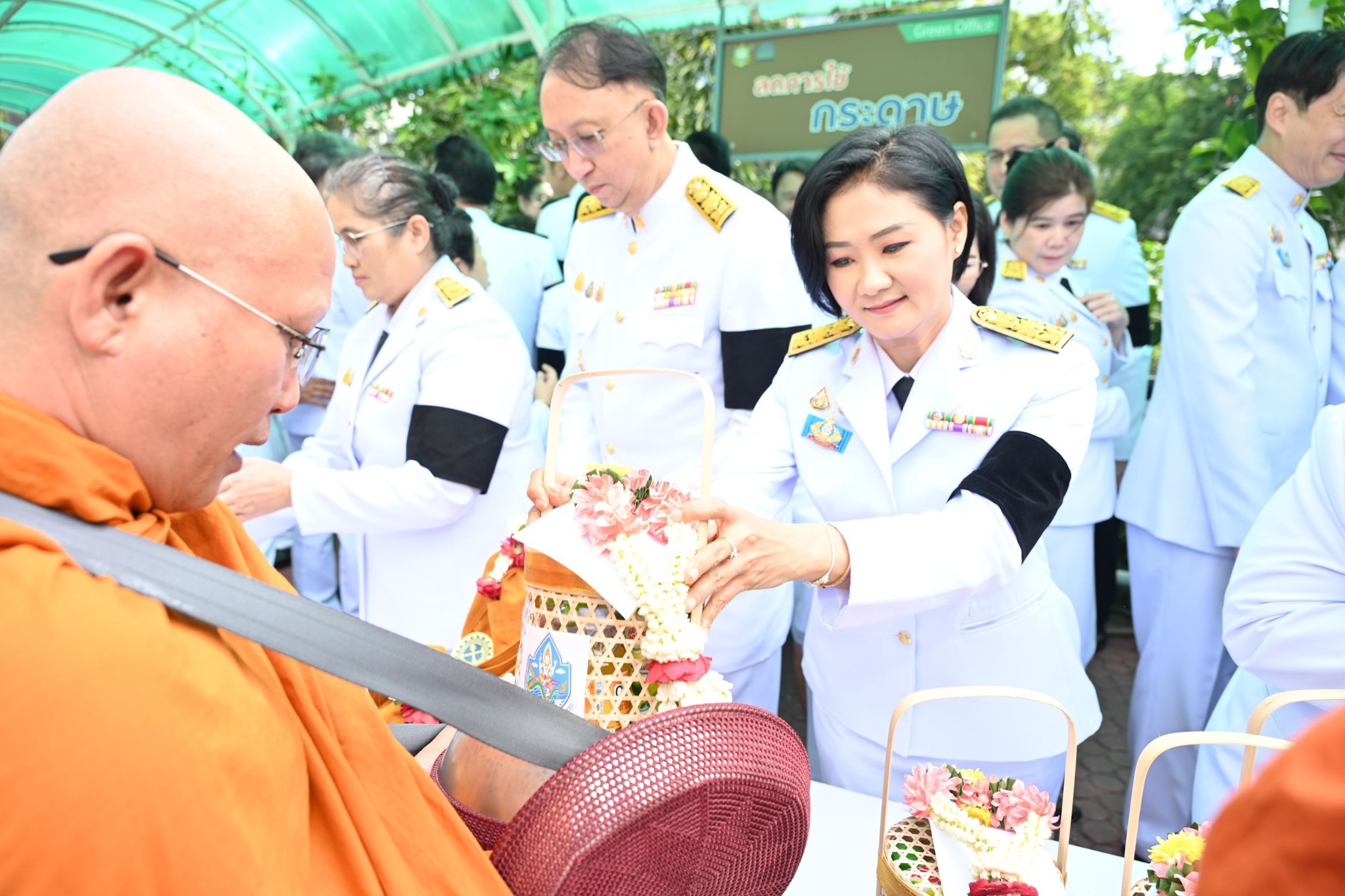 วันนี้ (4 ธันวาคม 2568) ดร.ชญานันท์ ภักดีจิตต์ ปลัดกระทรวงทรัพยากรธรรมชาติและสิ่งแวดล้อม นำคณะผู้บริหารกระทรวงฯ นายธีระชุณ บุญสิทธิ์ อธิบดีกรมทรัพยากรน้ำ และผู้บริหารกรมฯ เข้าร่วมพิธีเจริญพระพุทธมนต์และพิธีตักบาตรพระสงฆ์ เนื่องในวันคล้ายวันพระบรมราชสมภพ พระบาทสมเด็จพระบรมชนกาธิเบศร มหาภูมิพลอดุลยเดชมหาราช บรมนาถบพิตร 5 ธันวาคม ซึ่งเป็นวันชาติ และวันพ่อแห่งชาติ ของประเทศไทย เพื่อถวายเป็นพระราชกุศลและน้อมสำนึกในพระมหากรุณาธิคุณอันหาที่สุดมิได้ ณ ห้องประชุม ศักดิ์สิทธิ์ ตรีเดช และบริเวณหน้าอาคารกรมควบคุมมลพิษ