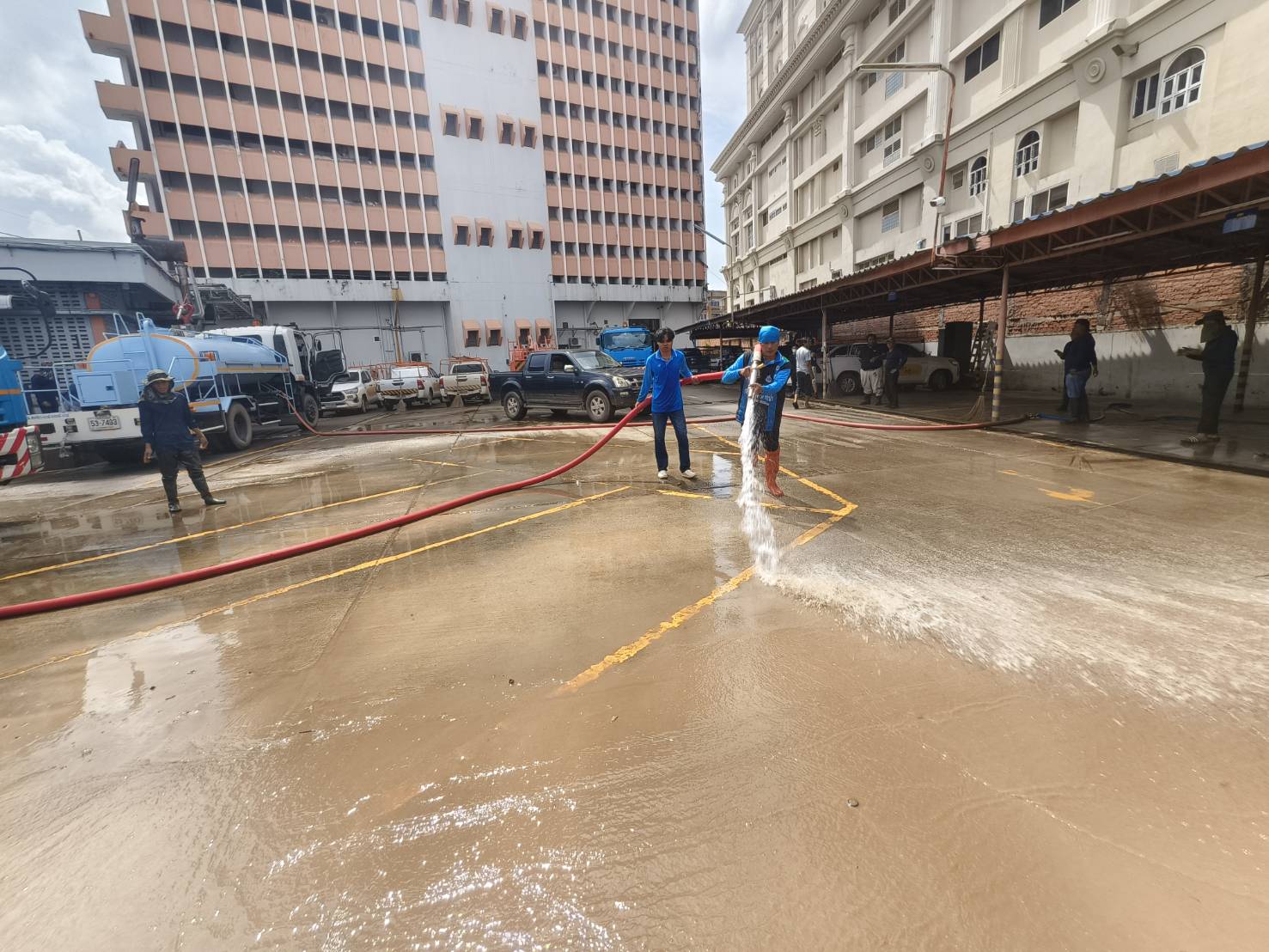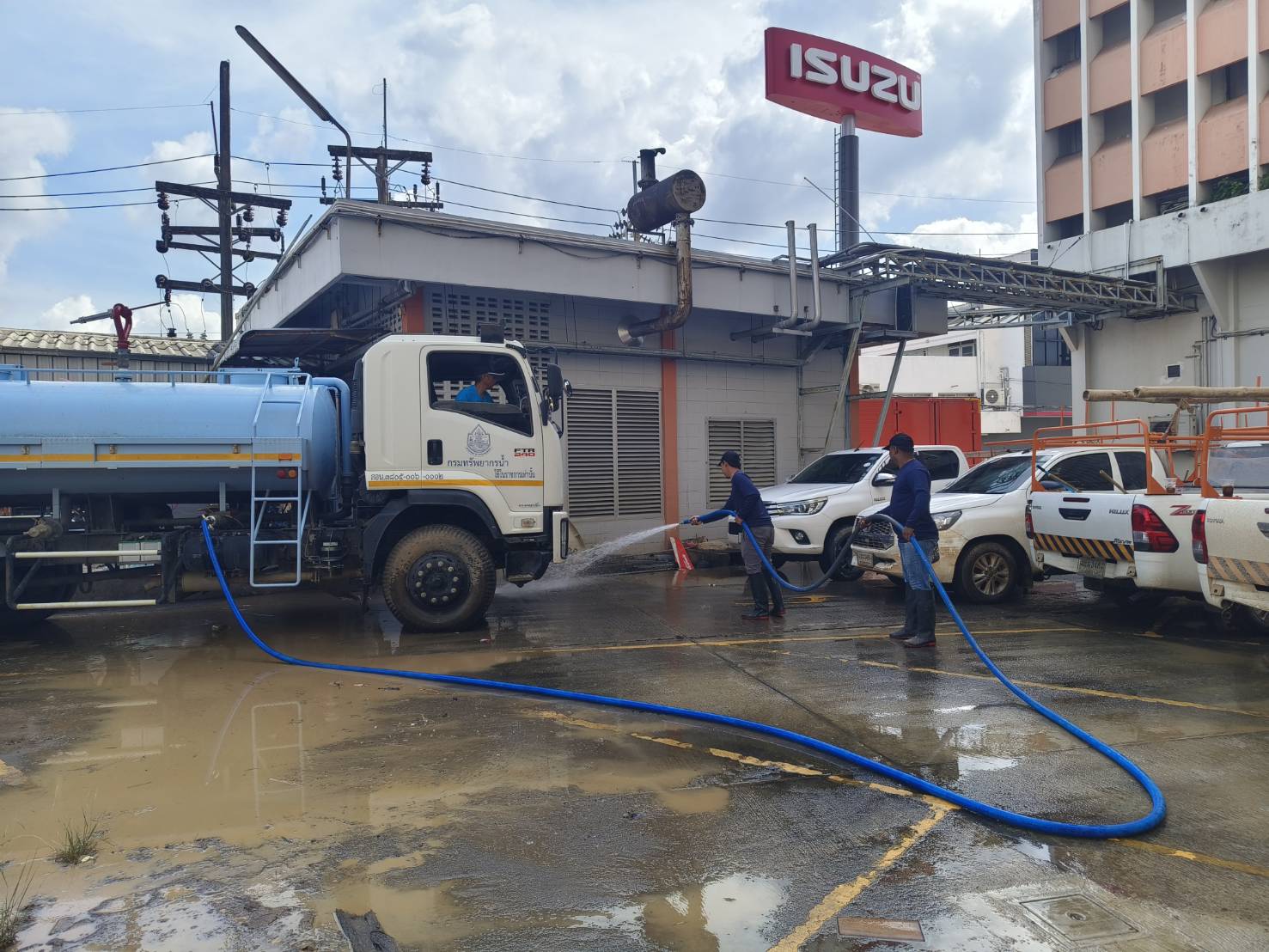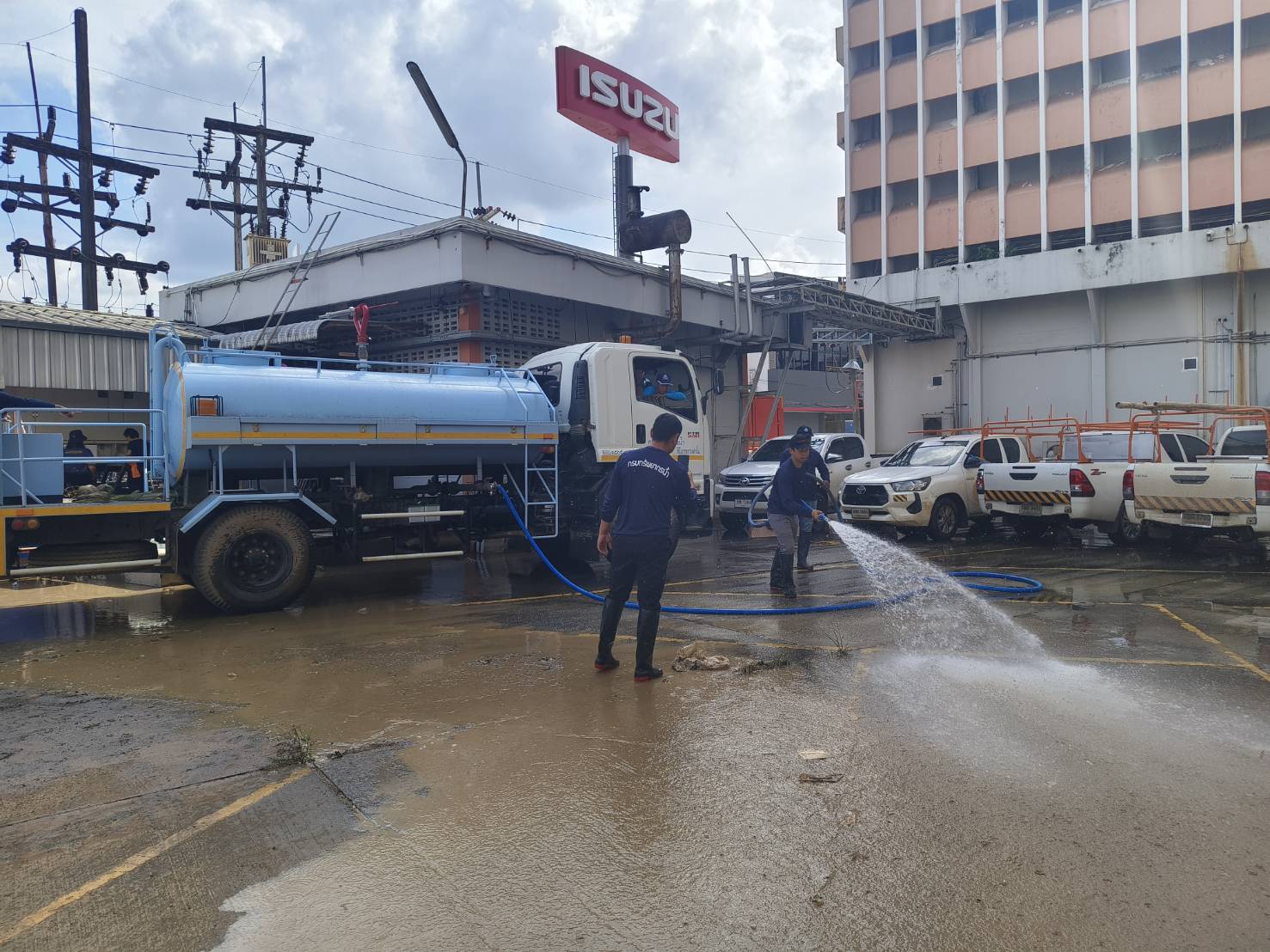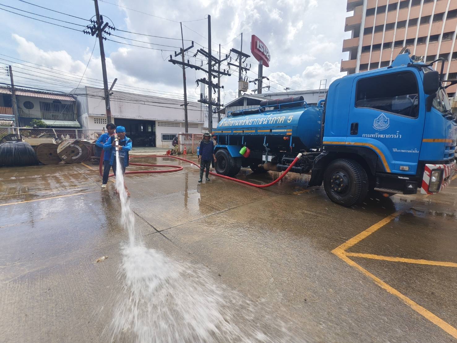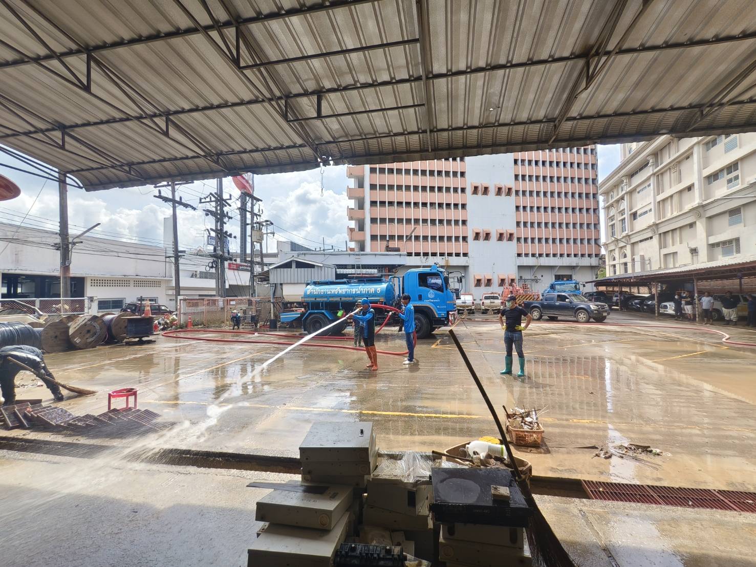 วันที่ 8 ธันวาคม 2568 นายอนันต์ โพธิ์พันธุ์ ผู้อำนวยการสำนักงานทรัพยากรน้ำที่ 7 มอบหมายให้ส่วนเครื่องกล และส่วนอนุรักษ์ทรัพยากรน้ำที่ 2 สุพรรณบุรี ร่วมกับสำนักงานทรัพยากรน้ำที่ 5 สำนักงานทรัพยากรน้ำที่ 8 และสำนักงานทรัพยากรน้ำที่ 10 นำรถบรรทุกน้ำ จำนวน 3 คัน ลงพื้นที่ช่วยเหลือ และฟื้นฟูพื้นที่ประสบอุทกภัยในอำเภอหาดใหญ่ โดยเจ้าหน้าที่ได้ลงพื้นที่ฉีดล้างทำความสะอาด และเก็บโคลนตะกอน เพื่อเร่งบรรเทาความเดือดร้อนและฟื้นฟูคุณภาพชีวิตของประชาชนให้กลับสู่ภาวะปกติโดยเร็ว ตามนโยบายของนายสุชาติ ชมกลิ่น รองนายกรัฐมนตรี และรัฐมนตรีว่าการกระทรวงทรัพยากรธรรมชาติและสิ่งแวดล้อม ในเขตพื้นที่บริษัท โทรคมนาคมแห่งชาติ จํากัด (มหาชน) สาขาหาดใหญ่ 2 ถนนเพชรเกษม อำเภอหาดใหญ่ จังหวัดสงขลา