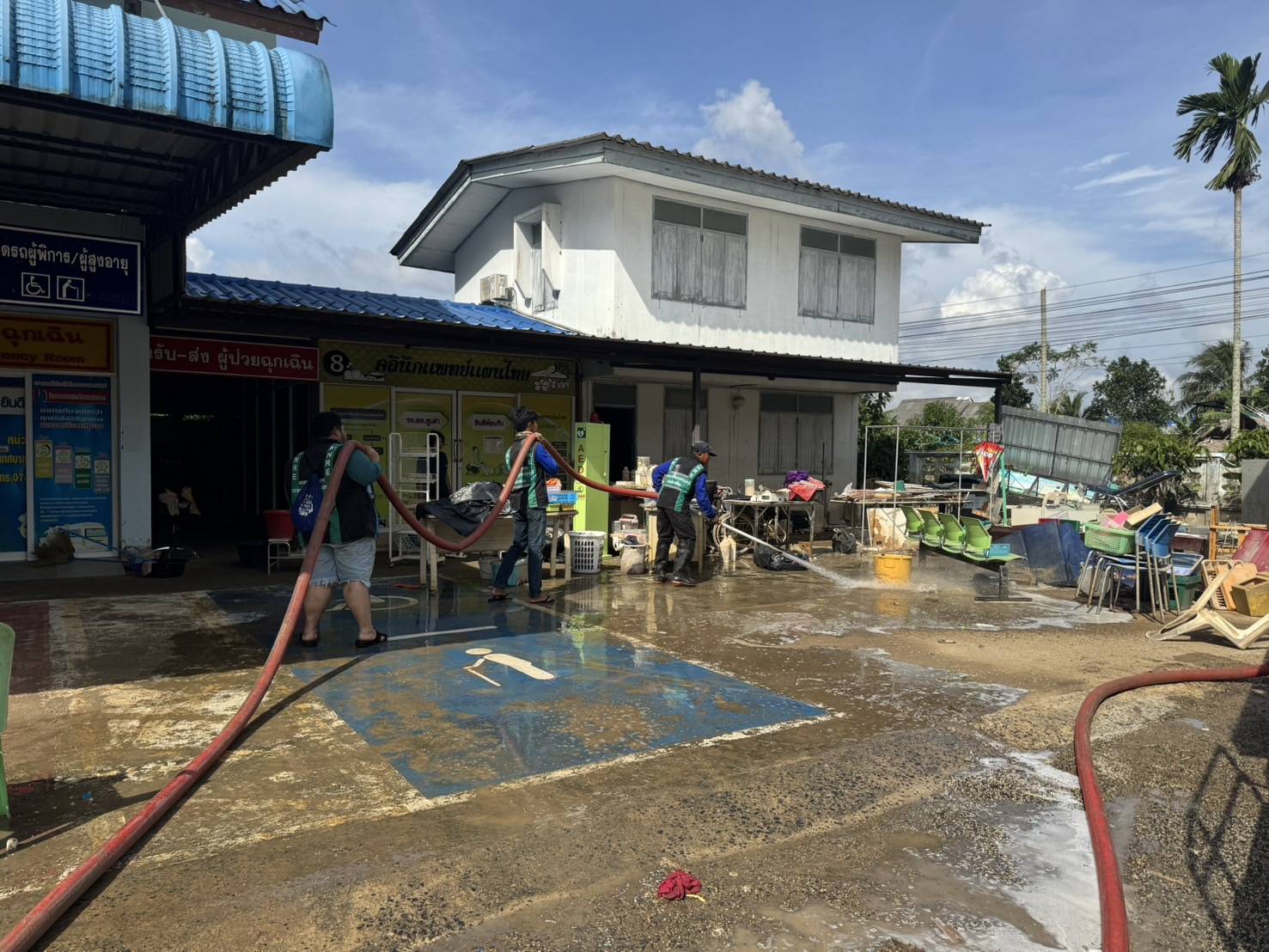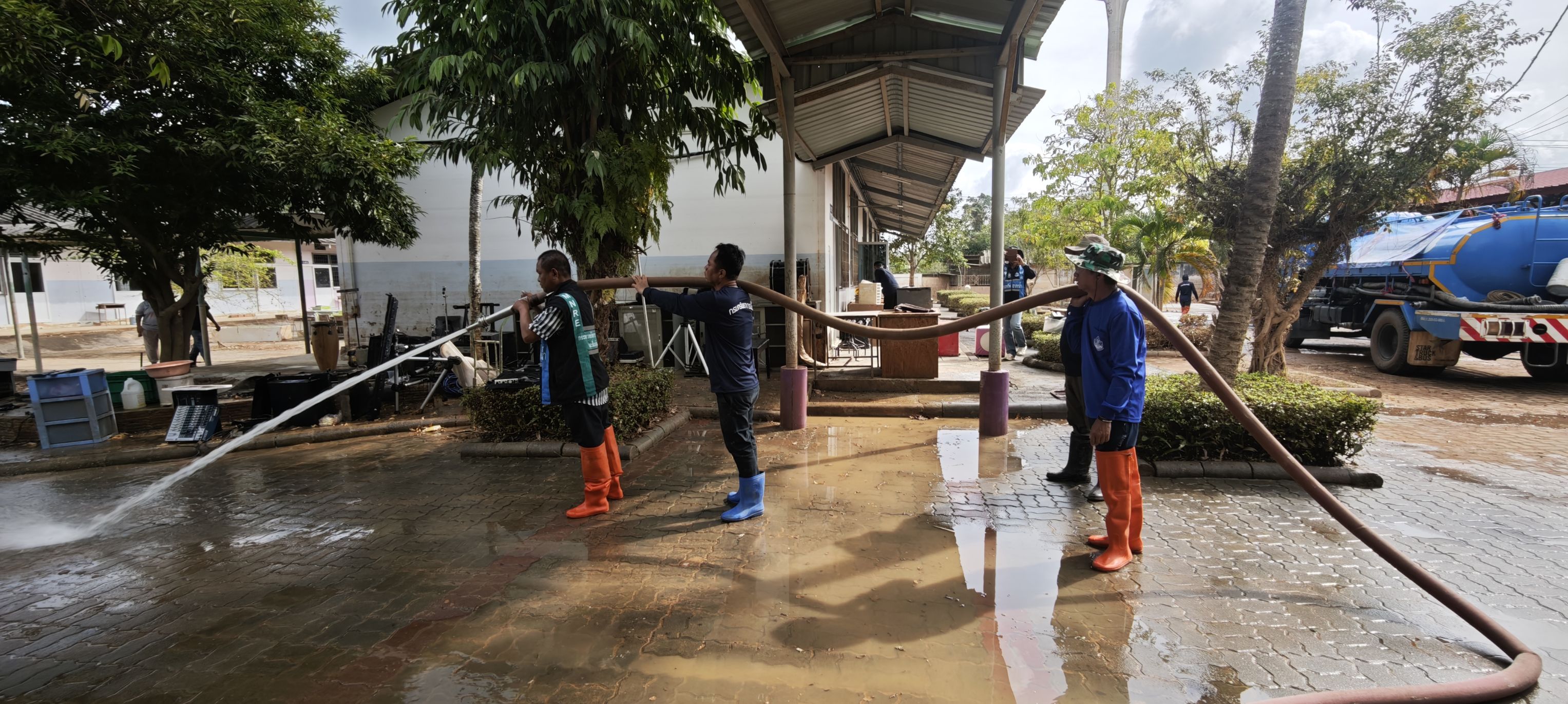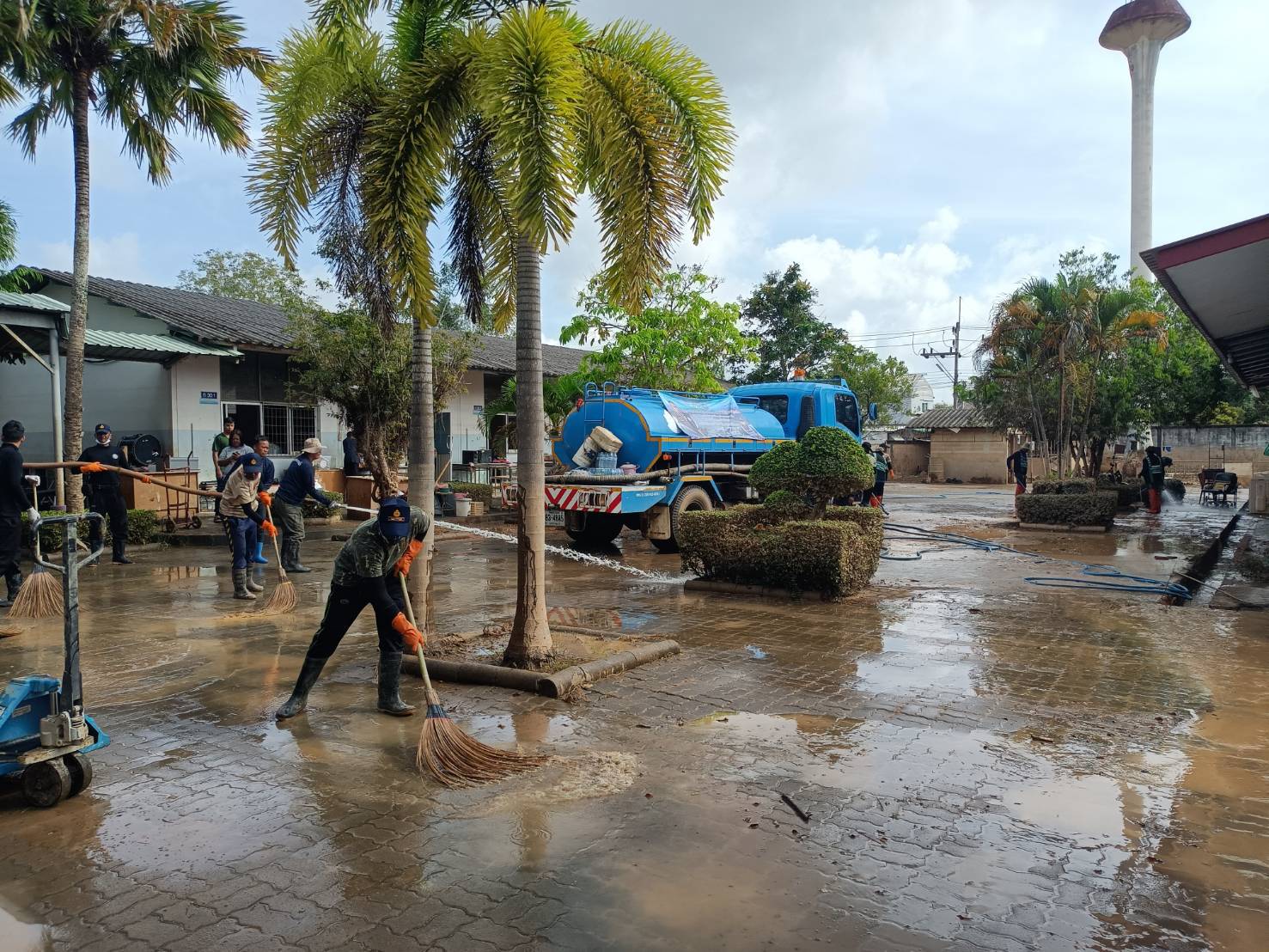 วันที่ 8 ธันวาคม 2568 สำนักงานทรัพยากรน้ำที่ 11 นำเจ้าหน้าที่และรถบรรทุกน้ำ ร่วมกับสำนักงานทรัพยากรน้ำที่ 3 ดำเนินการทำความสะอาดเพื่อฟื้นฟูอาคารเรียน และถนน โรงเรียนหาดใหญ่วิทยาลัย 2 อำเภอหาดใหญ่ จังหวัดสงขลา และร่วมกับ สำนักงานทรัพยากรน้ำที่ 6 โดยนำรถบรรทุกน้ำ ขนาด 6,000 ลิตร ร่วมทำความสะอาด มัสยิสซีรอตอลมุสตะกีม และโรงพยาบาลส่งเสริมสุขภาพตำบลคูเต่า อำเภอหาดใหญ่ จังหวัดสงขลา ทั้งนี้ เป็นการปฏิบัติงานตามข้อสั่งการของ นายสุชาติ ชมกลิ่น รองนายกฯ และรัฐมนตรีว่าการกระทรวงทรัพยากรธรรมชาติและสิ่งแวดล้อม เพื่อให้ประชาชน กลับมาใช้ชีวิตได้ตามปกติโดยเร็วที่สุด