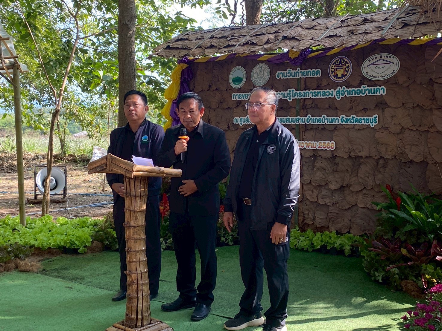 วันที่ 25 ธันวาคม 2568 นายอนันต์ โพธิ์พันธุ์ ผู้อำนวยการสำนักงานทรัพยากรน้ำที่ 7 มอบหมายให้ส่วนอนุรักษ์ทรัพยากรน้ำที่ 1 ราชบุรี ร่วมกับนายจำนอง บุญเลิศฟ้า ประธานกลุ่มวิสาหกิจชุมชนพืชผักและผลไม้ปลอดภัยบ้านคา เข้าร่วมกิจกรรมวันถ่ายทอดการขยายผลองค์ความรู้โครงการหลวงสู่อำเภอบ้านคา เพื่อนำองค์ความรู้ของโครงการหลวงจากพื้นที่สูงมาเป็นต้นแบบให้กับชุมชนในพื้นราบ ณ ศูนย์เรียนรู้การเกษตรรูปแบบโครงการหลวงไร่กำนันเมี้ยง อำเภอบ้านคา จังหวัดราชบุรี ซึ่งการจัดกิจกรรมในครั้งนี้ ผู้เข้าร่วมงานสามารถนำองค์ความรู้ที่ได้รับไปใช้ต่อยอดเป็นการสร้างอาชีพที่มั่นคงให้กับชุมชนในท้องถิ่น และเป็นการแลกเปลี่ยนความรู้ ความชำนาญ ตลอดจนประสบการณ์ทางการเกษตรของคนในชุมชนต่อไป