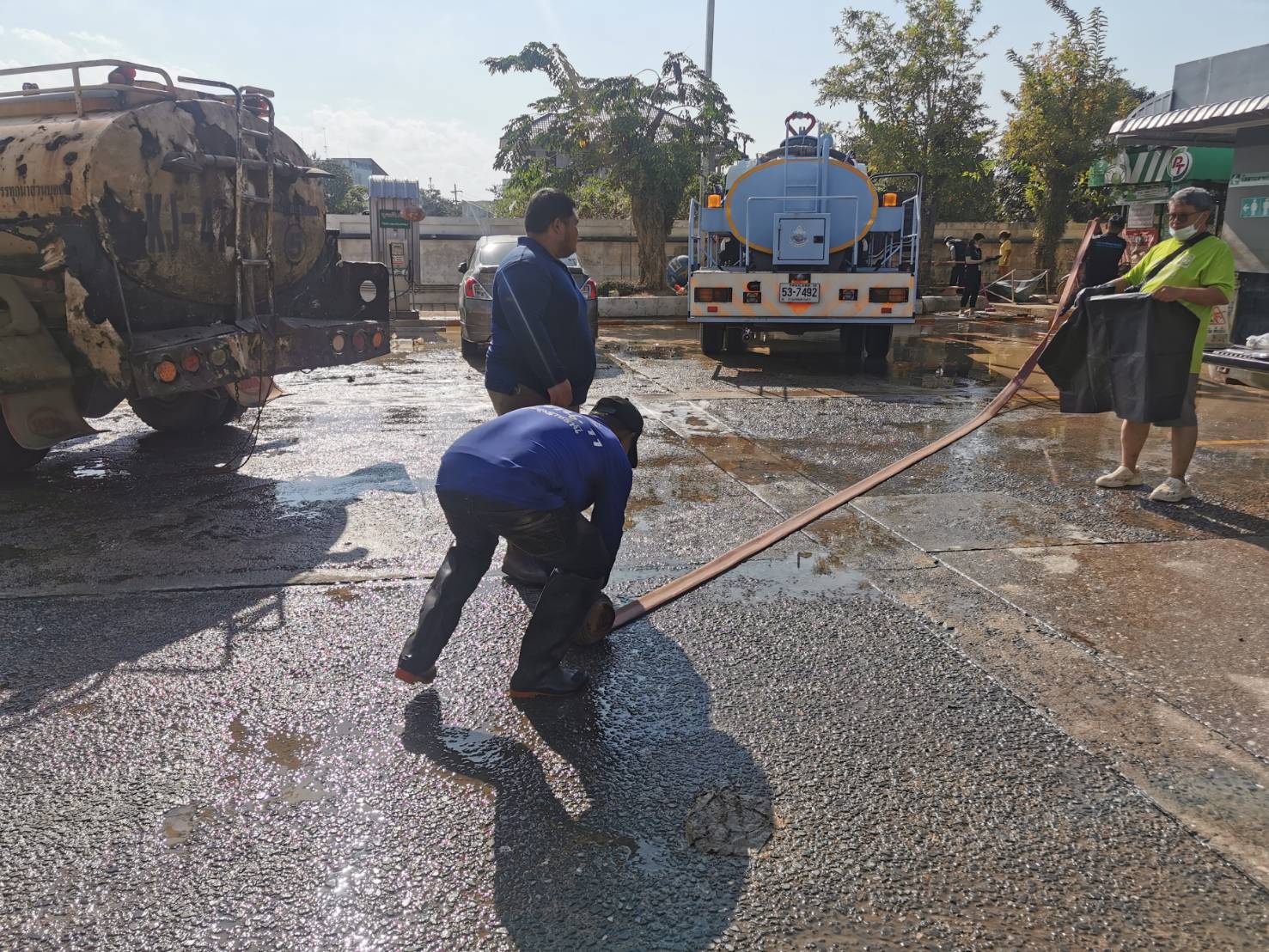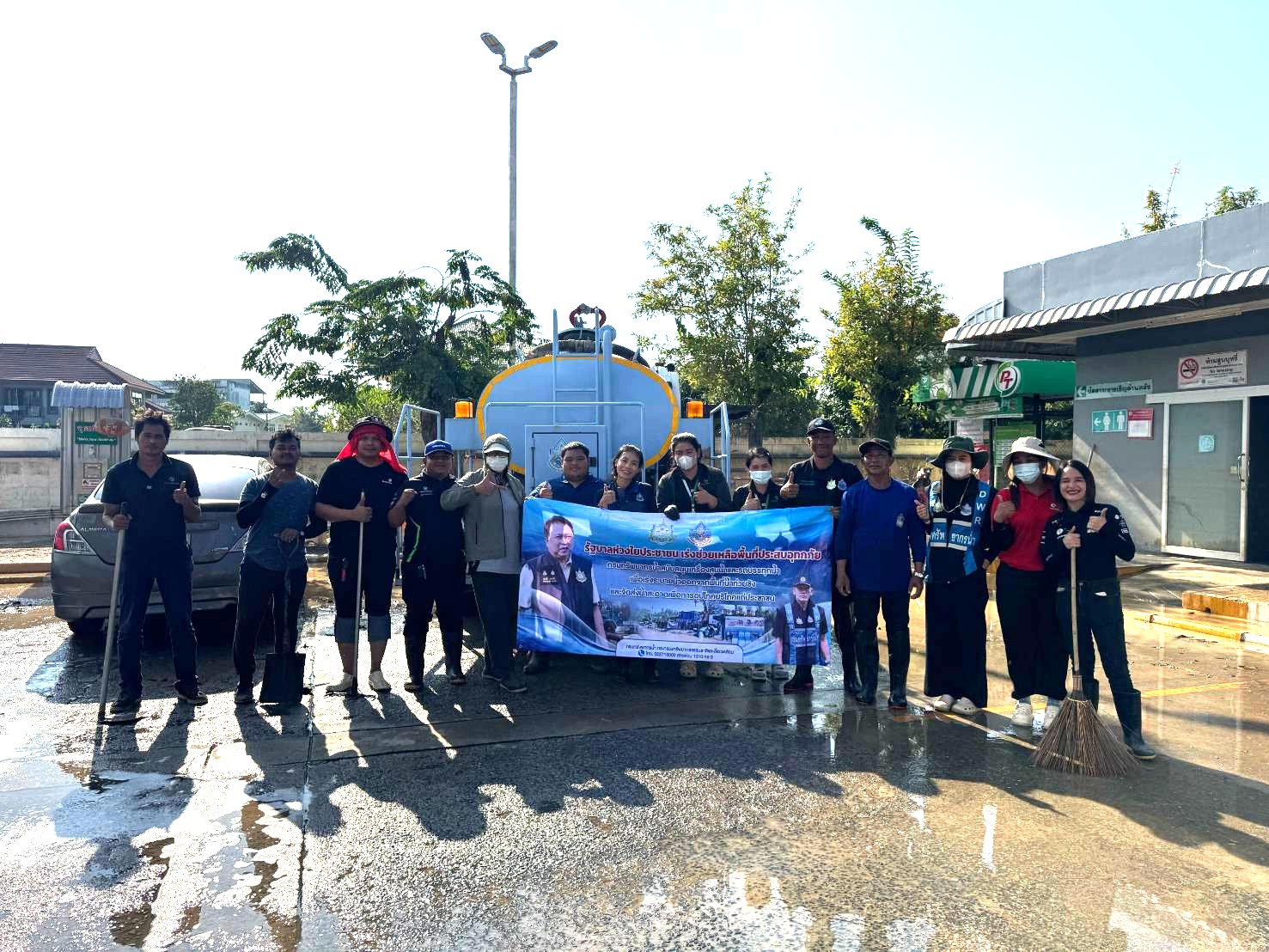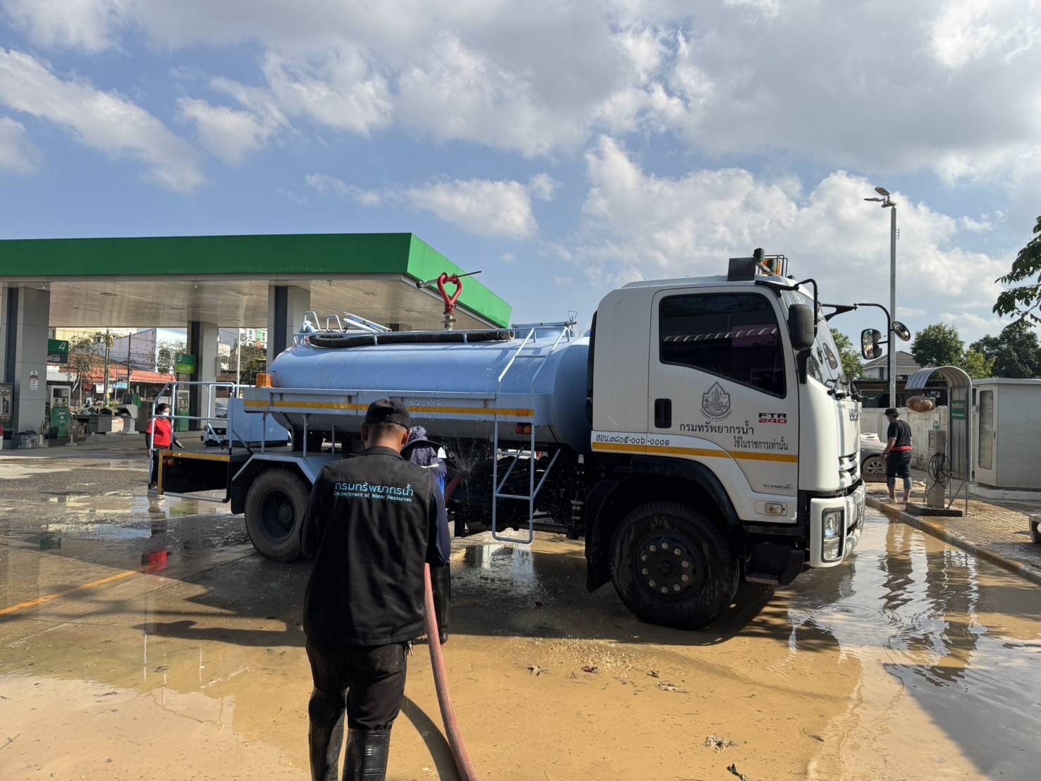 ลิตร เข้าสนับสนุนล้างทำความสะอาด เพื่อฟิ้นฟู บริเวณปั๊มน้ำมัน