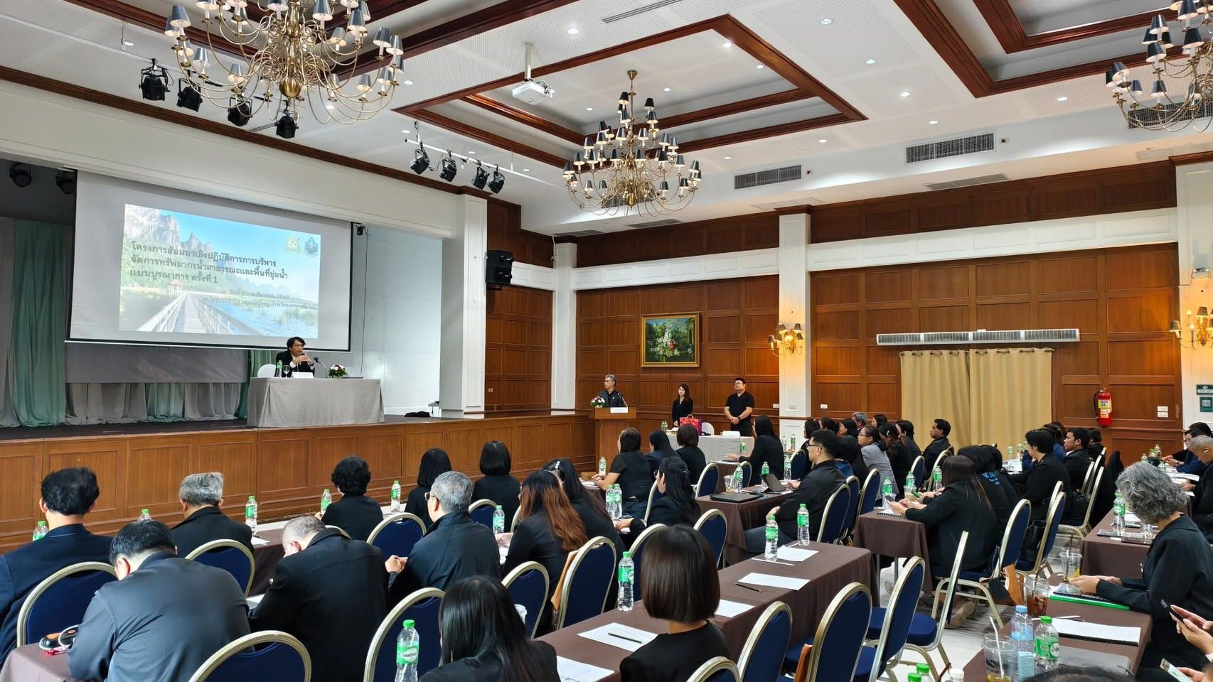 วันที่ 2 ธันวาคม 2568 สำนักงานทรัพยากรน้ำที่ 6 โดยผู้อำนวยการส่วนอนุรักษ์ทรัพยากรน้ำที่ 1-4 พร้อมด้วย เจ้าหน้าที่ที่เกี่ยวข้อง เข้าร่วมโครงการสัมมนาเชิงปฏิบัติการการบริหารจัดการทรัพยากรน้ำสาธารณะและพื้นที่ชุ่มน้ำแบบบูรณาการ ครั้งที่ 1 ระหว่างวันที่ 2-4 ธันวาคม 2568 ณ โรงแรมชาโต เดอ เขาใหญ่ จังหวัดนครราชสีมา โดยมี นายเวสารัช โสภณดิเรกรัตน์ รองอธิบดีกรมทรัพยากรน้ำ เป็นประธานเปิดโครงการฯ ซึ่งมีวัตถุประสงค์เพื่อพัฒนาความรู้และเพิ่มพูนทักษะในการปฏิบัติงานด้านพื้นที่ชุ่มน้ำ รวมถึงเป็นเวทีในการร่วมกันวางแนวทางการบริหารจัดการทรัพยากรน้ำสาธารณะและพื้นที่ชุ่มน้ำ ทั้งนี้ มีกิจกรรมแบ่งกลุ่มระดมความเห็นเกี่ยวกับปัญหาและอุปสรรคในการบริหารจัดการพื้นที่ชุ่มน้ำให้เกิดประสิทธิภาพ