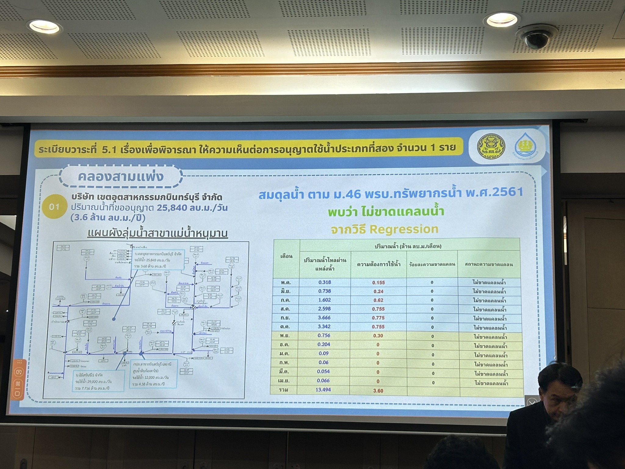 ระเบียบวาระการประชุมที่สำคัญ ได้แก่ รายงานสถานการณ์น้ำในพื้นที่ลุ่มน้ำบางปะกง มาตรการรองรับฤดูแล้ง ปี 2568/2569 การพิจารณากลั่นกรองการใช้น้ำประเภทที่สอง ของกรมทรัพยากรน้ำ จำนวน 1 คำขอ และให้ความเห็นต่อการขออนุญาตใช้น้ำประเภทที่สาม ของกรมชลประทาน จำนวน 1 คำขอ