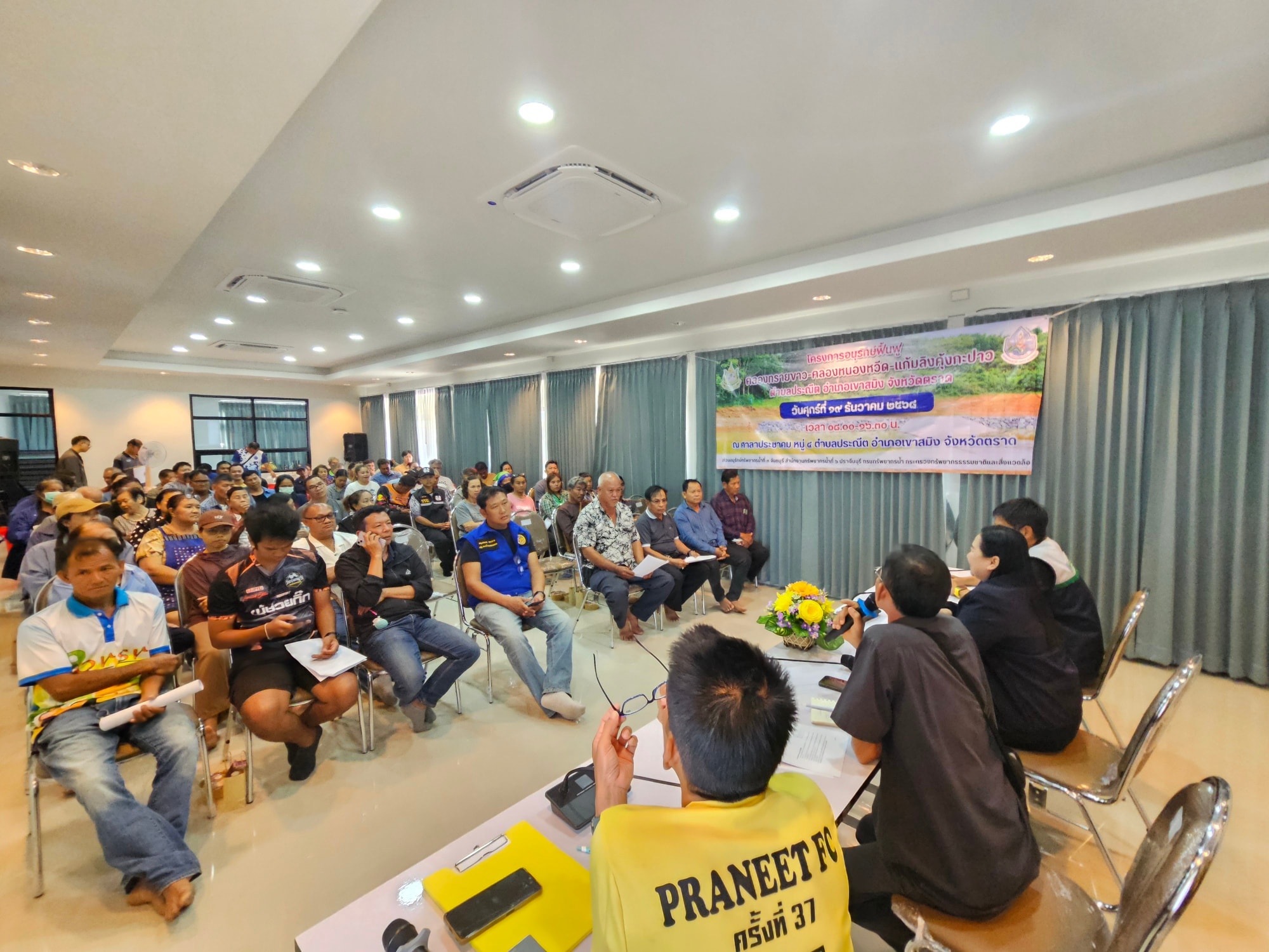 วันที่ 19 ธันวาคม 2568 สำนักงานทรัพยากรน้ำที่ 6 โดยส่วนอนุรักษ์ทรัพยากรน้ำที่ 3 จันทบุรี ดำเนินโครงการจัดตั้งกลุ่มผู้ใช้น้ำ โครงการอนุรักษ์ฟื้นฟูคลองทรายขาว-คลองหนองหวีด-แก้มลิงคุ้งกะปาว ตำบลประณีต อำเภอเขาสมิง จังหวัดตราด ณ ศาลาประชาคมหมู่ที่ 4 ตำบลประณีต อำเภอเขาสมิง จังหวัดตราด โดยมีวัตถุประสงค์เพื่อจัดตั้งกลุ่มผู้ใช้น้ำแลกเปลี่ยนเรียนรู้ประสบการณ์ ถ่ายทอดเจตนารมณ์การบริหารจัดการทรัพยากรน้ำแก่กลุ่มผู้ใช้น้ำ ส่งเสริมการมีส่วนร่วมในการดูแล บำรุงรักษาแหล่งน้ำในพื้นที่ให้เกิดประโยชน์สูงสุด เสริมสร้างความรู้ความเข้าใจการบริหารจัดการน้ำ อนุรักษ์ พัฒนา และการดูแลบำรุงรักษาแหล่งน้ำของกรมทรัพยากรน้ำ และการเพิ่มประสิทธิภาพการใช้ประโยชน์จากแหล่งน้ำ การจัดทำข้อมูลรายงานปริมาณการใช้น้ำเพื่อการเกษตร อุปโภค บริโภค สำหรับใช้วางแผนการใช้น้ำได้อย่างต่อเนื่อง