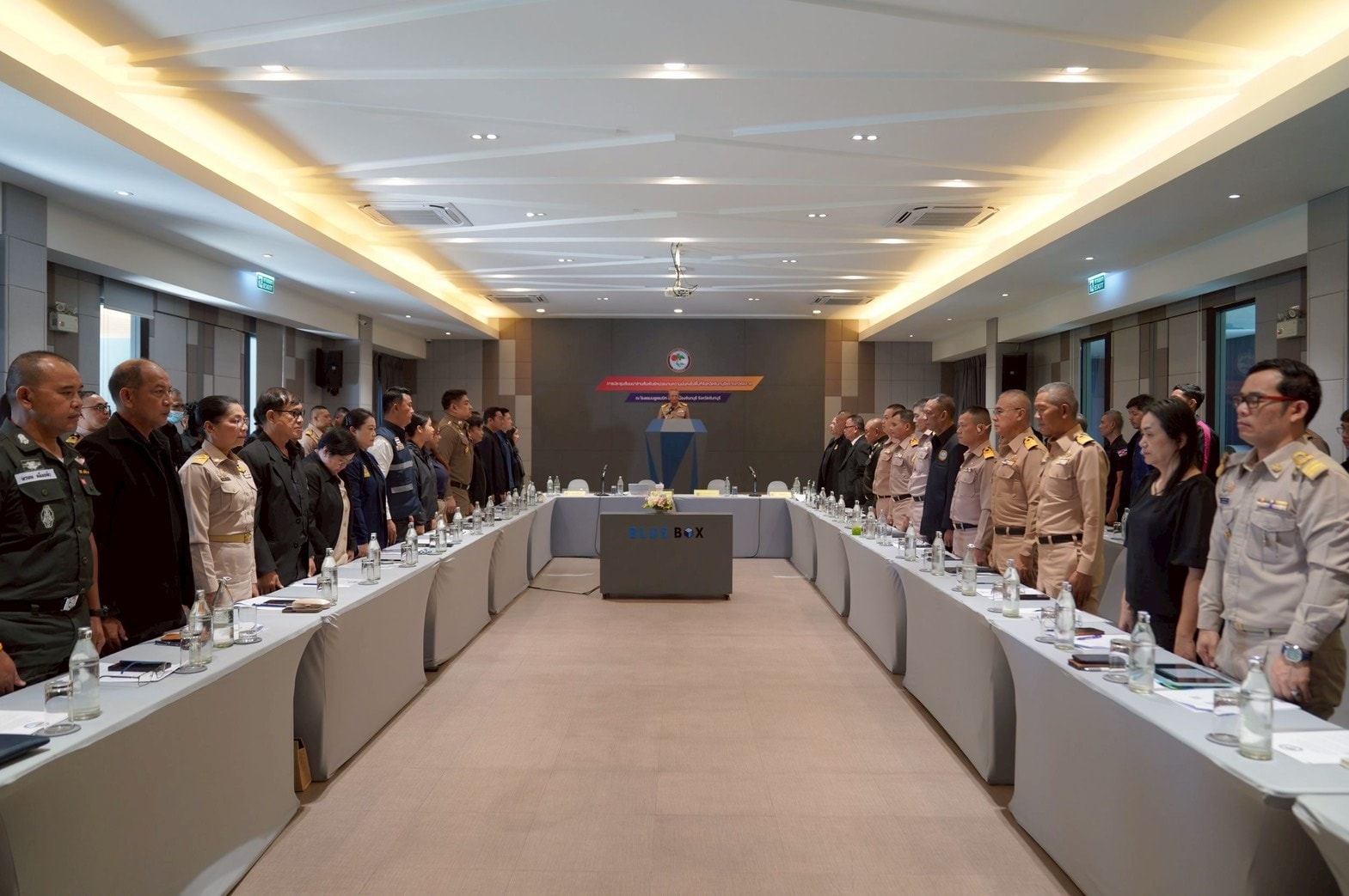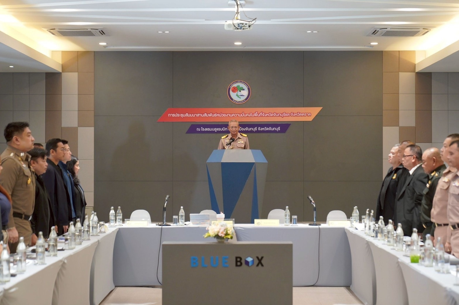 วันที่ 23 ธันวาคม 2568 สำนักงานทรัพยากรน้ำที่ 6 โดยส่วนอนุรักษ์ทรัพยากรน้ำที่ 3 จันทบุรี เข้าร่วมประชุม/สัมมนาสานสัมพันธ์หน่วยงานความมั่นคงในพื้นที่จังหวัดจันทบุรีและจังหวัดตราด ณ โรงแรมนิวบลูแรบบิท อำเภอเมืองจันทบุรี จังหวัดจันทบุรี โดยมีนาวาเอก อุดม กุลศิริปัญโญ เสนาธิการป้องกันชายแดนจันทบุรีและตราด หัวหน้าสำนักงานเลขานุการคณะกรรมการพัฒนา เพื่อความมั่นคงในระดับพื้นที่ในเขตกองบัญชาการป้องกันชายแดนจันทบุรีและตราด เป็นประธานการประชุม/สัมมนา โดยมีการบรรยายสรุปผลการดำเนินงานพัฒนาเพื่อเสริมความมั่นคงในพื้นที่ในเขตกองบัญชาการป้องกันชายแดนจันทบุรีและตราด ประจำปีงบประมาณ พ.ศ.2569 และแผนงานที่ดำเนินการประจำปีงบประมาณ พ.ศ.2570 สรุปผลการดำเนินงานของจังหวัดที่สอดคล้องกับแผนการพัฒนาเพื่อเสริมความมั่นคงของชาติประจำปีงบประมาณ พ.ศ.25699 และแผนงานที่ดำเนินการประจำปีงบประมาณ พ.ศ.2570 นโยบายและแผนความมั่นคงที่ 17 การเสริมสร้างความมั่นคงเชิงพื้นที่ภายใต้นโยบายและแผนระดับชาติว่าด้วยความมั่นคงของชาติ (พ.ศ.2566-2567) และขั้นตอนการรายงานผลภายใต้ระบบอิเล็กทรอนิกส์.Electronic.Assessment.Report : EAR /แนวทางการพิจารณาการปรับหน่วยงานในการอำนวยการและประสานการปฏิบัติระดับภาค ภายใต้ระเบียบสำนักนายกรัฐมนตรี ว่าด้วยการพัฒนาเพื่อเสริมความมั่นคงของชาติ พ.ศ.2548 และร่วมหารือในการจัดทำระเบียบปฏิบัติประจำ และหาข้อสรุปเพื่อทำความตกลงเรื่องการแบ่งพื้นเขตรับผิดชอบพื้นที่ฝั่งทะเลและเกาะแก่งในจังหวัดจันทบุรี และจังหวัดตราด