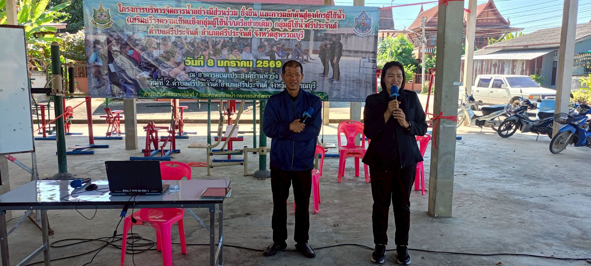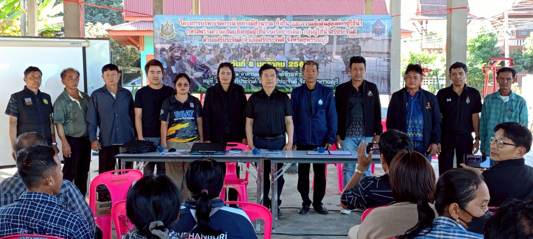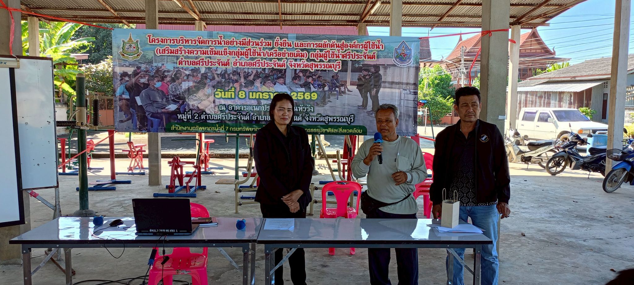 มอบหมายให้ ส่วนอนุรักษ์ทรัพยากรน้ำที่ 2 สุพรรณบุรี ดำเนินการจัดโครงการบริหารจัดการน้ำอย่างมีส่วนร่วม ยั่งยืน และการผลักดันสู่องค์กรผู้ใช้น้ำ (เสริมสร้างความเข้มแข็งกลุ่มผู้ใช้น้ำ/เครือข่ายเดิม) กลุ่มผู้ใช้น้ำศรีประจันต์ ณ อาคารอเนกประสงค์บ้านหัววัง หมู่ที่ 2 ตำบลศรีประจันต์ อำเภอศรีประจันต์ จังหวัดสุพรรณบุรี โดยมีนายเวทวัฒน์ เวทสรณสุธี นายกเทศมนตรีตำบลศรีประจันต์ เป็นประธานฯ ผู้เข้าร่วมโครงการฯ ประกอบด้วย กลุ่มผู้ใช้น้ำเดิม และเครือข่าย ผู้มีส่วนได้ส่วนเสียที่เกี่ยวข้อง ภาครัฐ ภาคเอกชน และประชาชนที่ได้รับประโยชน์จากโครงการของกรมทรัพยากรน้ำ จำนวน 70 คน ซึ่งมีวัตถุประสงค์เพื่อสนับสนุนกลุ่มเครือข่ายให้มีการบริหารจัดการทรัพยากรน้ำ และสนับสนุนกิจกรรมการดำเนินงานของกลุ่มเครือข่ายให้มีการบริหารจัดการกลุ่มเครือข่ายอย่างต่อเนื่อง รวมทั้งเพิ่มความเข้มแข็งของกลุ่มเครือข่าย ให้เกิดการรวมกลุ่ม ดูแล บำรุงรักษาแหล่งน้ำให้อยู่สภาพดีและมีประสิทธิภาพ สามารถจัดสรรแบ่งปันน้ำระหว่างสมาชิกในกลุ่มได้อย่าง เป็นธรรมและเกิดประโยชน์สูงสุด และสร้างความมั่นคงในชีวิต เสริมสร้างศักยภาพการบริหารจัดการทรัพยากรน้ำ และผลักดันสู่องค์กรผู้ใช้น้ำ