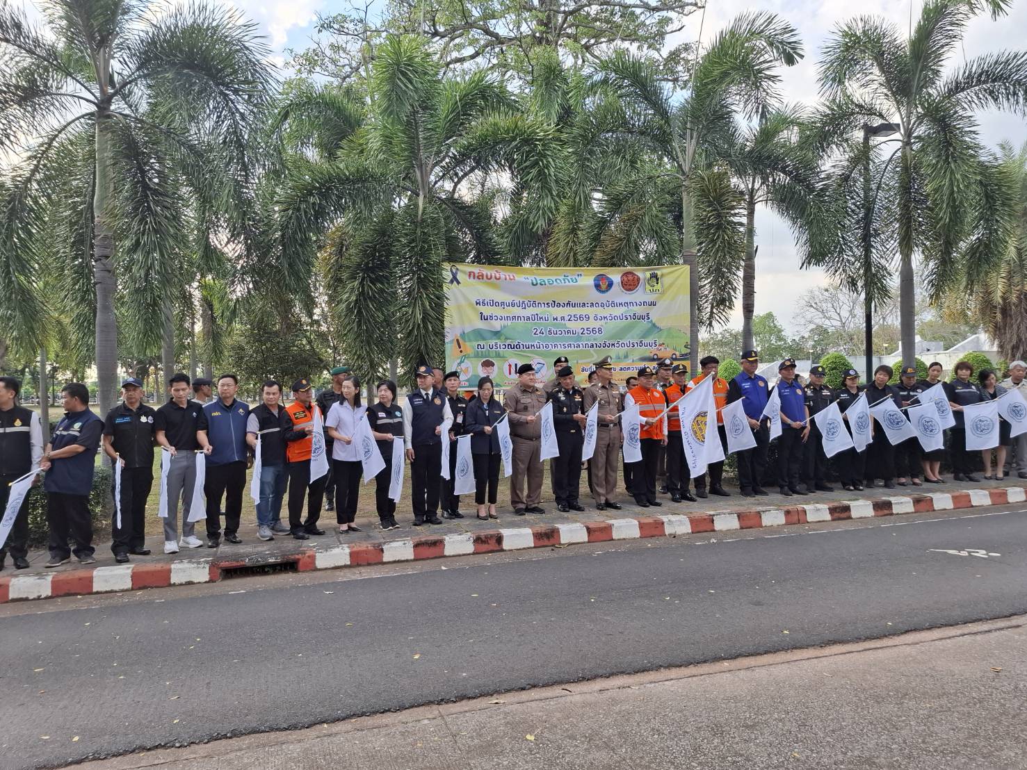 วันพุธที่ 24 ธันวาคม 2568 สำนักงานทรัพยากรน้ำที่ 6 โดยส่วนอนุรักษ์ทรัพยากรน้ำที่ 1 ปราจีนบุรี นำโดยนายกัมปนาท ภักดีโชติ ผู้อำนวยการส่วนอนุรักษ์ทรัพยากรน้ำที่ 1 ปราจีนบุรี พร้อมด้วยเจ้าหน้าที่ส่วนเครื่องกล และส่วนอำนวยการ เข้าร่วมพิธีเปิดศูนย์ปฏิบัติการป้องกันและลดอุบัติเหตุทางถนนช่วงเทศกาลปีใหม่ พ.ศ. 2569 จังหวัดปราจีนบุรี ณ บริเวณด้านหน้าอาคารศาลากลางจังหวัด ปราจีนบุรี ตำบลไม้เค็ด อำเภอเมืองปราจีนบุรี จังหวัดปราจีนบุรี โดยมีนายวีระพันธ์ ดีอ่อน ผู้ว่าราชการจังหวัดปราจีนบุรี เป็นประธาน