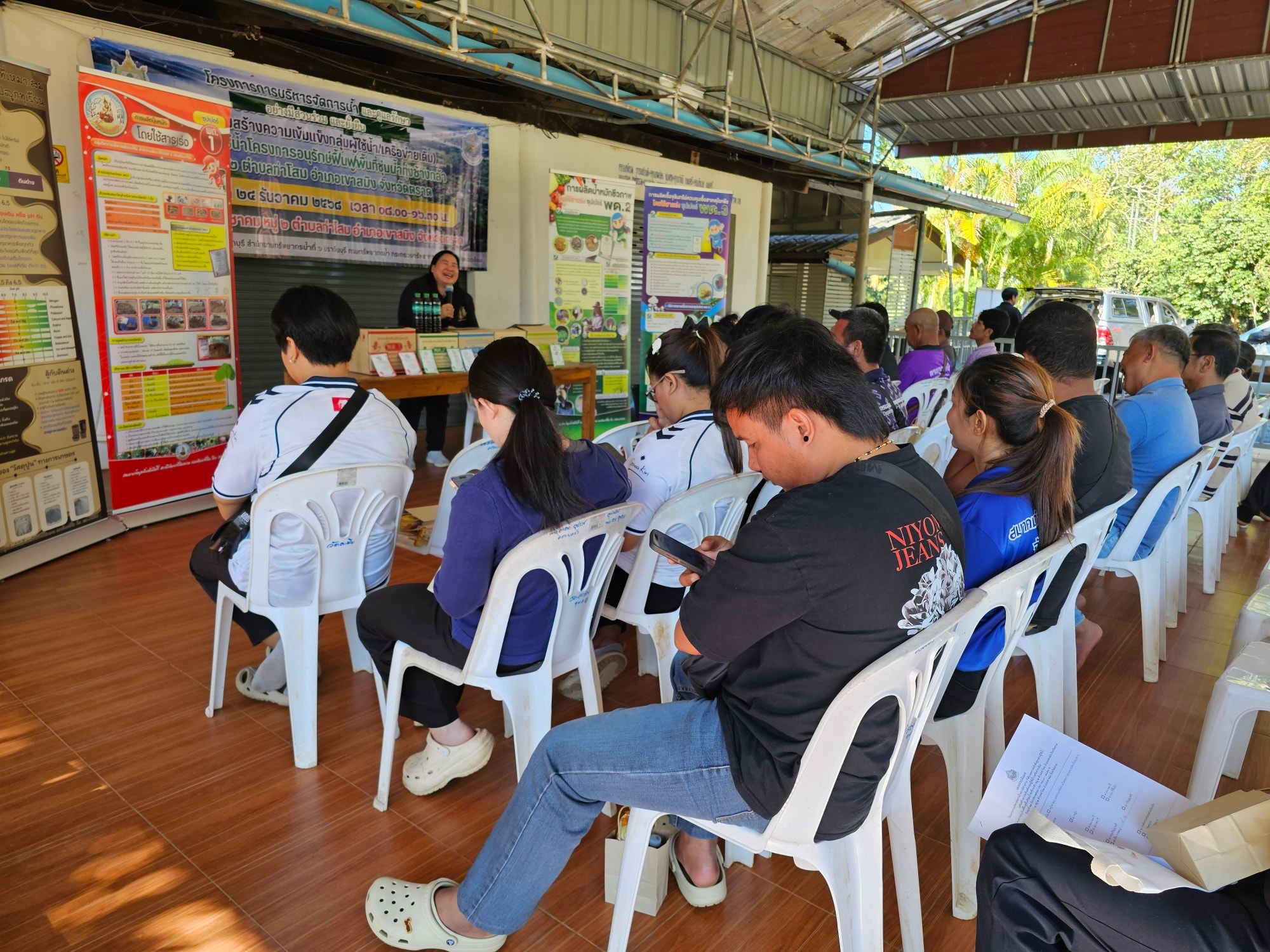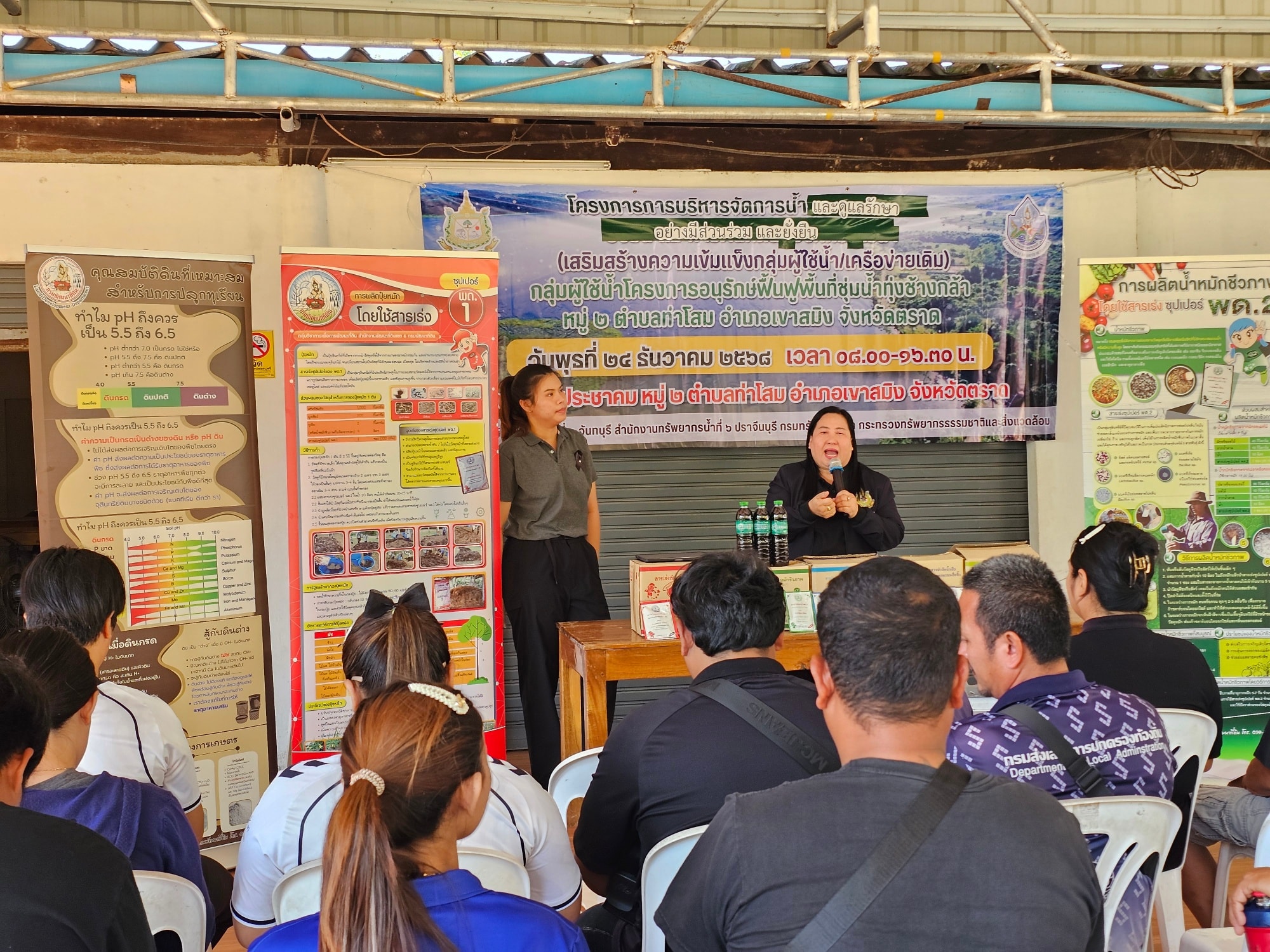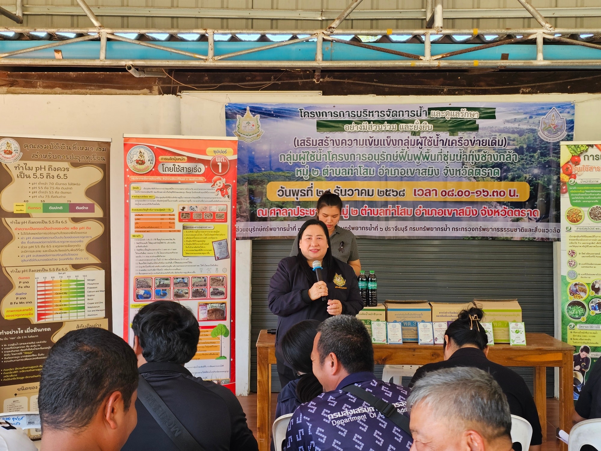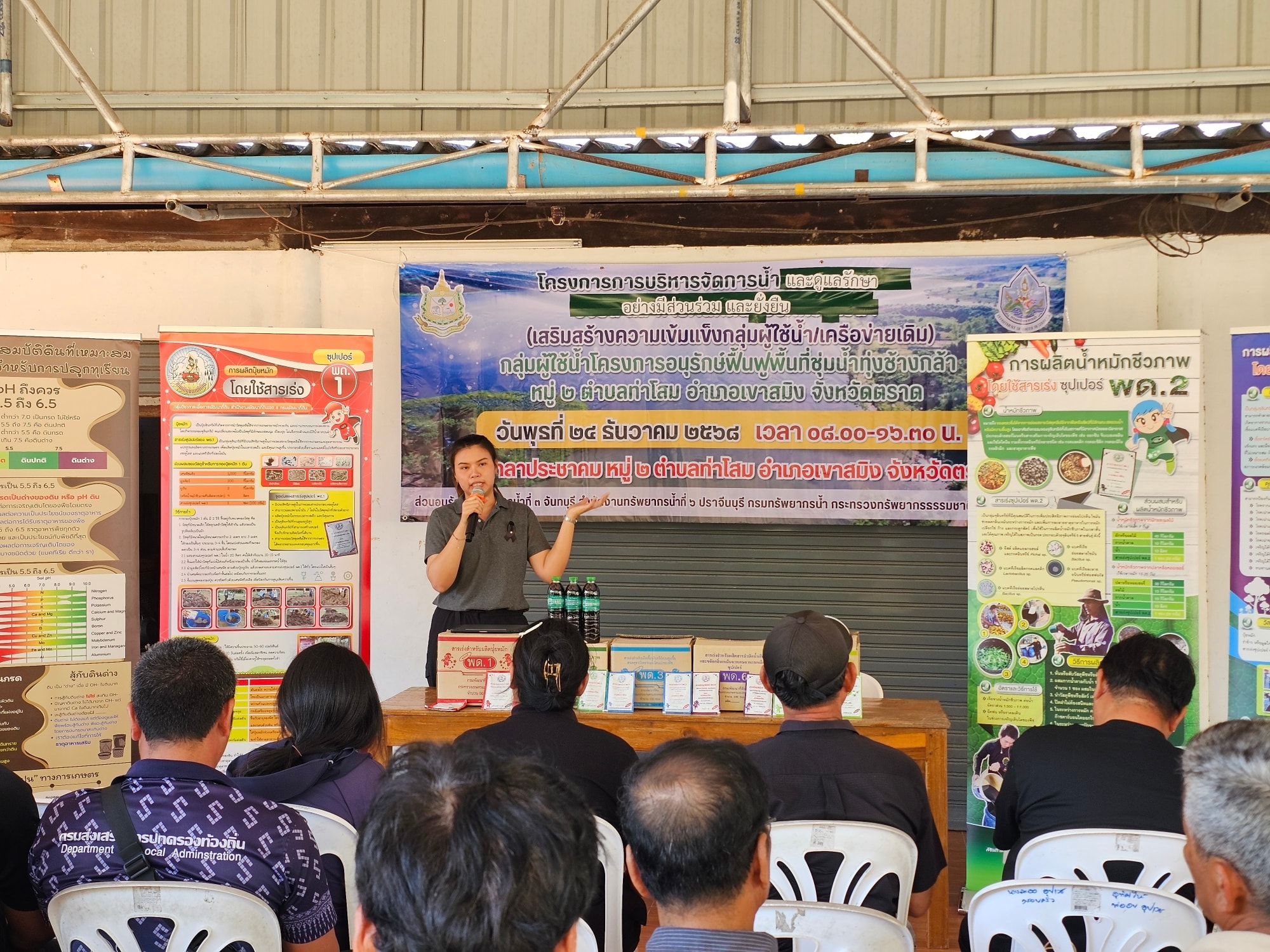 วันที่ 24 ธันวาคม 2568 สำนักงานทรัพยากรน้ำที่ 6 โดยส่วนอนุรักษ์ทรัพยากรน้ำที่ 3 จันทบุรี ดำเนินโครงการบริหารจัดการน้ำและดูแลรักษาอย่างมีส่วนร่วมและยั่งยืน (เสริมสร้างความเข้มแข็งกลุ่มผู้ใช้น้ำ/เครือข่ายเดิม) กลุ่มผู้ใช้น้ำโครงการอนุรักษ์ฟื้นฟูพื้นที่ชุ่มน้ำทุ่งช้างกล้า หมู่ที่ 2 ตำบลท่าโสม อำเภอเขาสมิง จังหวัดตราด ณ ศาลาประชาคมหมู่ที่ 2 ตำบลท่าโสม อำเภอเขาสมิง จังหวัดตราด โดยมีวัตถุประสงค์เพื่อสนับสนุนกลุ่มเครือข่ายผู้ใช้น้ำให้มีการบริหารจัดการทรัพยากรน้ำ และสนับสนุนกิจกรรมการดำเนินงานของกลุ่มเครือข่ายให้มีการบริหารจัดการกลุ่มเครือข่ายอย่างต่อเนื่อง รวมทั้งเพิ่มความเข้มแข็งของกลุ่มเครือข่าย เพื่อให้กิจกรรมรวมกลุ่ม ดูแล บำรุงรักษาแหล่งน้ำให้อยู่สภาพดีและมีประสิทธิภาพ สามารถจัดสรรแบ่งปันน้ำระหว่างสมาชิกในกลุ่มได้อย่างเป็นธรรม เกิดประโยชน์สูงสุดและสร้างความมั่นคงในชีวิต เสริมสร้างศักยภาพการบริหารจัดการน้ำและผลักดันสู่องค์กรผู้ใช้น้ำ รวมทั้งได้เสริมสร้างความรู้การทำปุ๋ยอินทรีย์ เพื่อใช้สำหรับพืชเกษตรไม้ผลเป็นการลดค่าใช้จ่ายและนำไปสู่การอนุรักษ์ดินและน้ำให้มีคุณภาพที่ดียั่งยืน