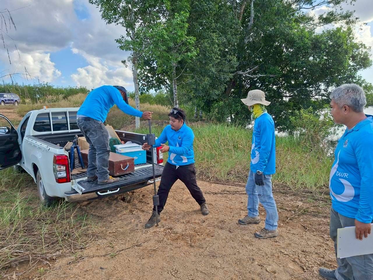 ระหว่างวันที่ 23-25 ธันวาคม 2568 สำนักงานทรัพยากรน้ำที่ 6 โดยส่วนสำรวจและออกแบบ เข้าดำเนินการสำรวจสภาพภูมิประเทศ ตามที่องค์การบริหารส่วนตำบลทุ่งนนทรี อำเภอเขาสมิง จังหวัดตราด ประสบปัญหา การบริหารจัดการน้ำในพื้นที่ เนื่องจากสภาพภูมิอากาศที่แปรปรวนอุณหภูมิสูงขึ้นและมีช่วงฝนทิ้งช่วง เป็นระยะเวลานานกว่าปกติ โดยเฉพาะในช่วงเดือนพฤศจิกายนถึงพฤษภาคมของปีที่ผ่านมา ส่งผลให้ปริมาณน้ำ ในอ่างเก็บน้ำตรอกกระสังข์ลดลงอย่างต่อเนื่องและไม่เพียงพอต่อความต้องการใช้น้ำของประชาชนในพื้นที่ ปัจจุบันพบว่าปริมาณการใช้น้ำเพื่อการเกษตรเพิ่มสูงขึ้น ทำให้น้ำในอ่างเก็บน้ำตรอกกระสังข์มีปริมาณไม่เพียงพอ ส่งผลกระทบต่อการอุปโภค บริโภคของประชาชน เพื่อแก้ไขปัญหาการขาดแคลนน้ำและเพิ่มประสิทธิภาพ ในการบริหารจัดการทรัพยากรน้ำในพื้นที่ องค์การบริหารส่วนตำบลทุ่งนนทรี จึงมีความประสงค์ขอรับการสนับสนุนงบประมาณจากสำนักทรัพยากรน้ำที่ 6 และเข้าสำรวจความเหมาะสม โดยมี เจ้าหน้าที่องค์การบริหารส่วนตำบล ทุ่งนนทรี ร่วมให้ข้อมูลชี้แนวเขต และอำนวยความสะดวกตลอดระยะเวลาการสำรวจ