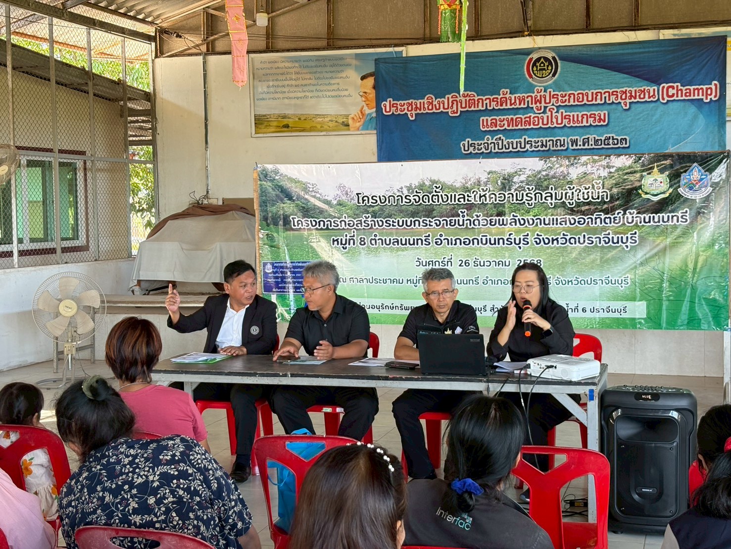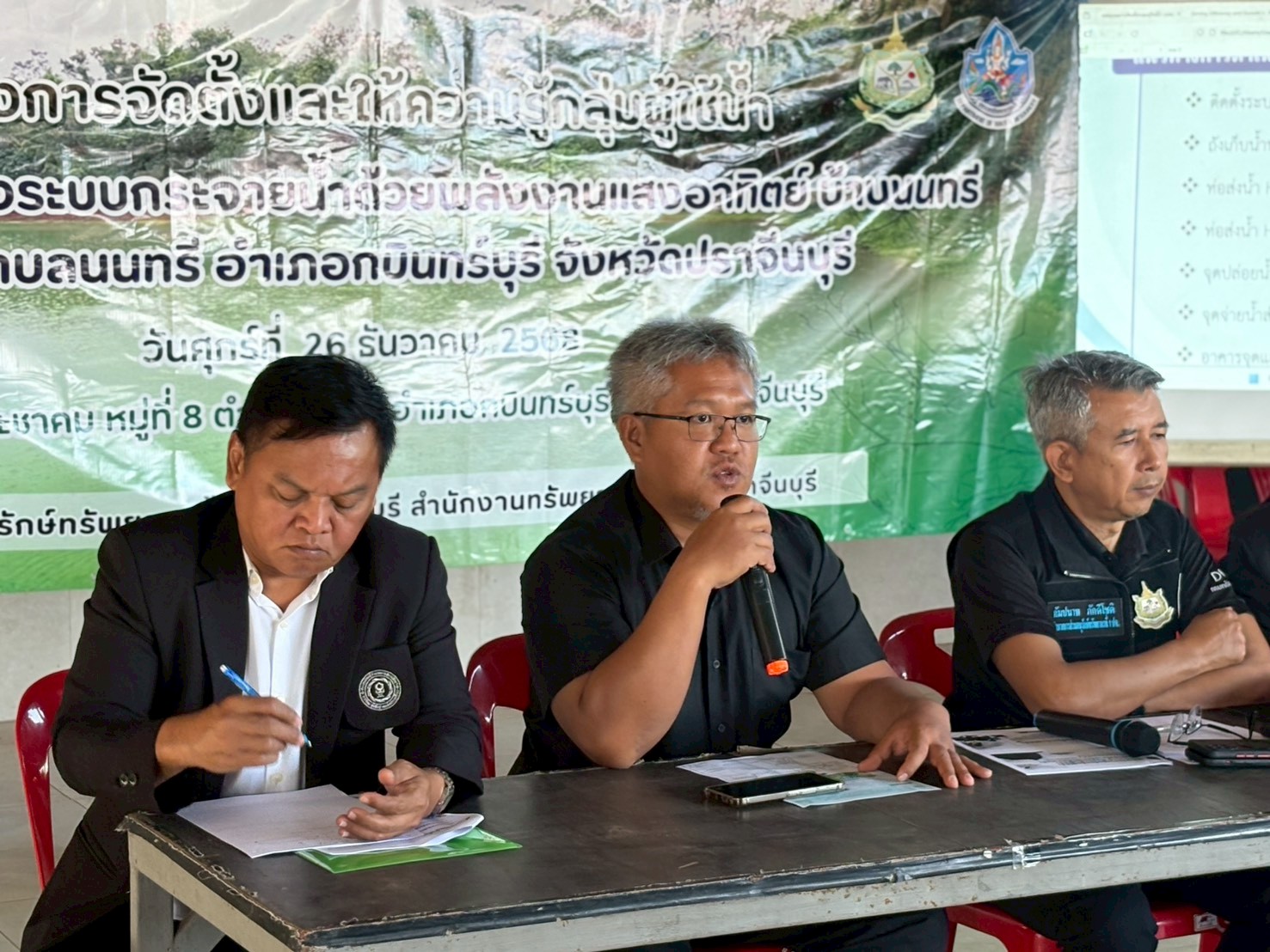วันศุกร์ที่ 26 ธันวาคม 2568 สำนักงานทรัพยากรน้ำที่ 6 โดยส่วนอนุรักษ์ทรัพยากรน้ำที่ 1 ปราจีนบุรี นำโดยนายกัมปนาท ภักดีโชติ ผู้อำนวยการส่วนอนุรักษ์ทรัพยากรน้ำที่ 1 ปราจีนบุรี พร้อมด้วยเจ้าหน้าที่ ดำเนินการจัดโครงการจัดตั้งและให้ความรู้กลุ่มผู้ใช้น้ำ โครงการก่อสร้างระบบกระจายน้ำด้วยพลังงานแสงอาทิตย์ บ้านนนทรี หมู่ที่ 8 ตำบลนนทรี อำเภอกบินทร์บุรี จังหวัดปราจีนบุรี ณ ศาลาประชาคม หมู่ที่ 8 ตำบลนนทรี อำเภอกบินทร์บุรี จังหวัดปราจีนบุรี ซึ่งมีวัตถุประสงค์เพื่อส่งเสริมความรู้ การมีส่วนร่วมในการบริหารจัดการทรัพยากรน้ำในพื้นที่ให้เกิดการรวมกลุ่ม ดูแลบำรุงรักษาแหล่งน้ำให้อยู่ในสภาพดีและเกิดประสิทธิภาพสามารถจัดสรรแบ่งปันน้ำระหว่างสมาชิกในกลุ่มได้อย่างเป็นธรรมและเกิดประโยชน์สูงสุด