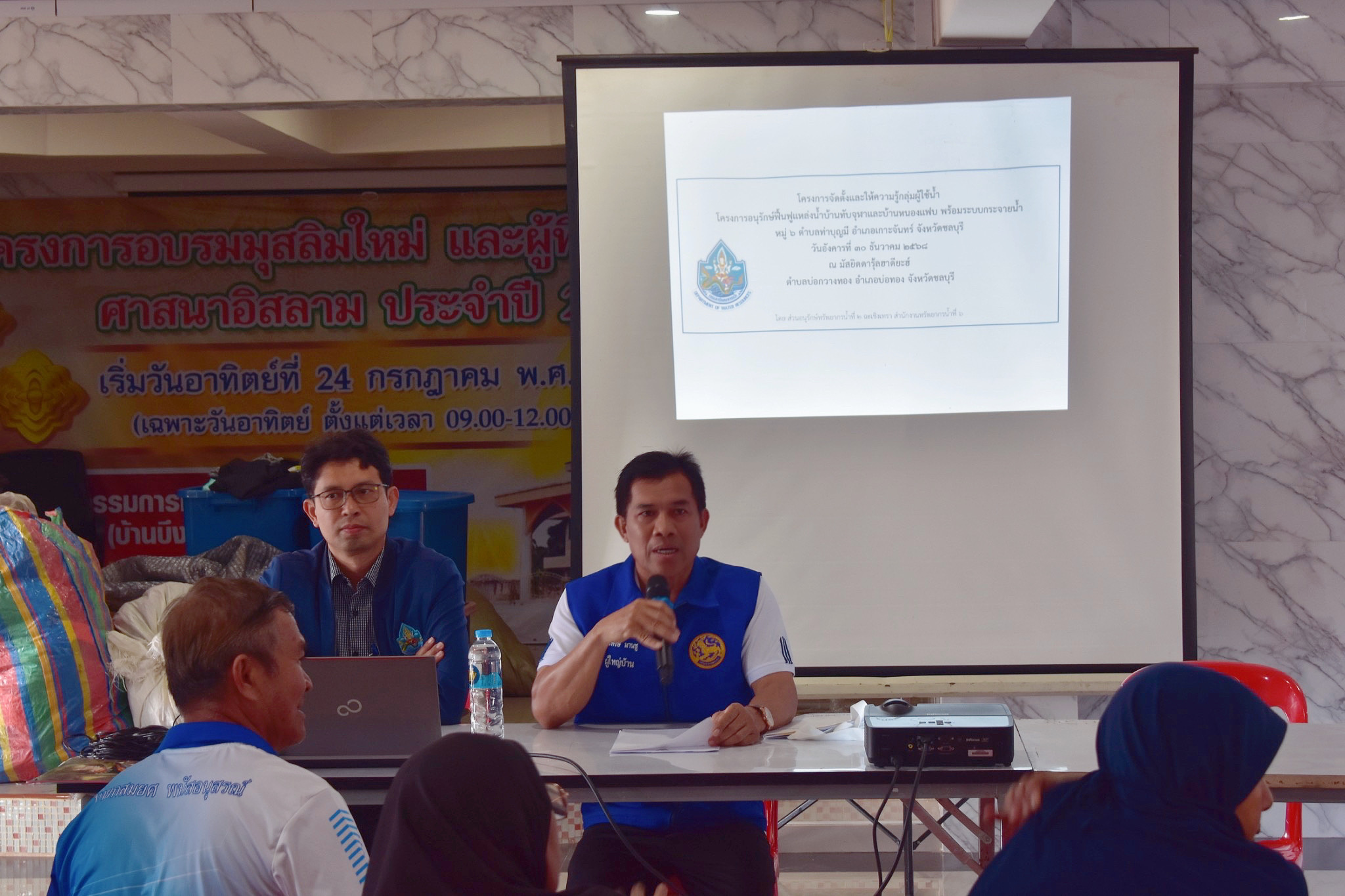 วันอังคารที่ 30 ธันวาคม 2568 สำนักงานทรัพยากรน้ำที่ 6 โดยส่วนอนุรักษ์ทรัพยากรน้ำที่ 2 ฉะเชิงเทรา ดำเนินโครงการจัดตั้งและให้ความรู้กลุ่มผู้ใช้น้ำ โครงการอนุรักษ์ฟื้นฟูแหล่งน้ำบ้านทับจุฬาและบ้านหนองแฟบ พร้อมระบบกระจายน้ำ หมู่ 6 ตำบลท่าบุญมี อำเภอเกาะจันทร์ จังหวัดชลบุรี ณ มัสยิดดารุ้ลฮาดียะห์ ตำบลบ่อกวางทอง อำเภอบ่อทอง จังหวัดชลบุรี ซึ่งมีวัตถุประสงค์เพื่อเสริมสร้างความรู้ความเข้าใจให้กับกลุ่มผู้ใช้น้ำและส่งเสริมการมีส่วนร่วมในการบริหารจัดการทรัพยากรน้ำในพื้นที่ร่วมกัน มีการบรรยายให้ความรู้ในหัวข้อ ภารกิจของกระทรวงทรัพยากรธรรมชาติและสิ่งแวดล้อม ภารกิจของกรมทรัพยากรน้ำ แนวทางการจัดตั้งกลุ่มผู้ใช้น้ำ ความรู้เบื้องต้นเกี่ยวกับพระราชบัญญัติทรัพยากรน้ำ พ.ศ. 2561 หมวด 4 การจัดสรรและการใช้น้ำ และการขับเคลื่อนภารกิจของกลุ่มผู้ใช้น้ำให้สอดคล้องกับภารกิจของกรมทรัพยากรน้ำ โดยมีผู้เข้าร่วมโครงการจำนวน 64 คน