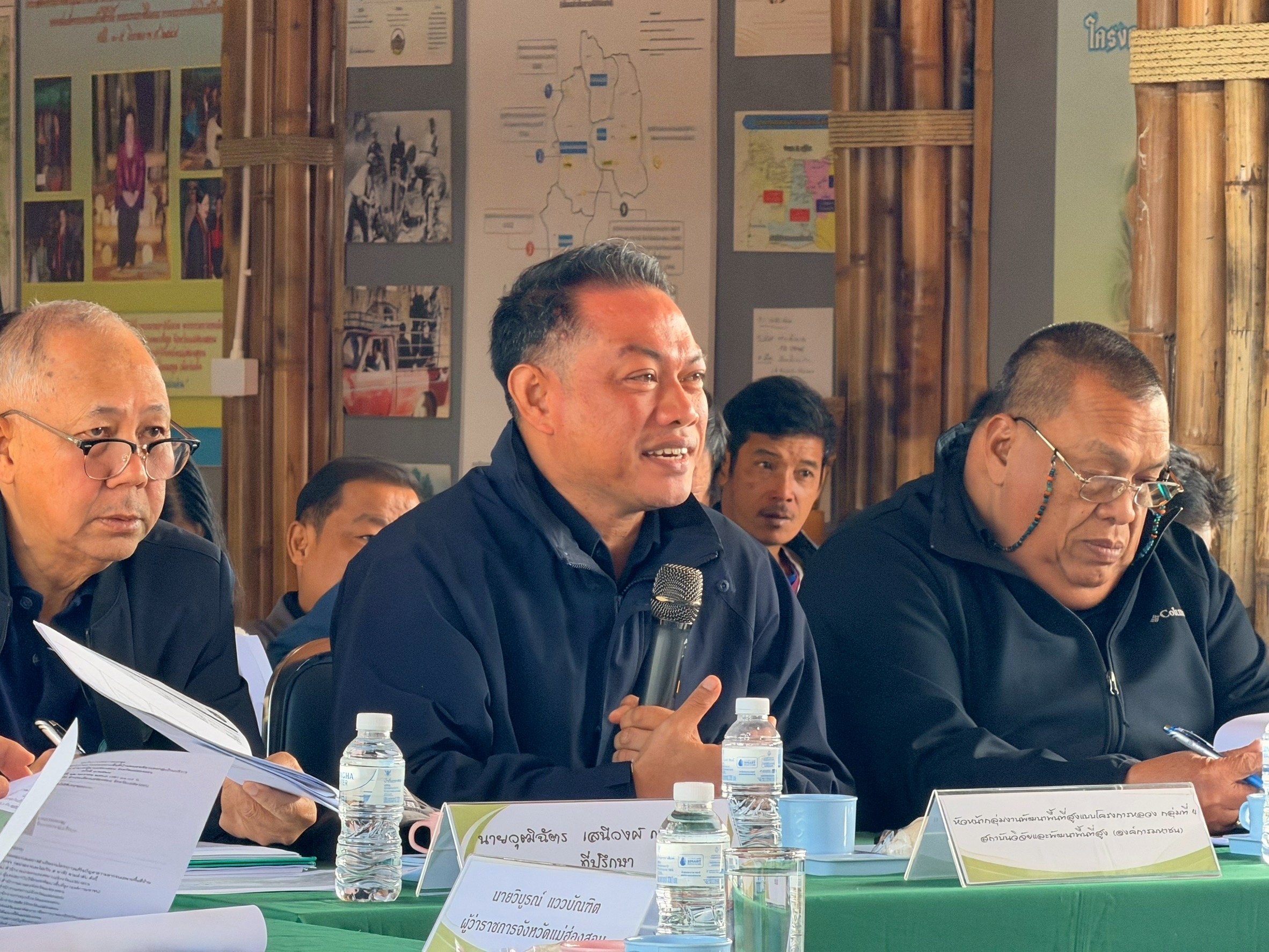 โดยมี นายวิบูรณ์ แววบัณฑิต ผู้ว่าราชการจังหวัดแม่ฮ่องสอน เป็นประธาน และ หัวหน้าส่วนราชการ คณะกรรมการฯ และผู้แทนหน่วยงานที่เกี่ยวข้อง ร่วมประชุมเพื่อรับทราบและผลการดำเนินงานของโครงการฯ ทั้งนี้ ผู้ว่าราชการจังหวัดแม่ฮ่องสอน รับฟังข้อมูลประวัติความเป็นมาโครงการ ของศูนย์ขยายผลโครงการพัฒนาตามพระราชดำริ จังหวัดแม่ฮ่องสอน พร้อมทั้งเดินเยี่ยมชมสถานที่ กิจกรรมภายในศูนย์ฯ และพบปะเกษตรกรและกลุ่มสหกรณ์ จากนั้นไปยังแปลงเรียนรู้การปลูกกาแฟอราบิก้า และพืชร่วมในระบบเกษตรป่าไม้บนพื้นที่สูง เยี่ยมชมแปลงเกษตรกรที่ปรับเปลี่ยนการผลิตสินค้าเกษตรที่เป็นมิตรกับสิ่งแวดล้อม
