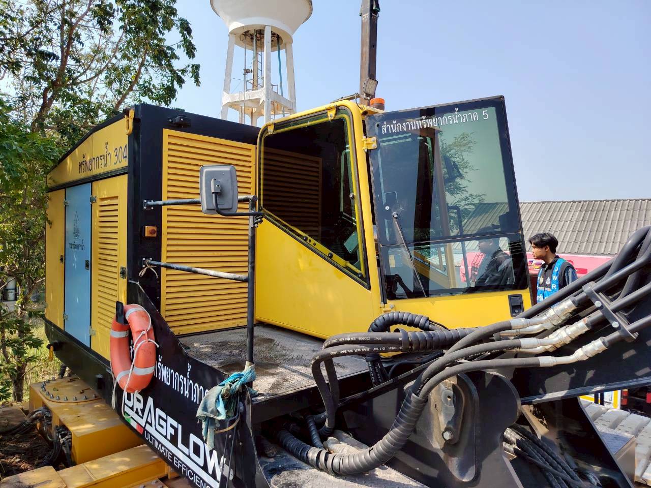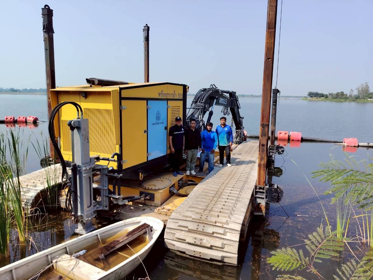 นายสุมิต สีสา ผู้อำนวยการสำนักงานทรัพยากรน้ำที่ 5 มอบหมายให้ส่วนเครื่องกลที่ 1 นครราชสีมา ร่วมกับเจ้าหน้าที่สำนักงานเจ้าท่าภูมิภาคสาขานครราชสีมา เข้าดำเนินการตรวจสภาพบำรุงรักษา และต่อทะเบียนเรือดูดโคลนสะเทินน้ำ สะเทินบก ณ บึงถนนหักใหญ่ ตำบลกุดพิมาน อำเภอด่านขุนทด จังหวัดนครราชสีมา